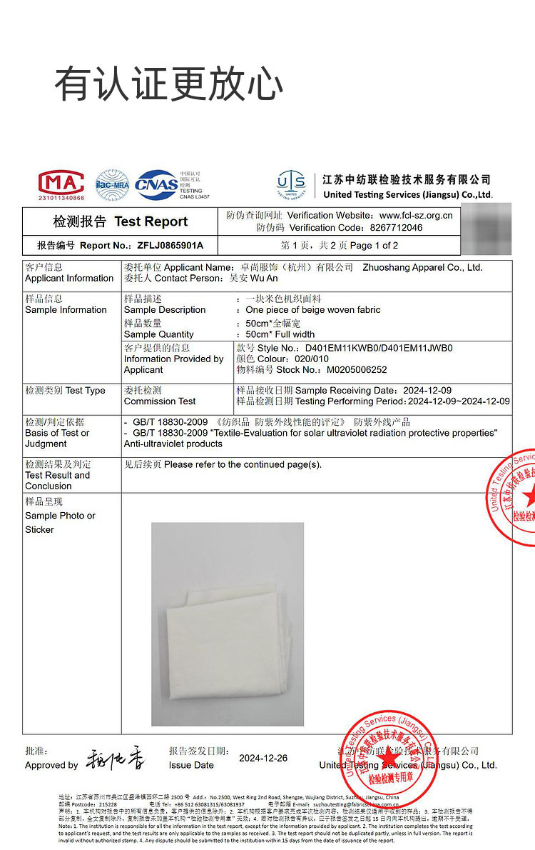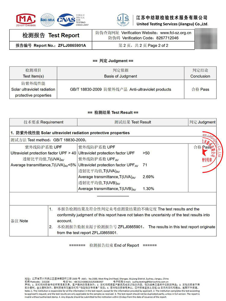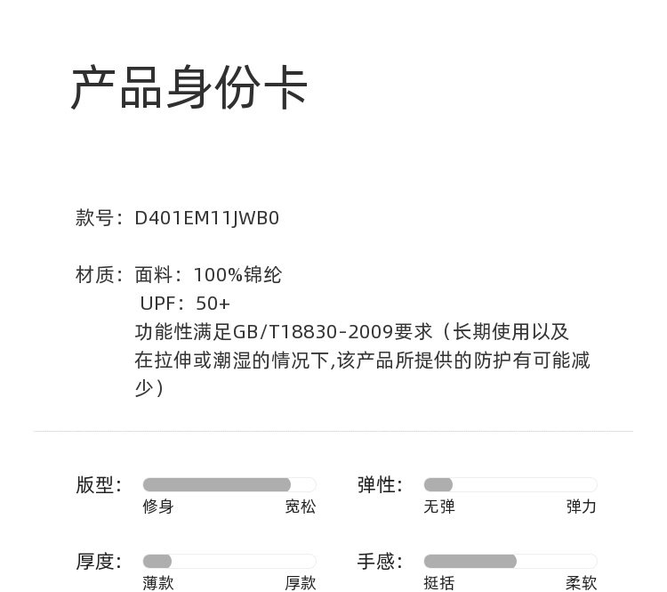 | UPF值 | UPF50+ |