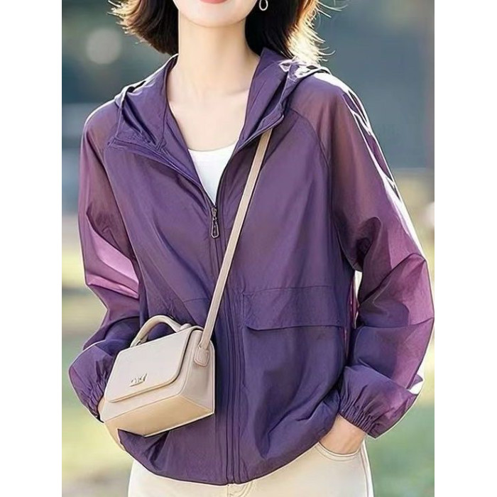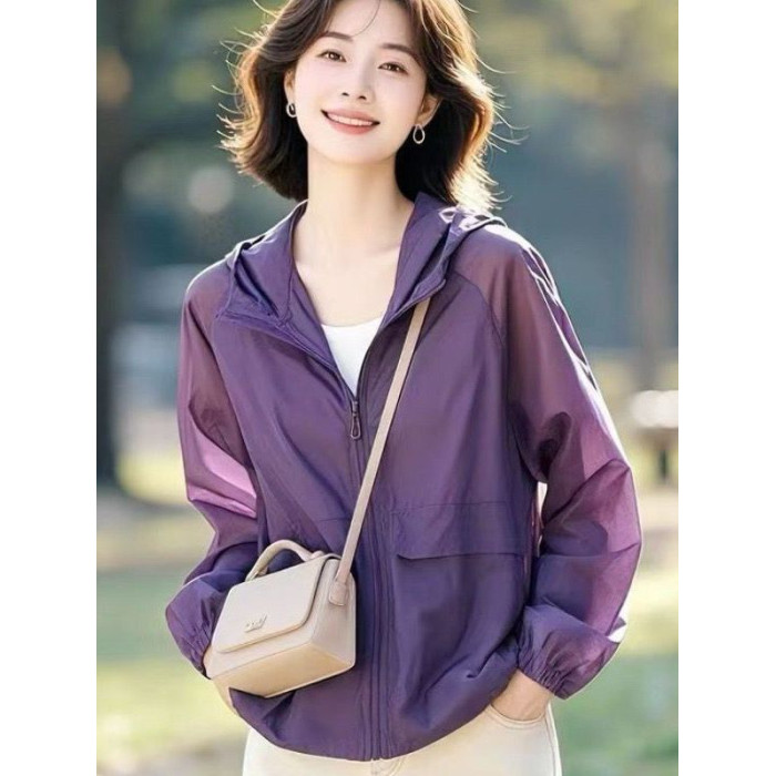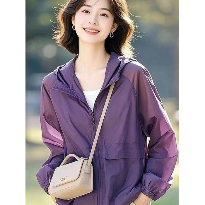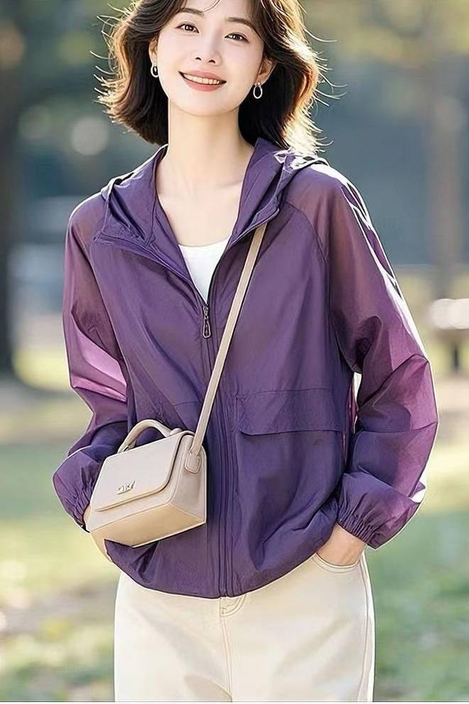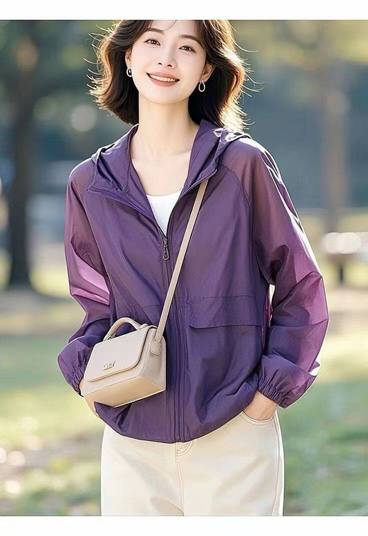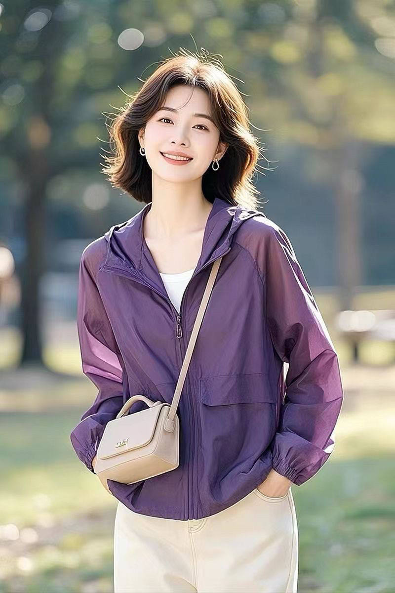 2025夏季新款洋氣外套女小個子短款休閒慵懶風百搭輕薄紫色防曬服