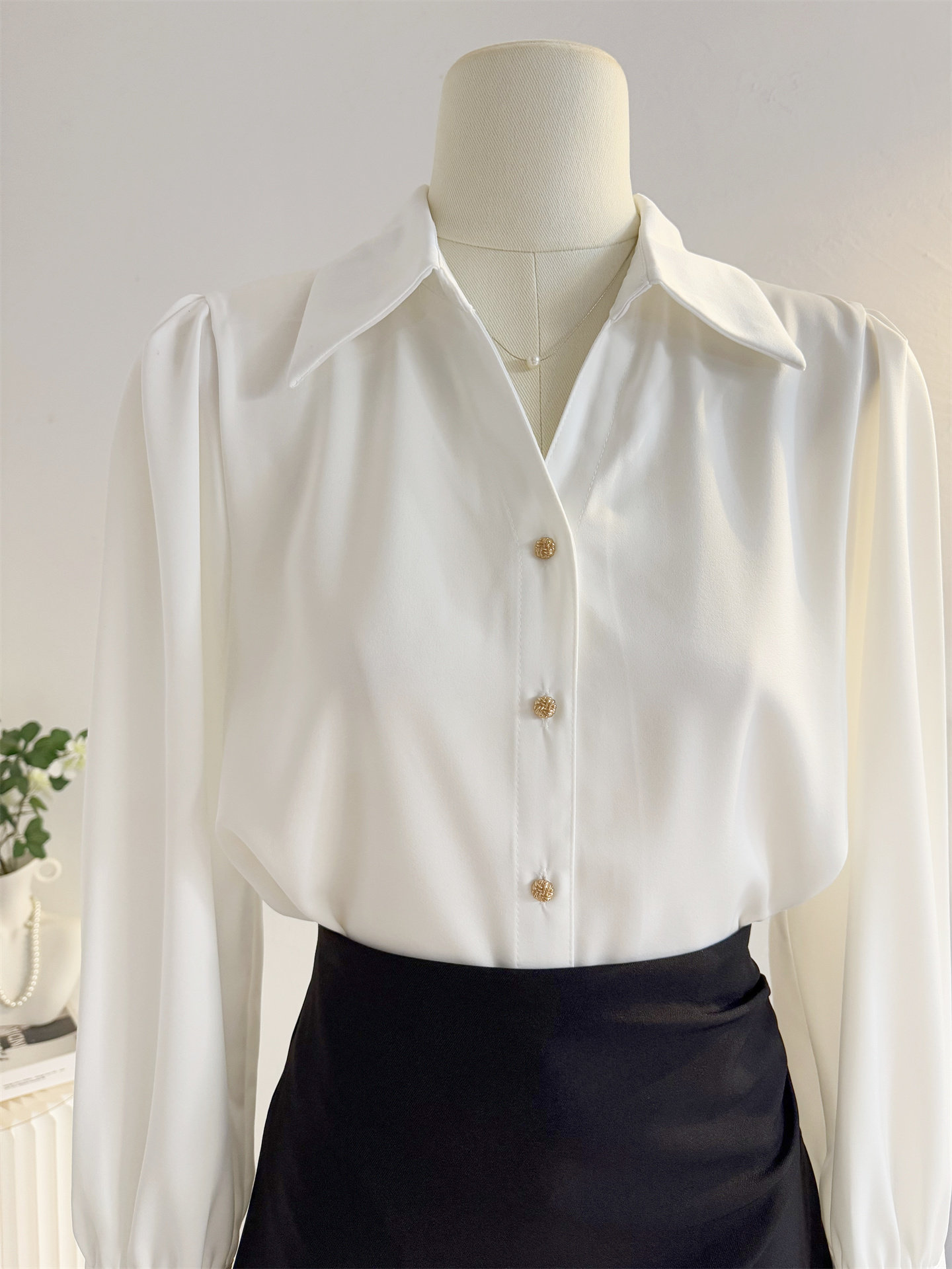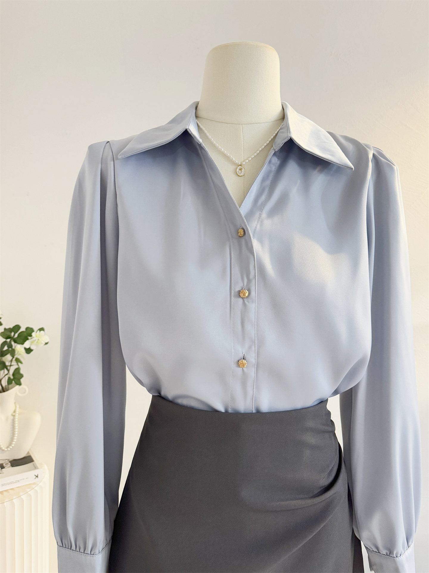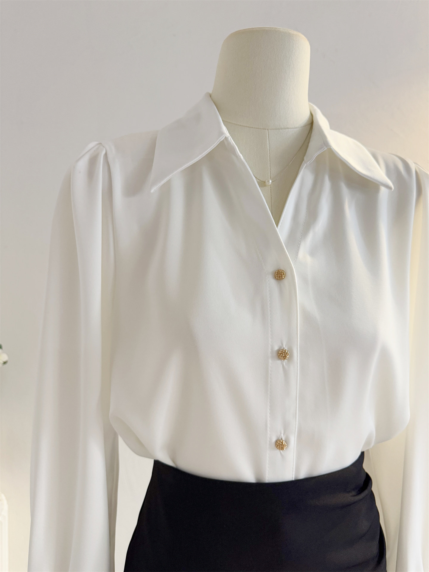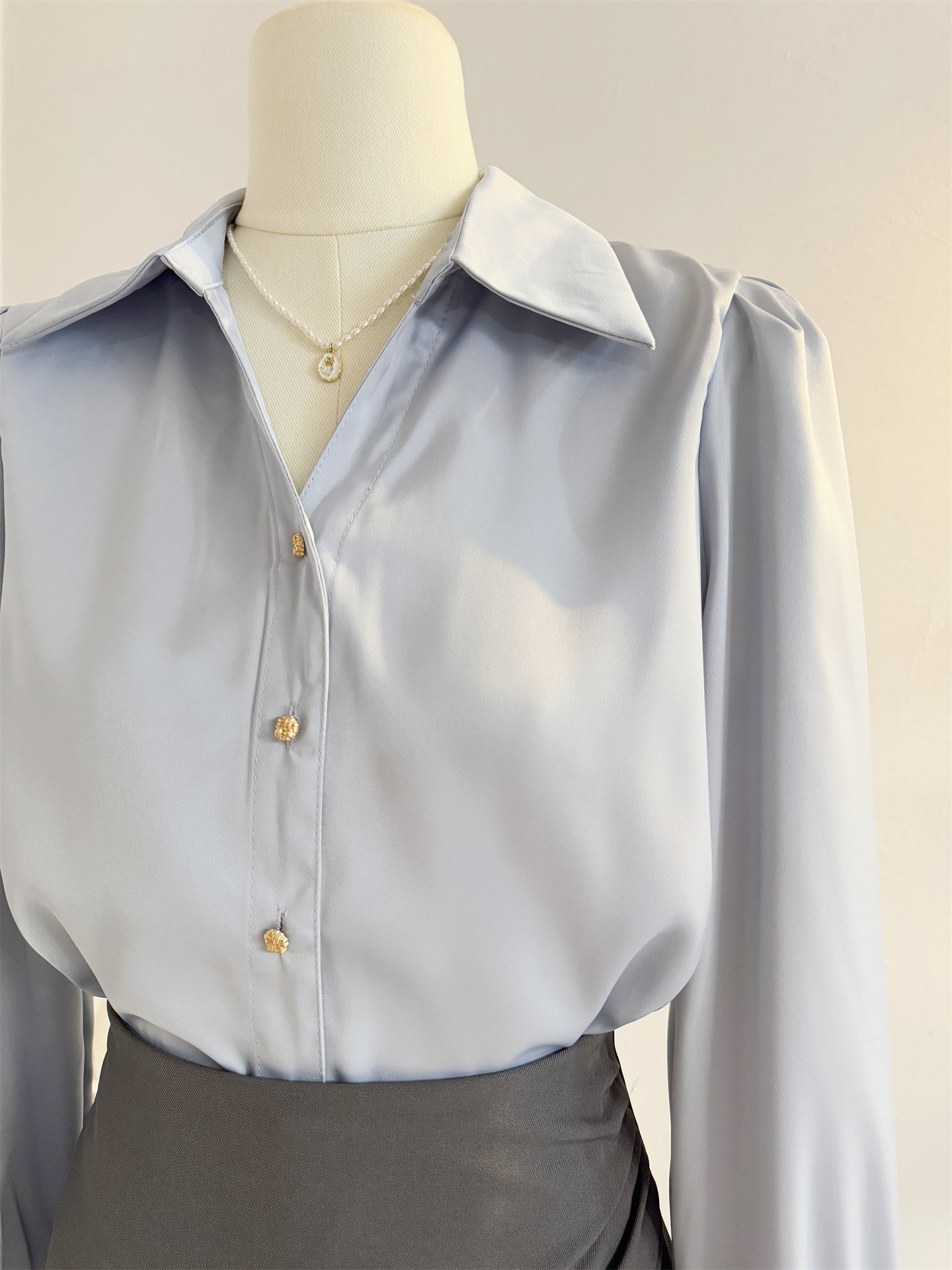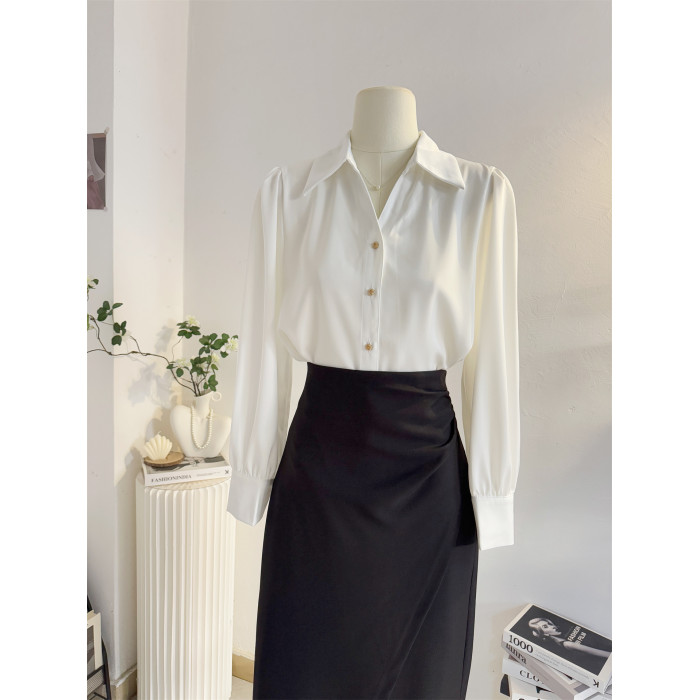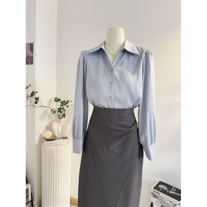 法式V領緞面長袖襯衫女2025秋季設計感氣質通勤襯衣職業正裝面試