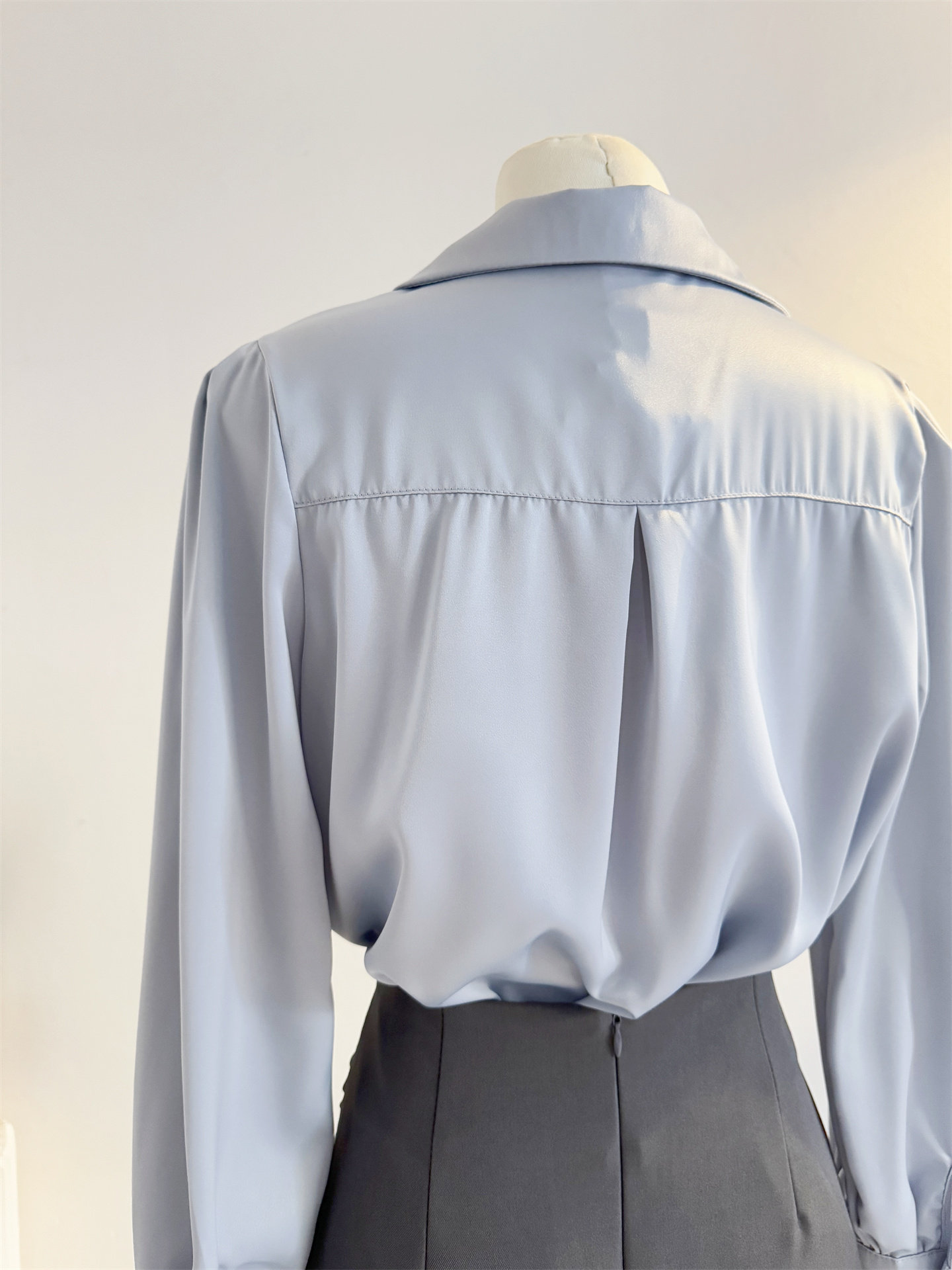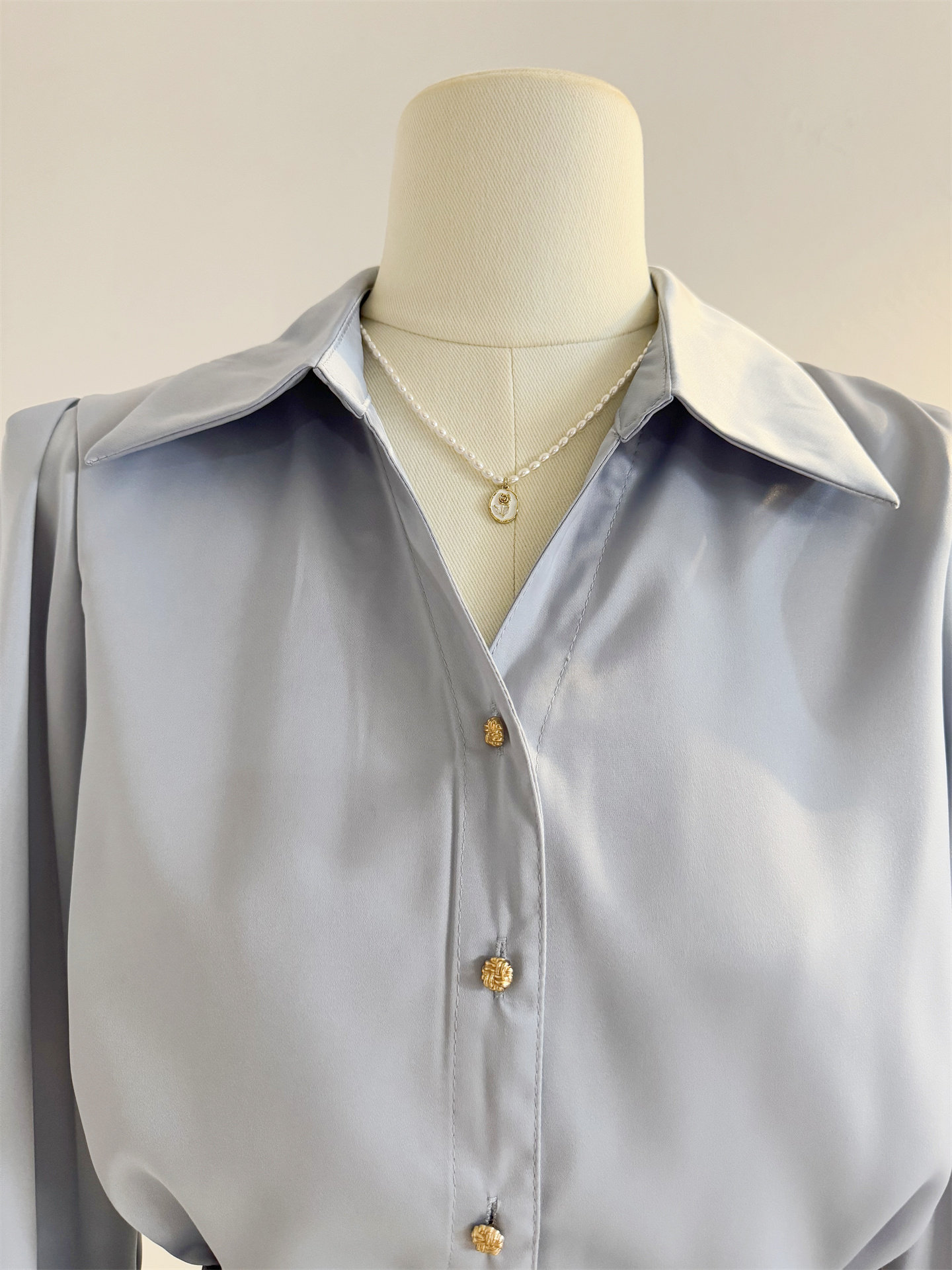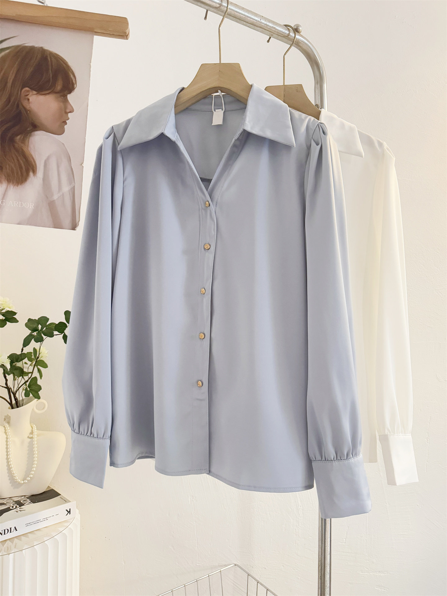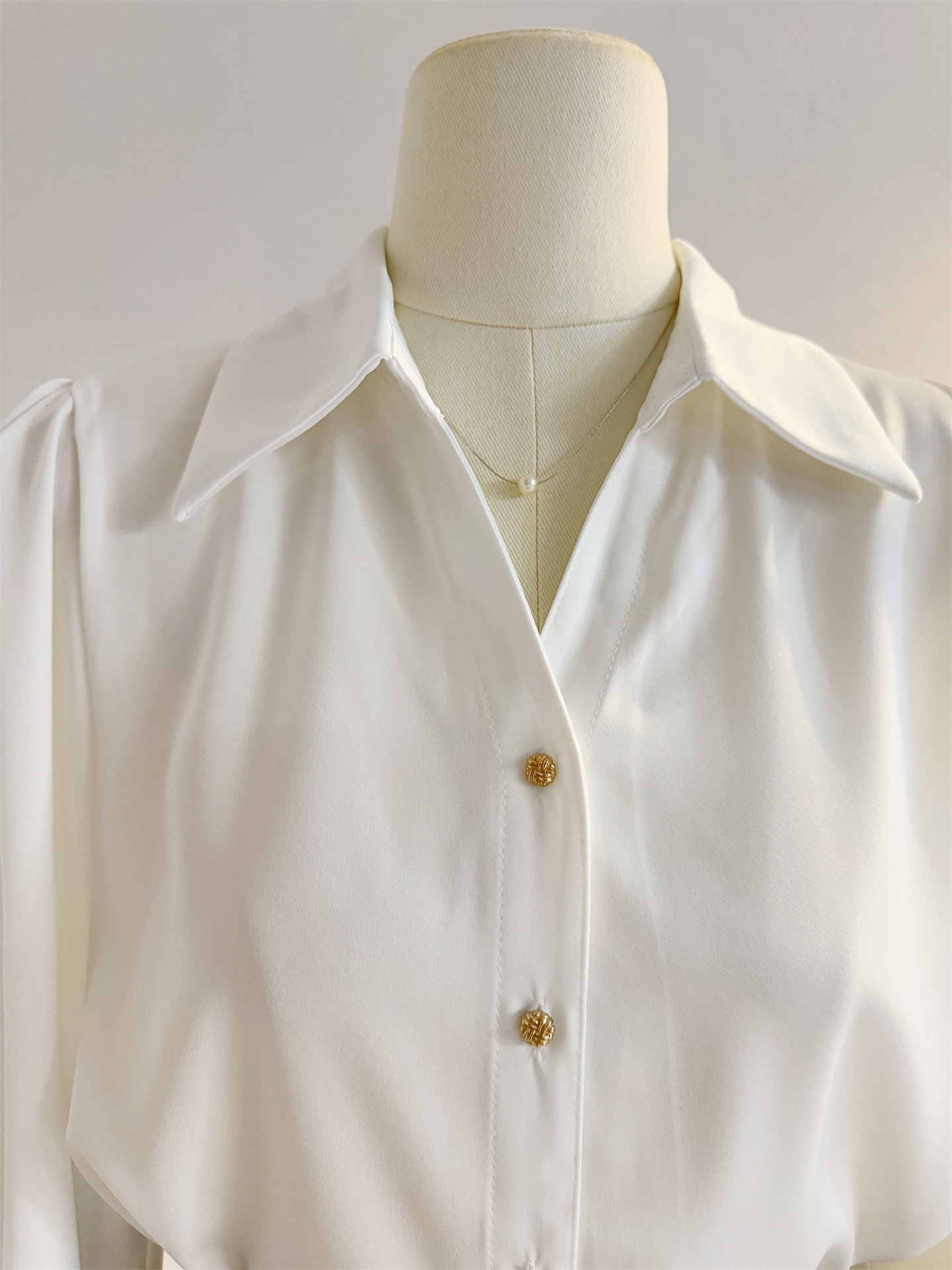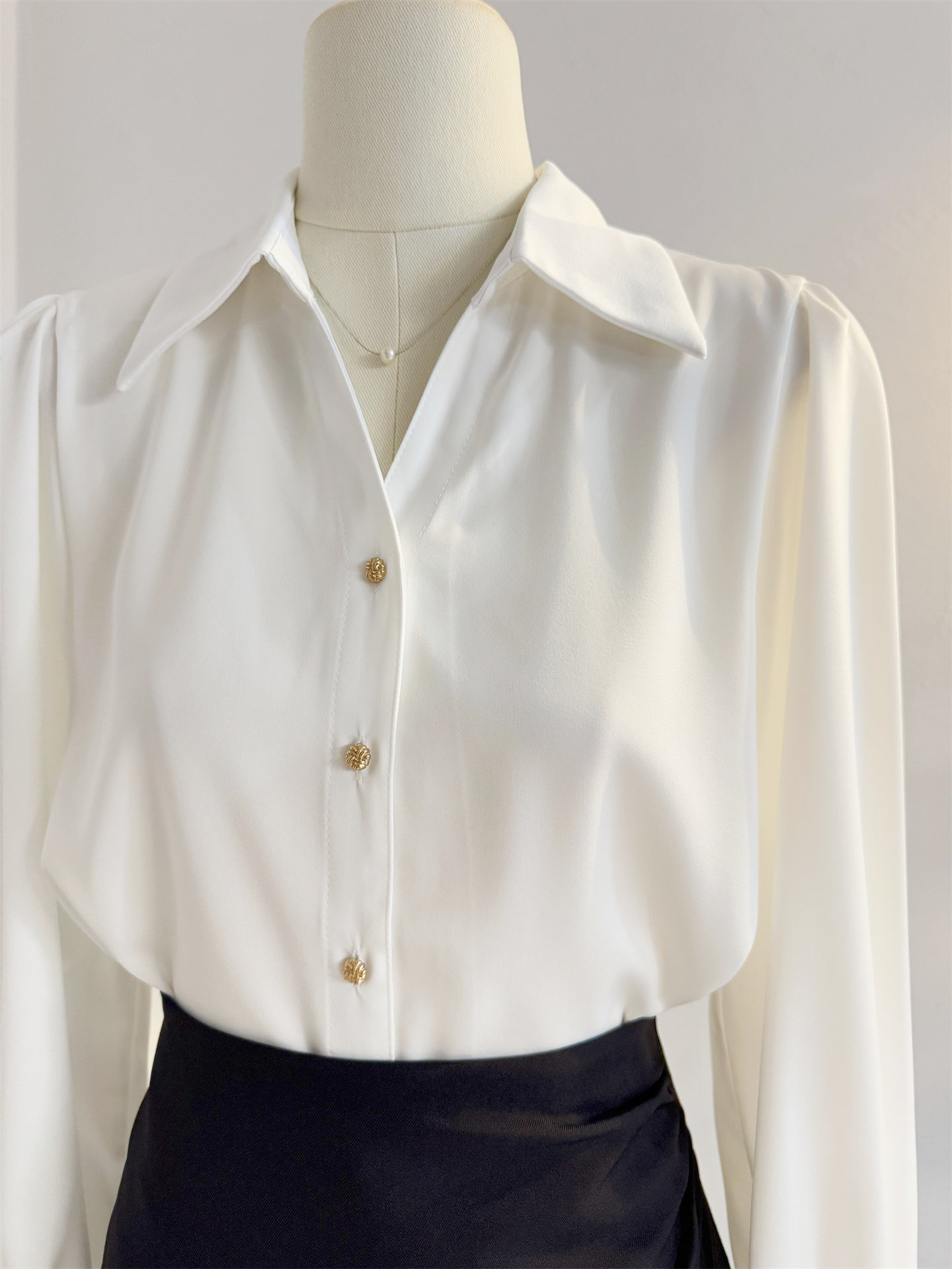 法式V領緞面長袖襯衫女2025秋季設計感氣質通勤襯衣職業正裝面試