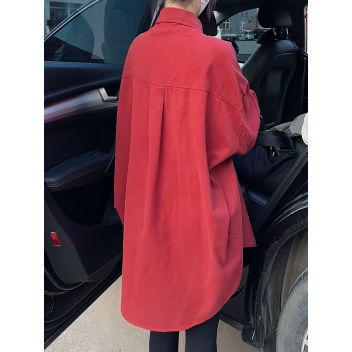 韓版高級感外套女2026年春新款繙領單排釦中長款氣質顯瘦百搭襯衫