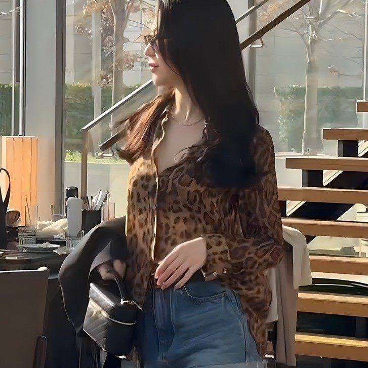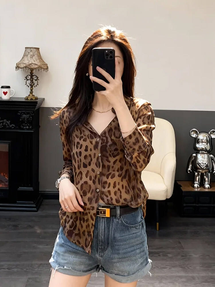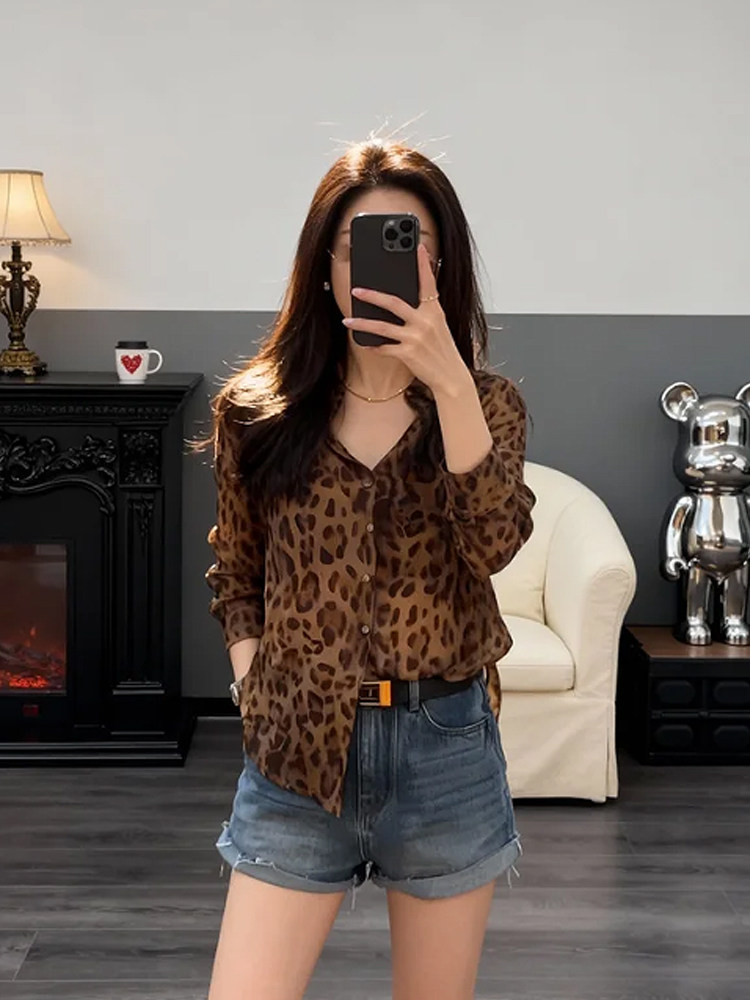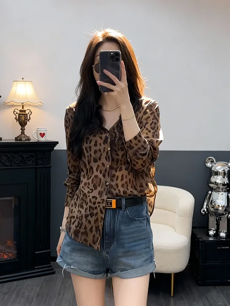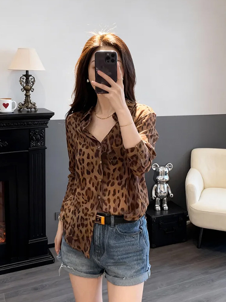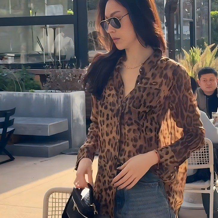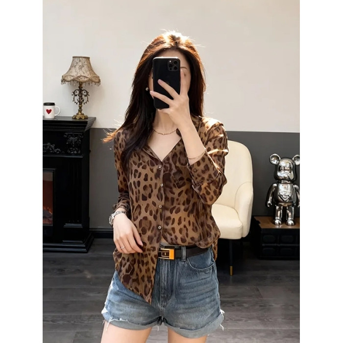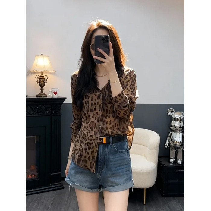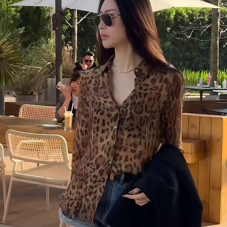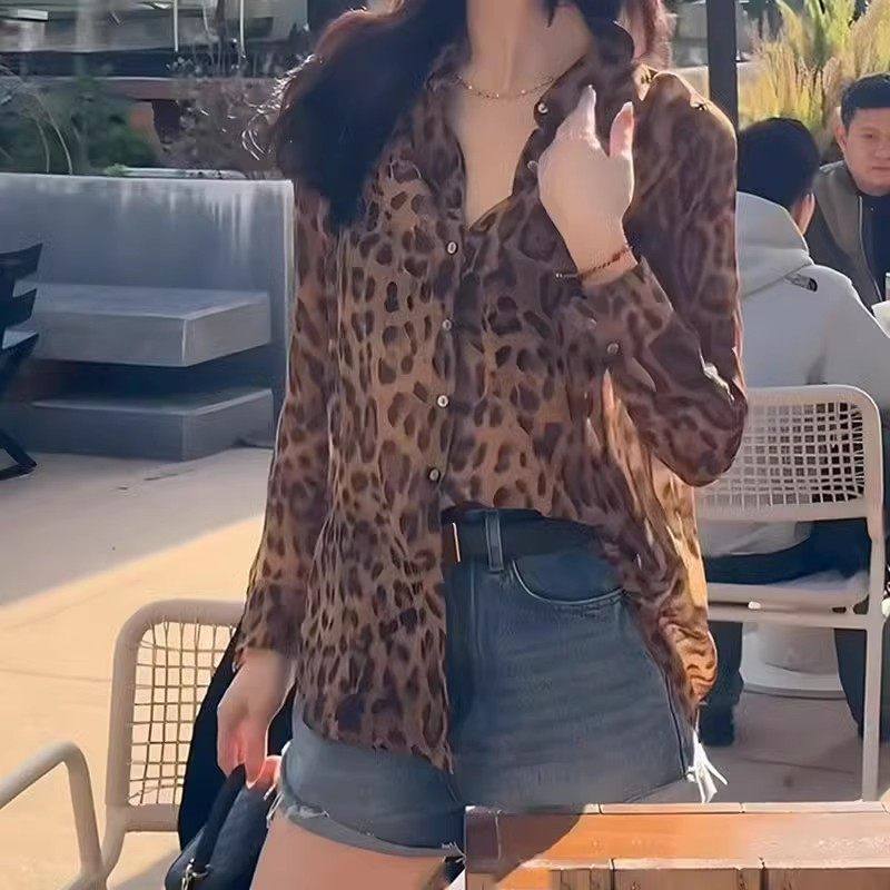 美式復古豹紋長袖防曬襯衫女2026春夏季新款寬鬆顯瘦薄款開衫上衣