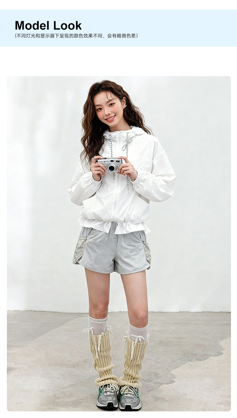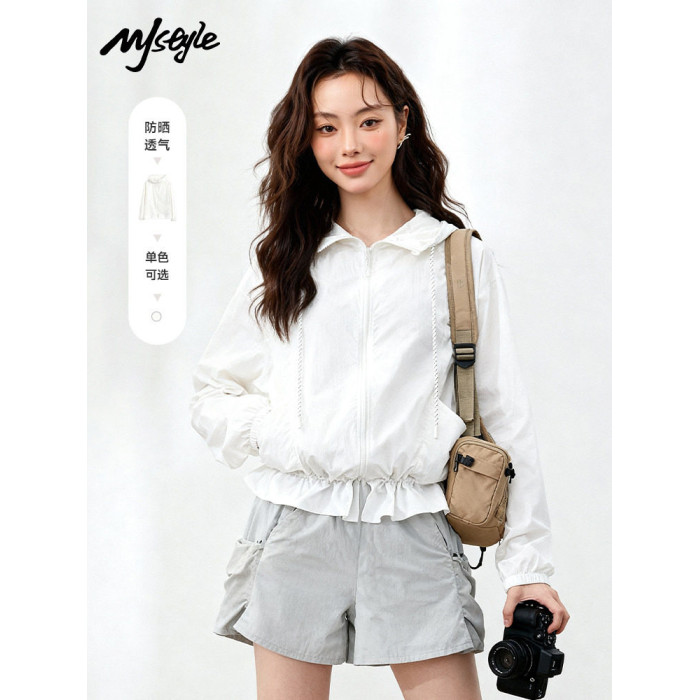 MJstyle新款寬鬆休閒百搭連帽外套女短款夏季荷葉邊防曬衣設計感