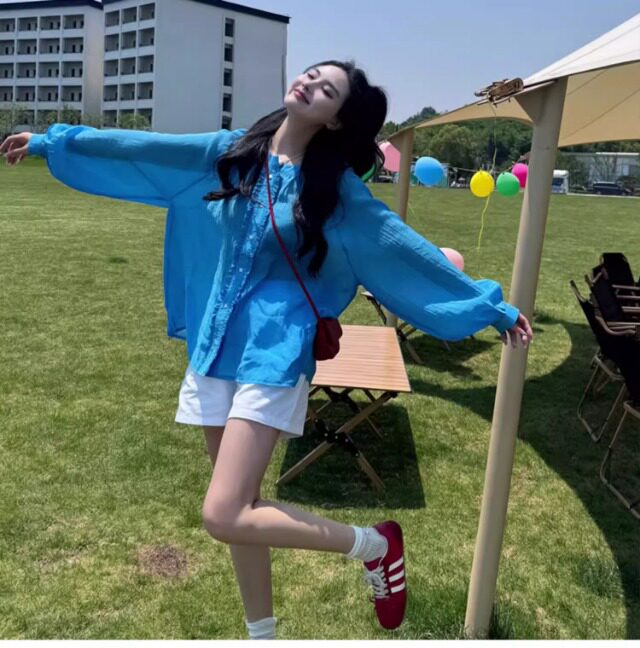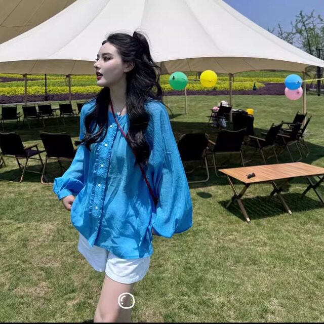 克萊因藍色防曬衣女夏季2026薄款高級感小衫防紫外線外搭罩衫上衣