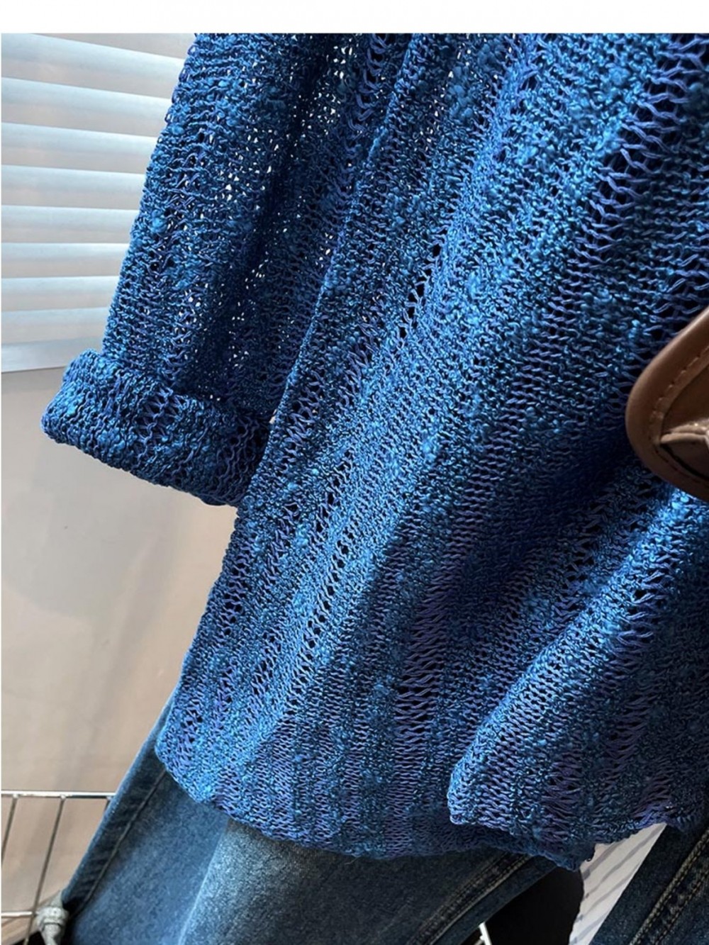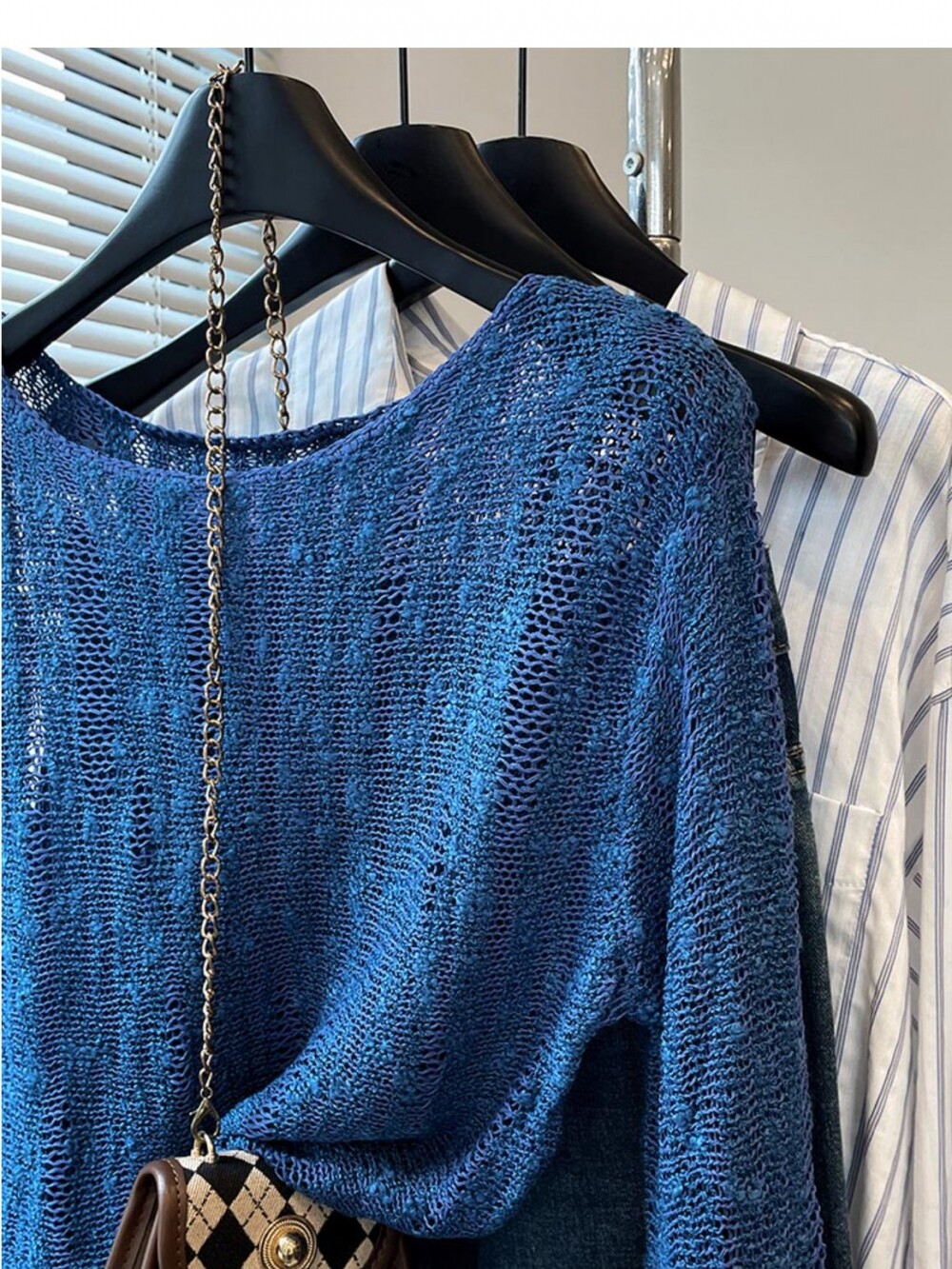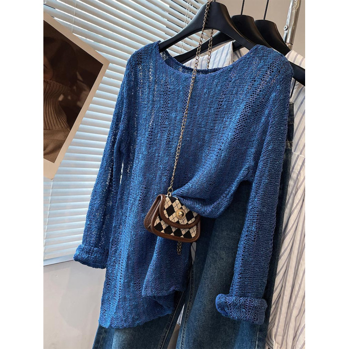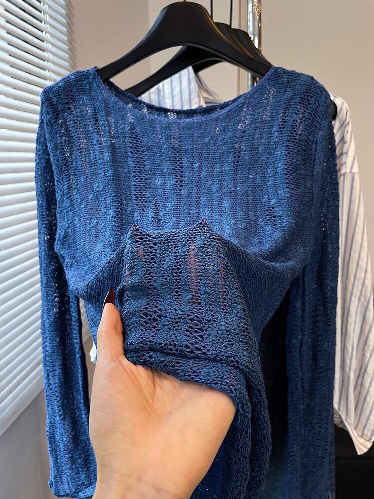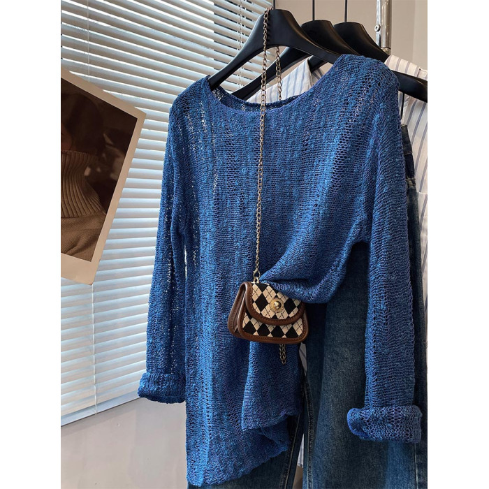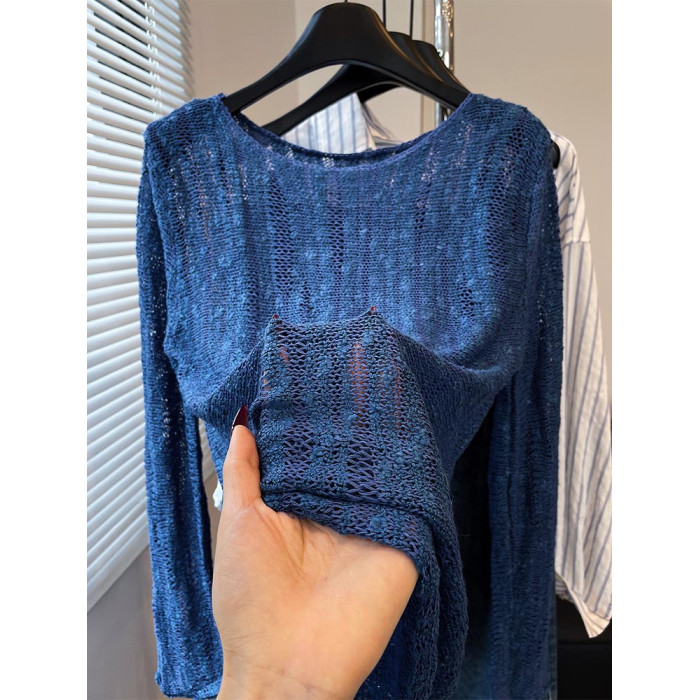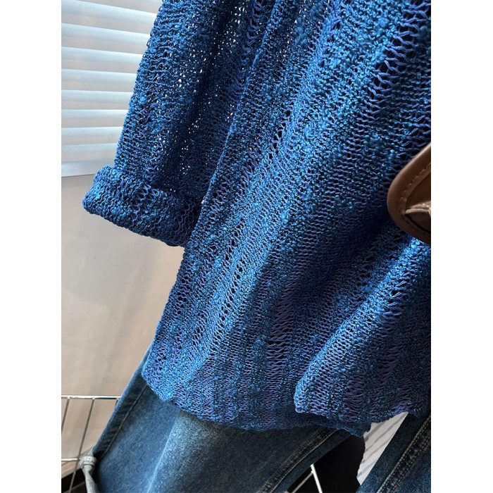 法式洋氣設計新款藍色針織衫2025年夏時尚通勤圓領減齡薄款上衣女