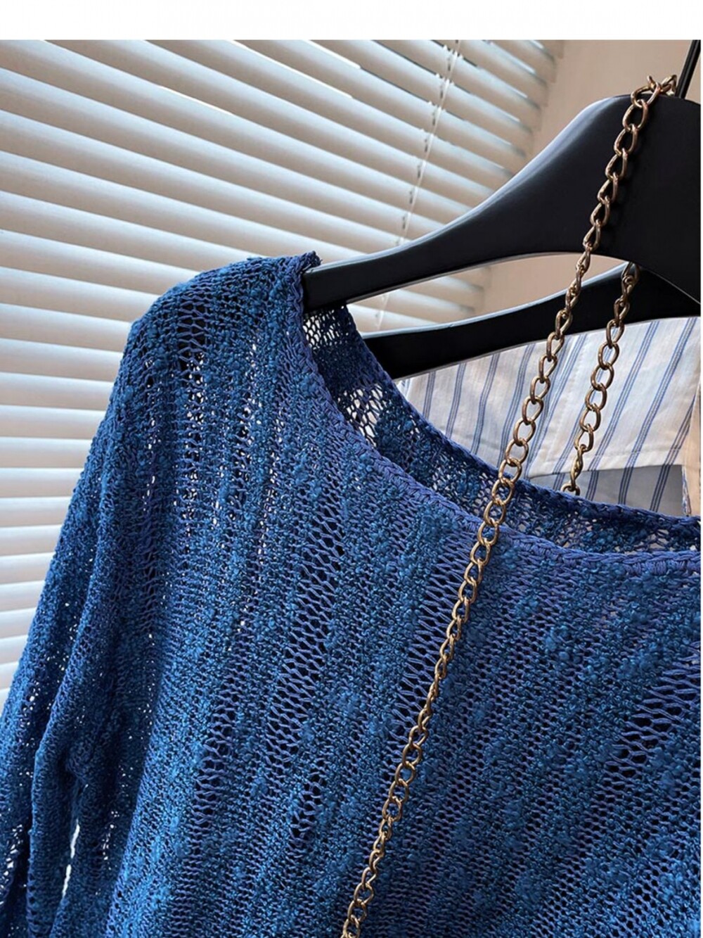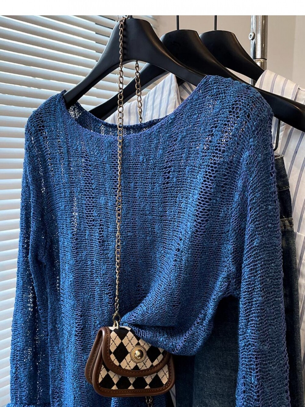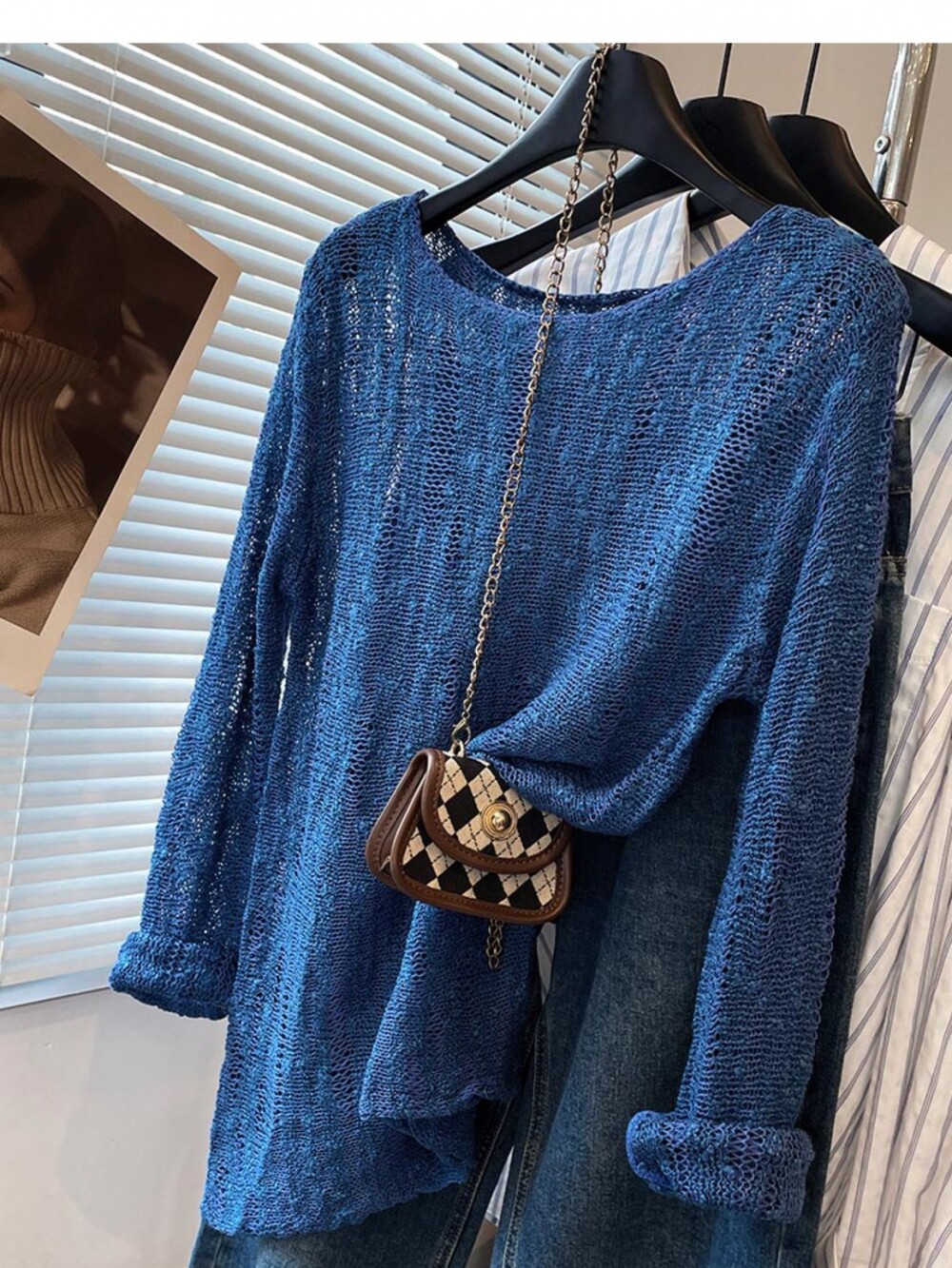 法式洋氣設計新款藍色針織衫2025年夏時尚通勤圓領減齡薄款上衣女