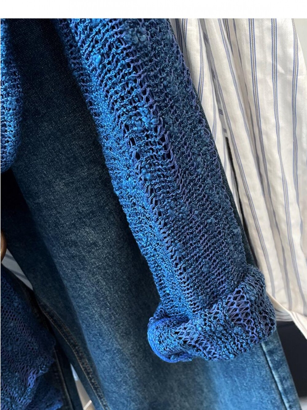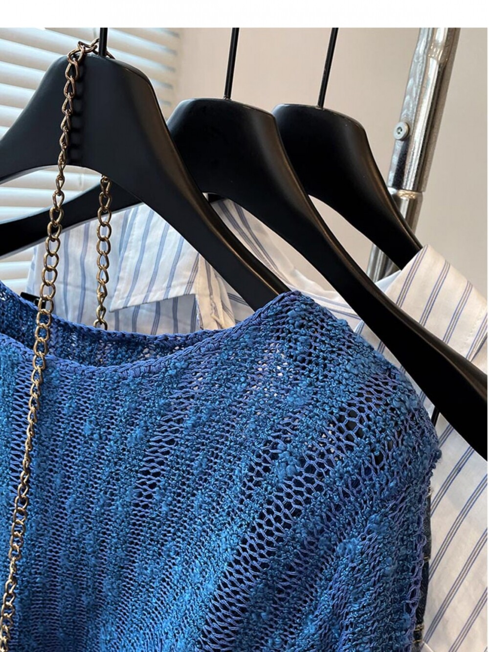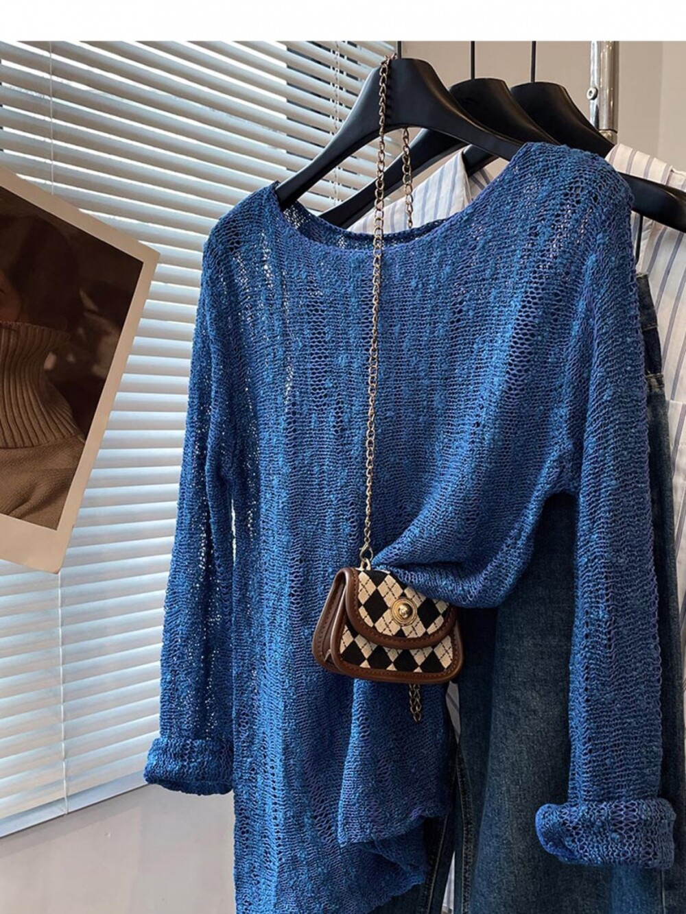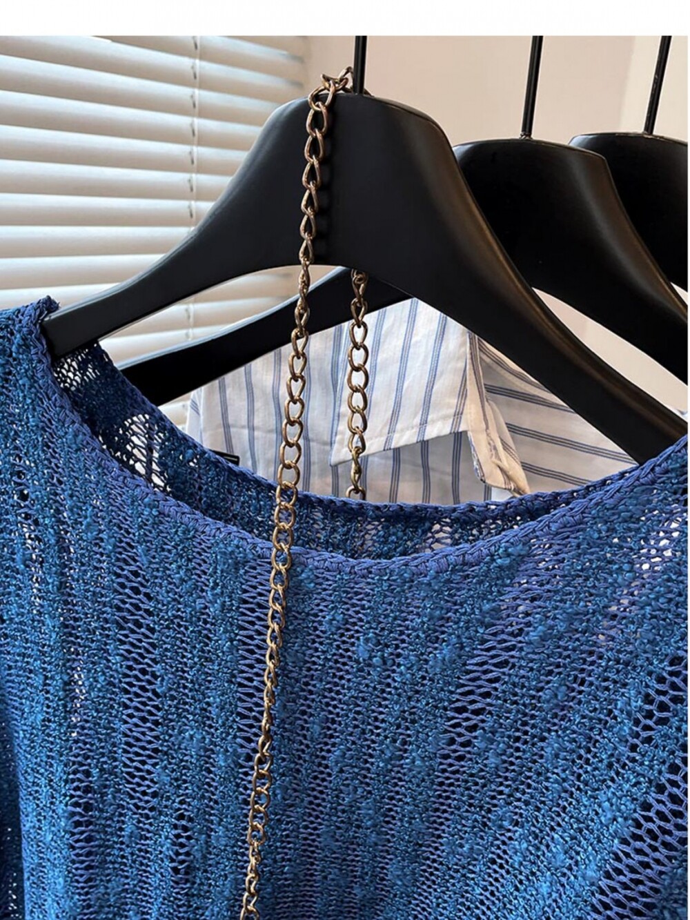 法式洋氣設計新款藍色針織衫2025年夏時尚通勤圓領減齡薄款上衣女