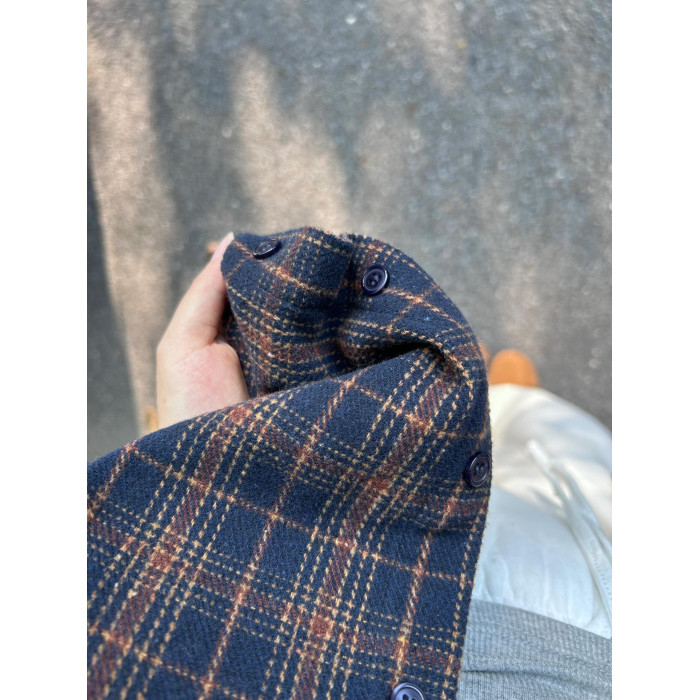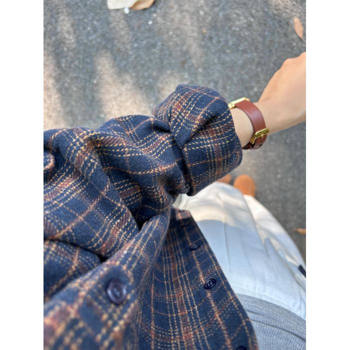 美式復古磨毛棉格子襯衫薄外套女秋冬內搭襯衫曡穿襯衣設計感上衣