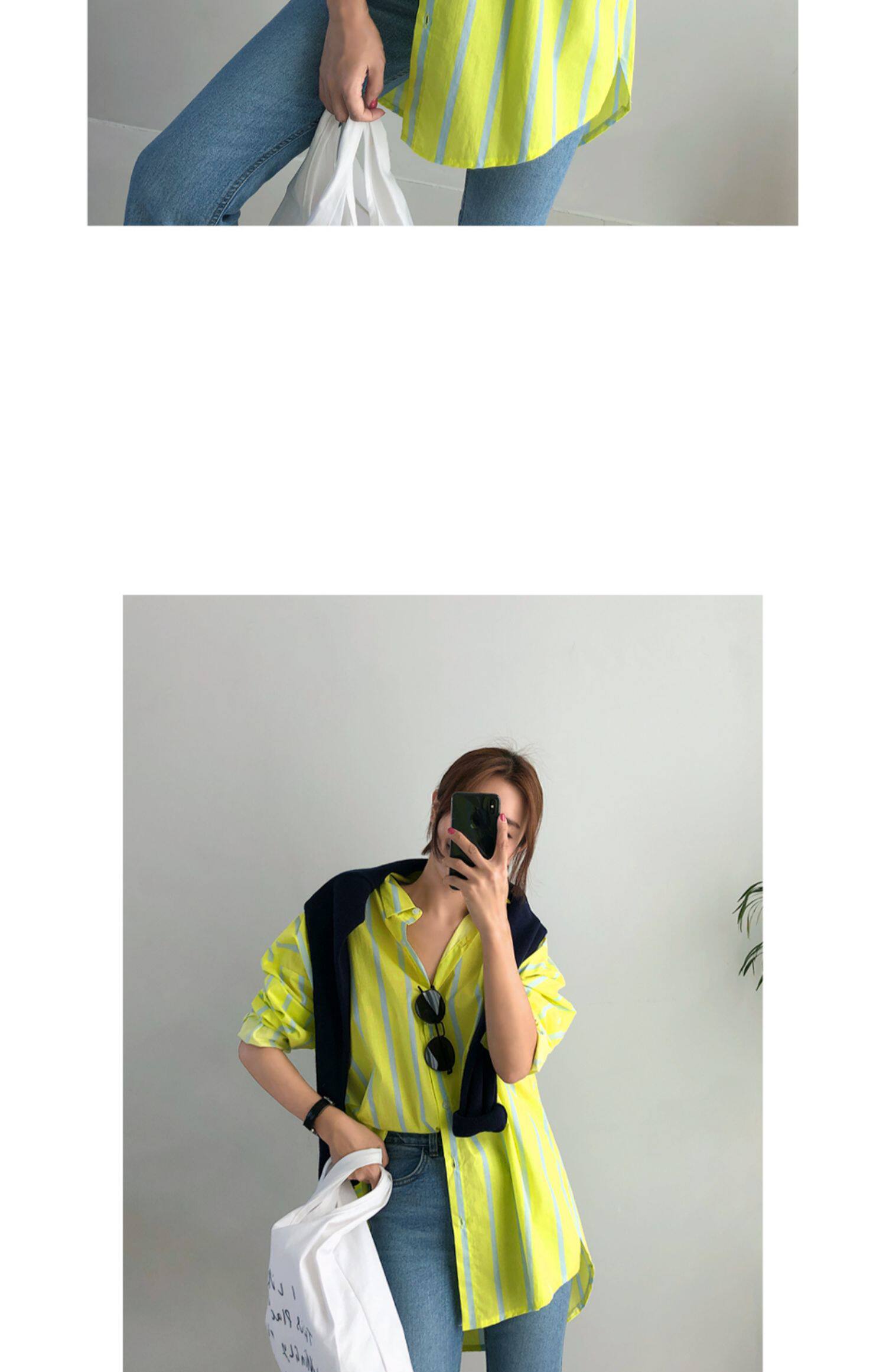春秋新款條紋長袖襯衫女韓版寬鬆顯瘦中長款bf風洋氣打底襯衣外套