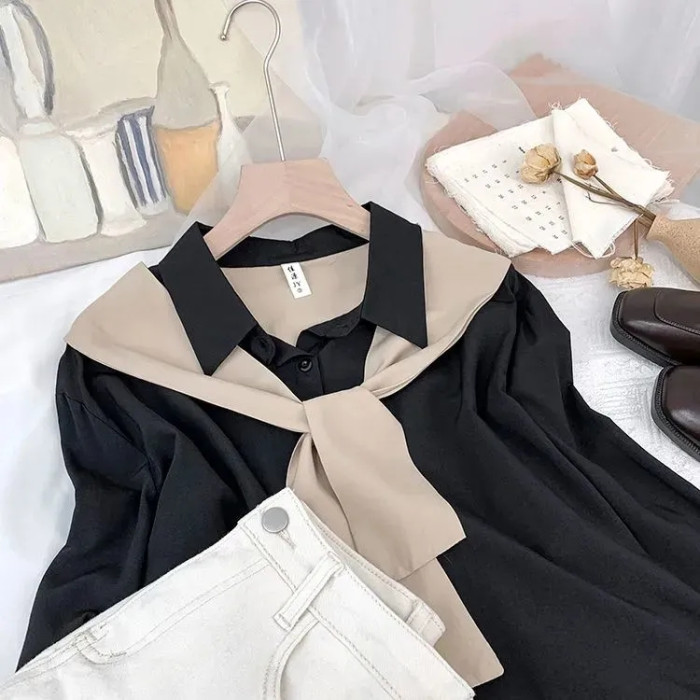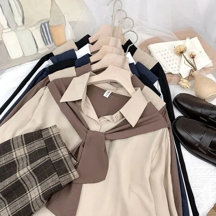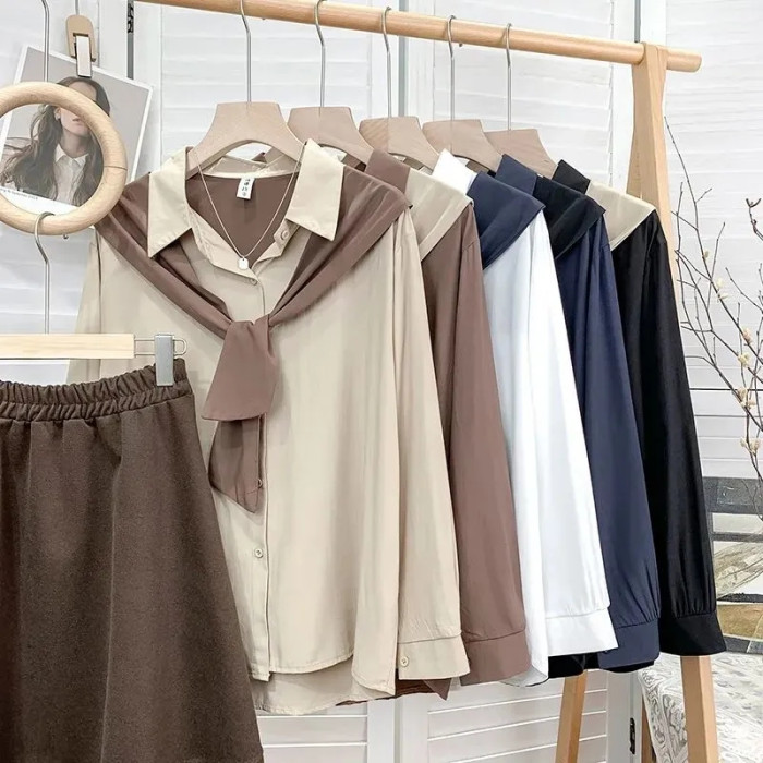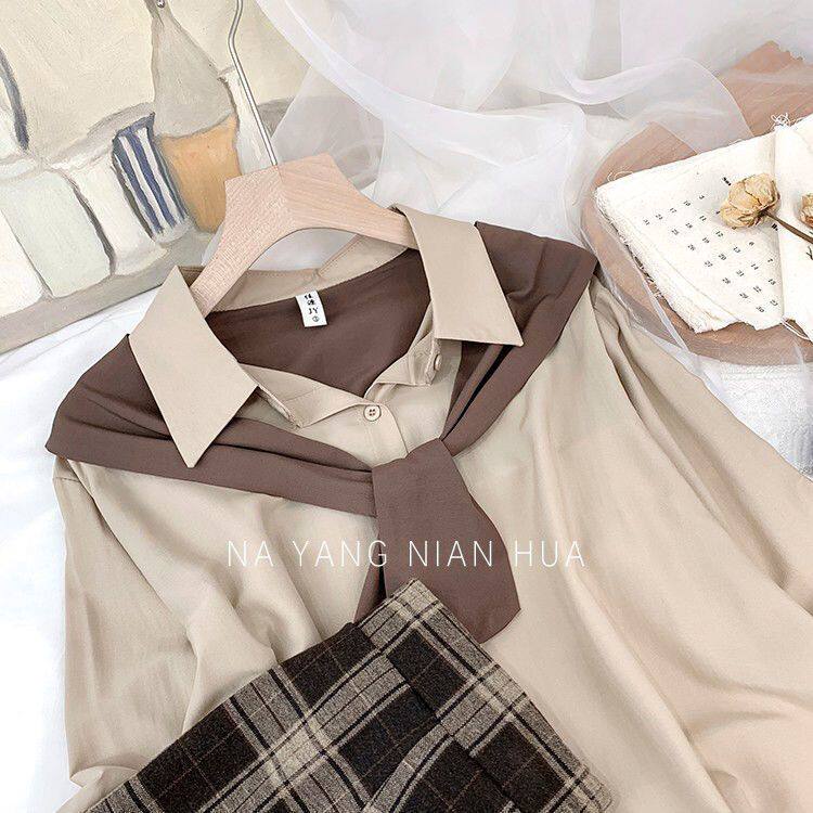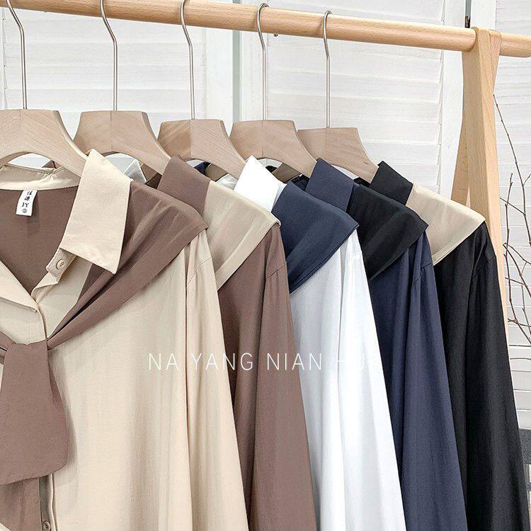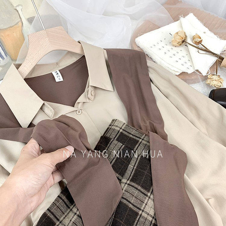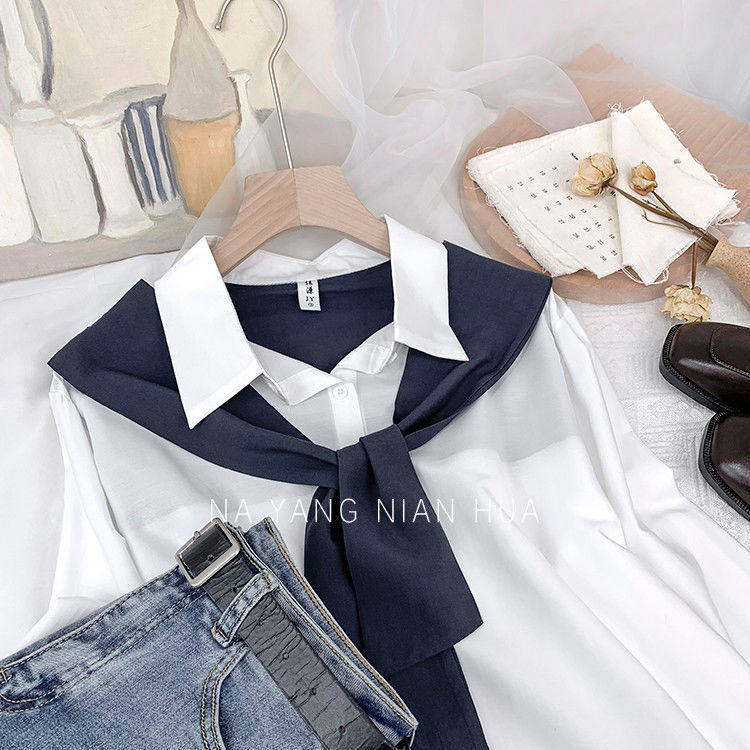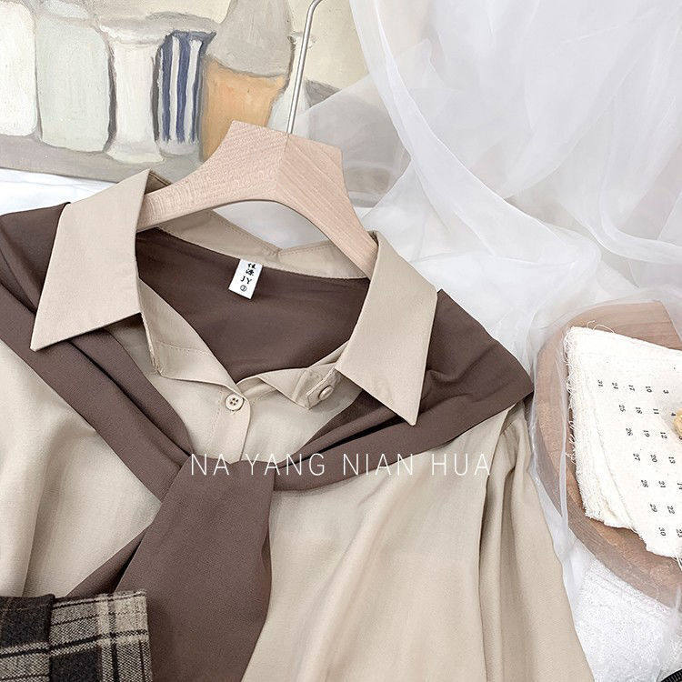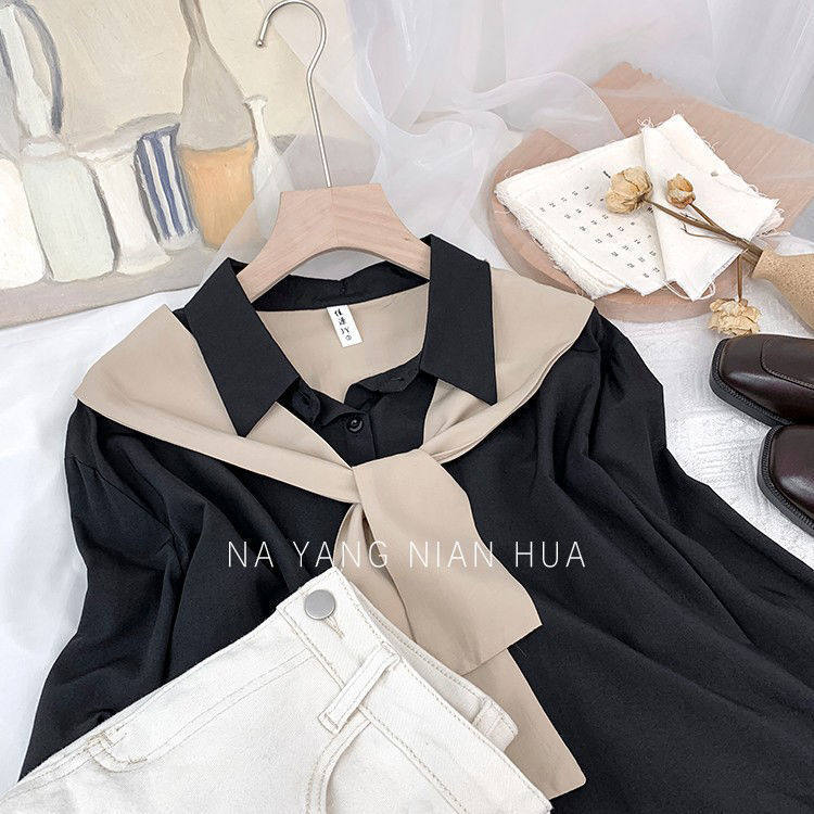 高級垂感寬鬆披肩假兩件長袖襯衫女秋設計感小衆別致外搭曡穿上衣