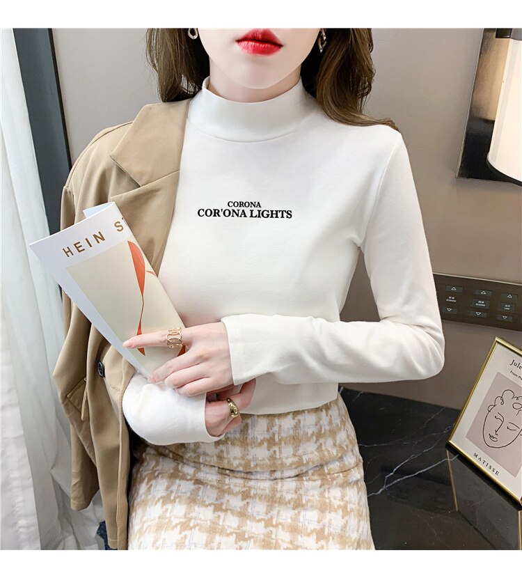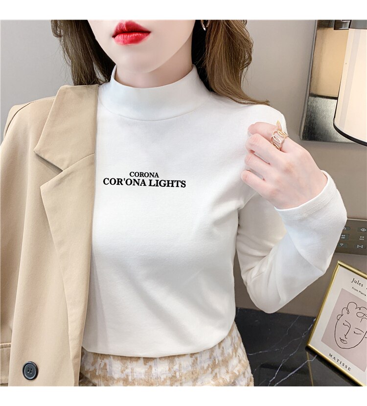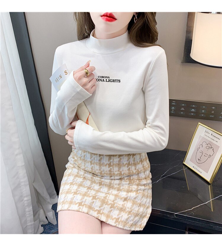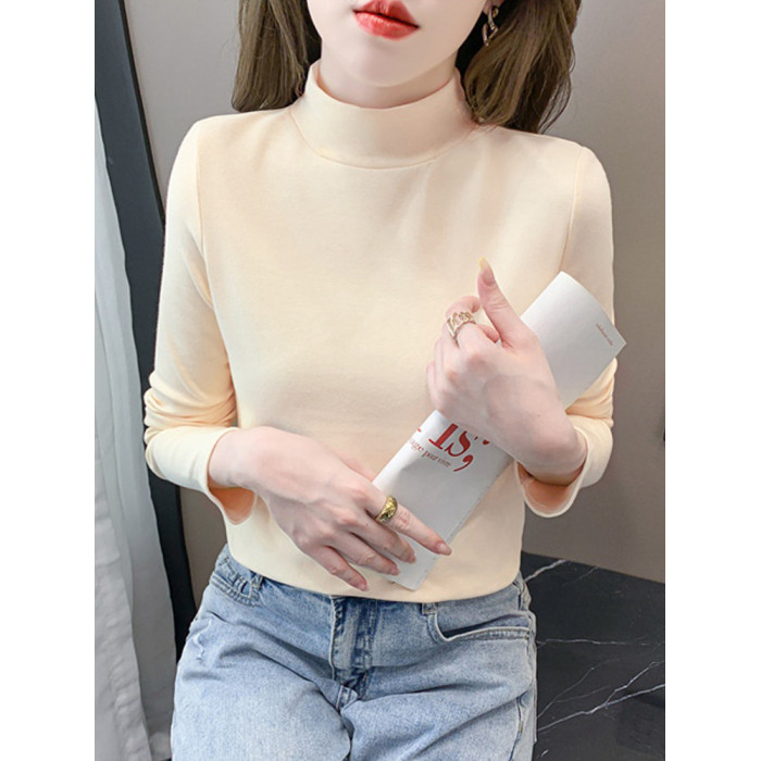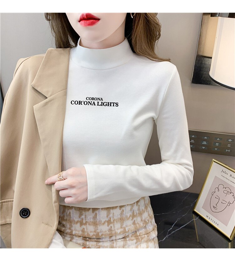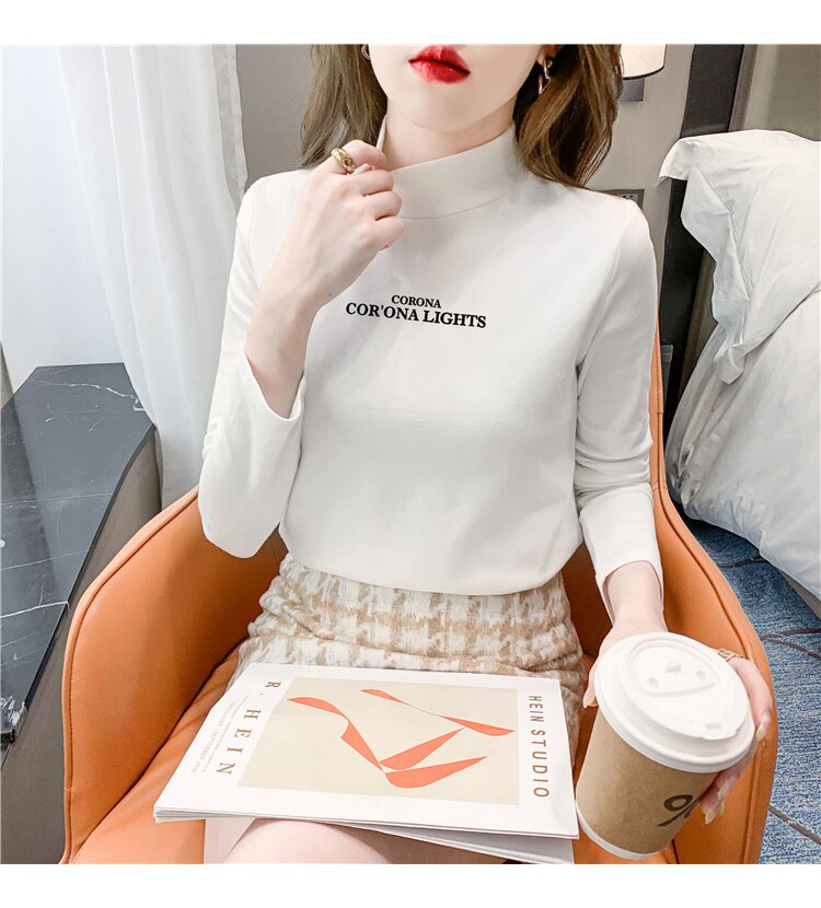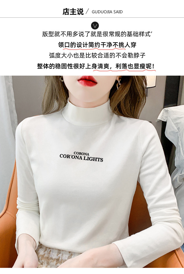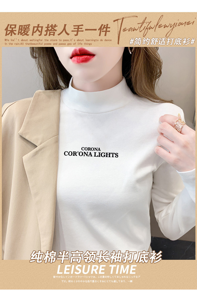 半高領打底衫女2025春秋冬白色時尚洋氣修身內搭上衣純棉長袖t恤