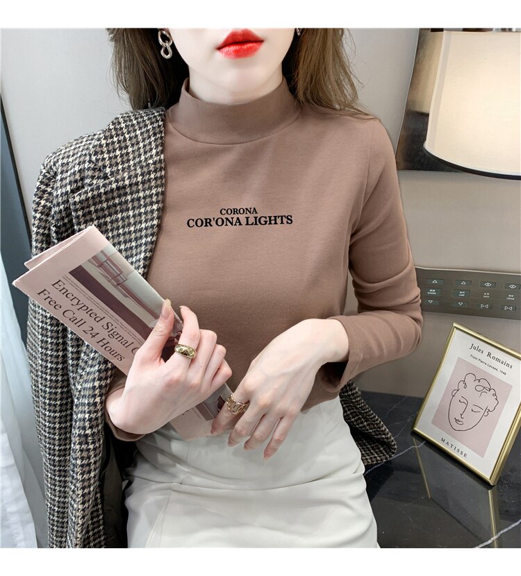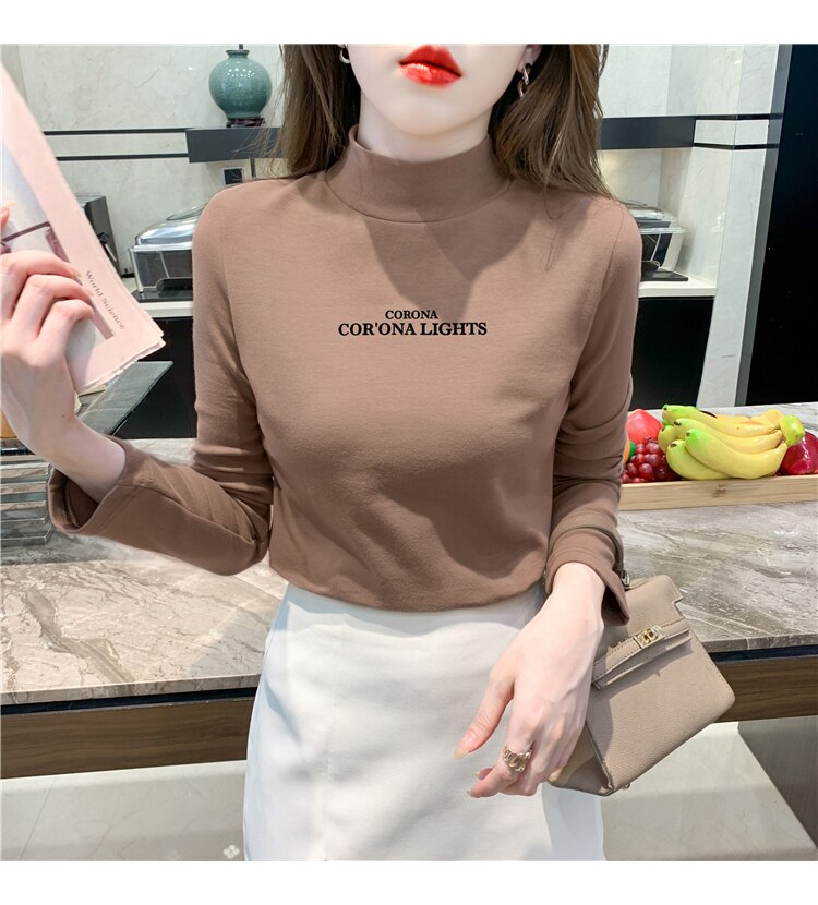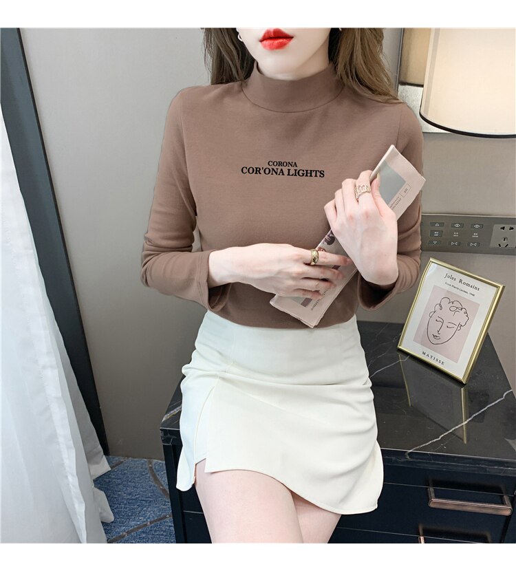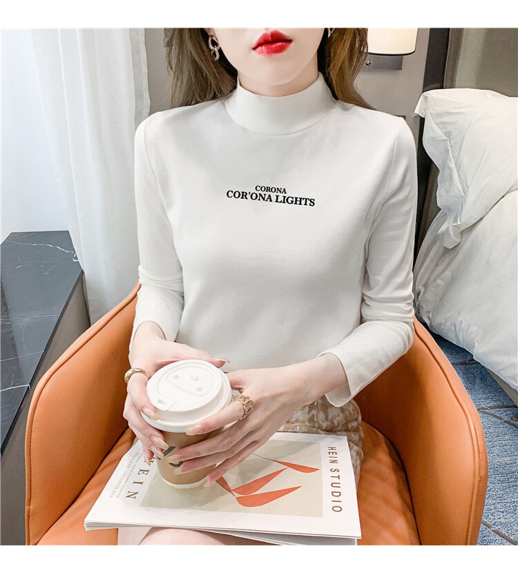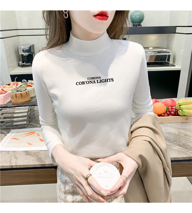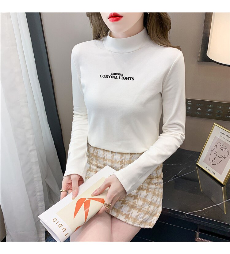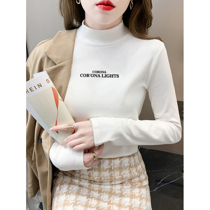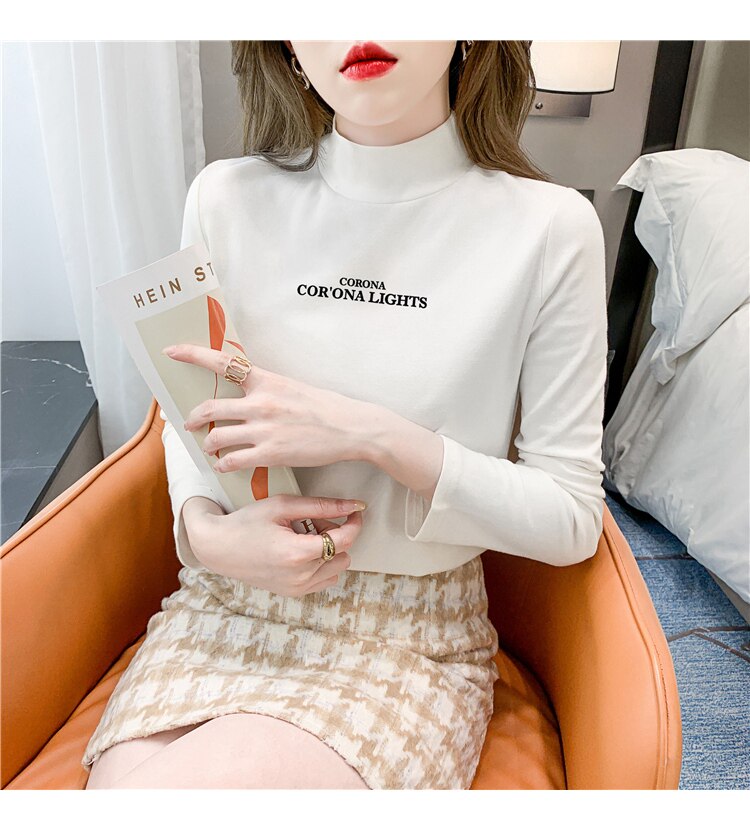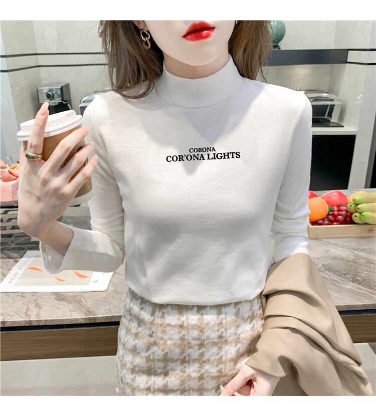 半高領打底衫女2025春秋冬白色時尚洋氣修身內搭上衣純棉長袖t恤