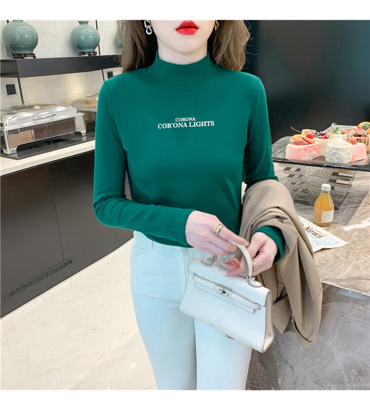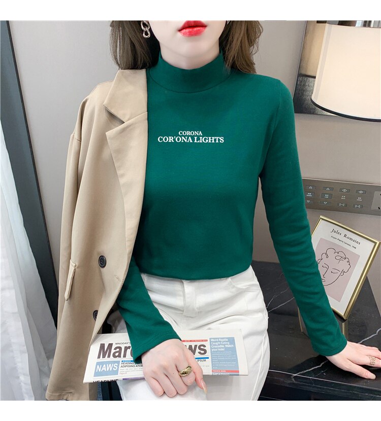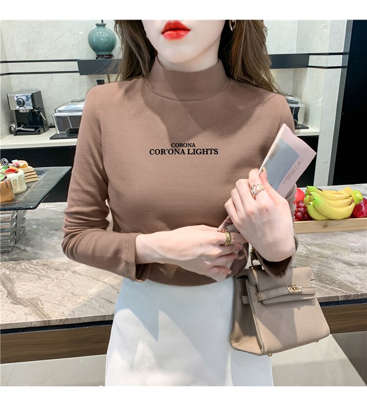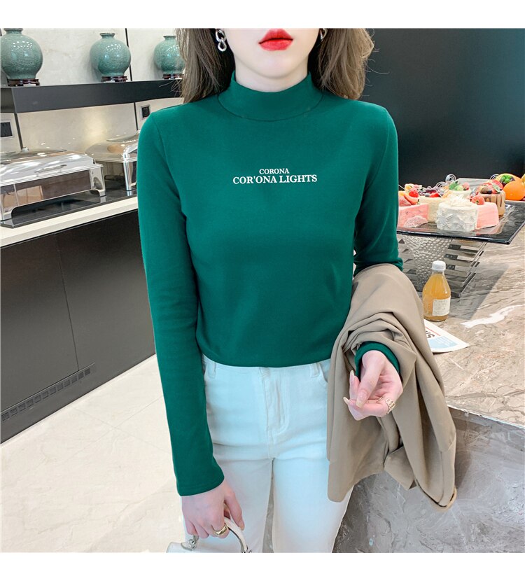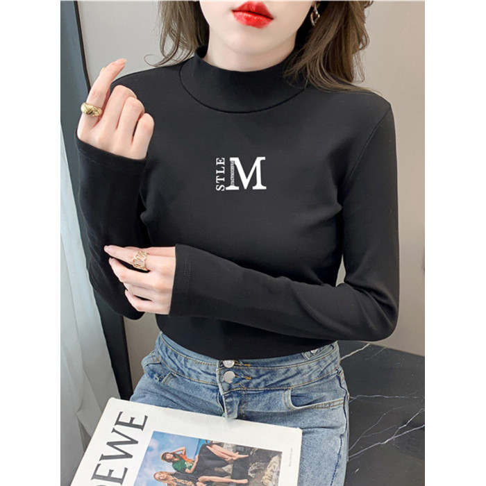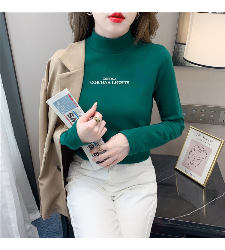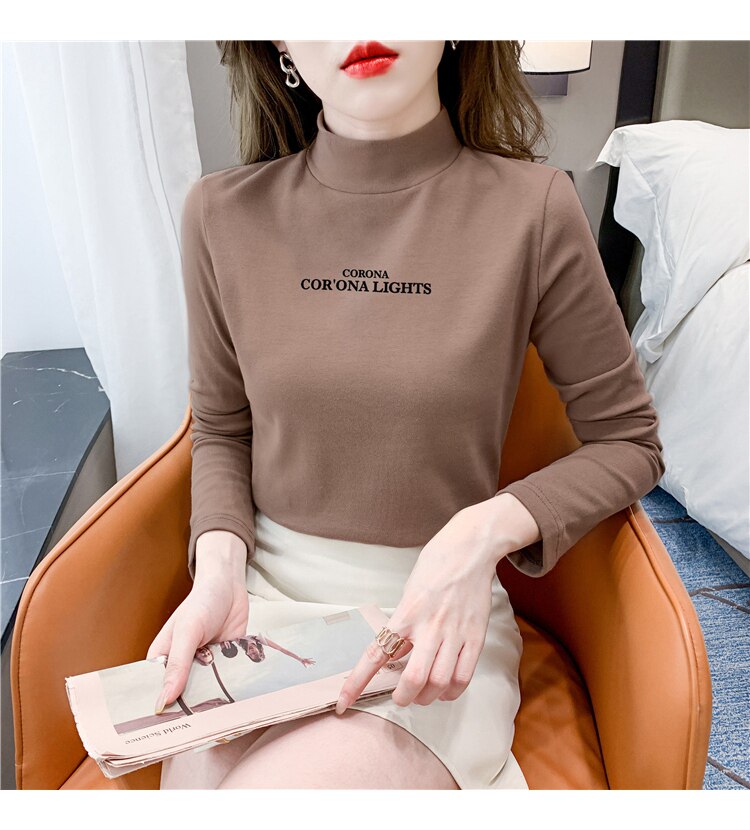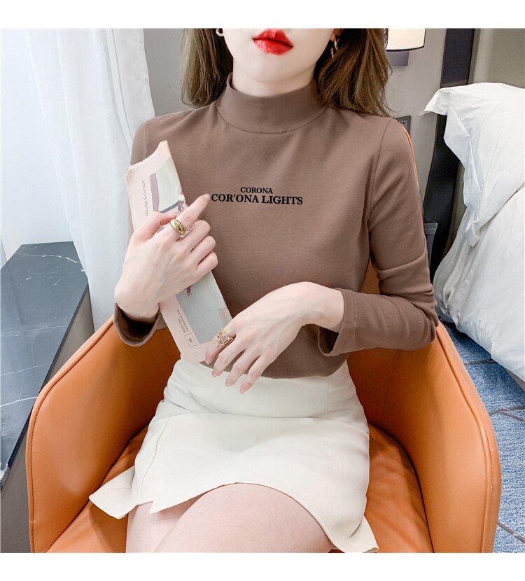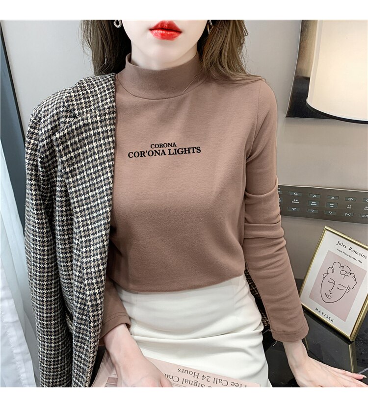 半高領打底衫女2025春秋冬白色時尚洋氣修身內搭上衣純棉長袖t恤