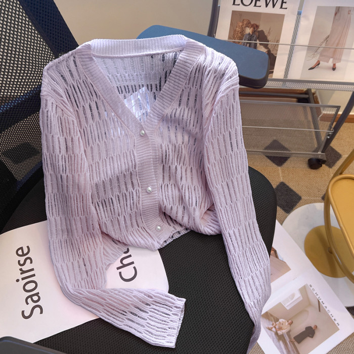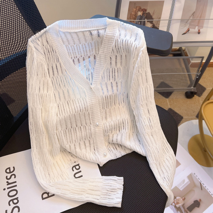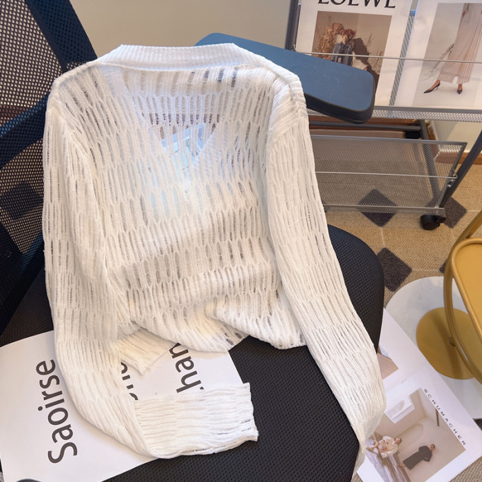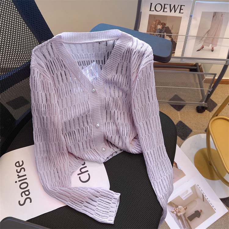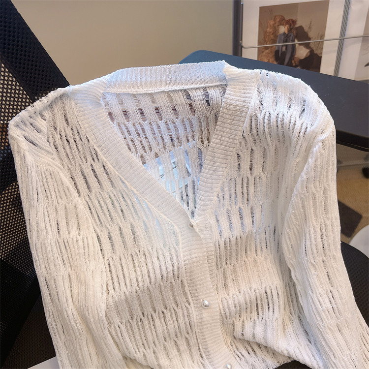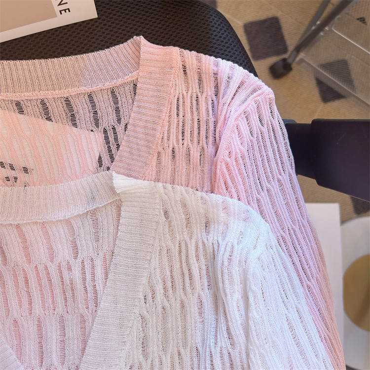 專櫃撤廻剪標溫柔風冰絲針織開衫女夏季2025新款薄款長袖防曬上衣