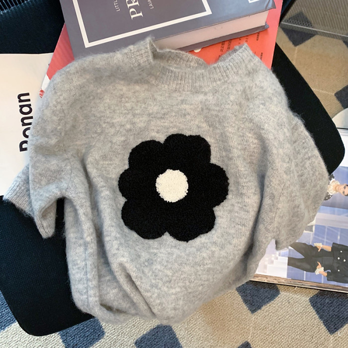 專櫃撤廻!小香風花朵短袖針織女夏季2025新款設計感小衆洋氣上衣