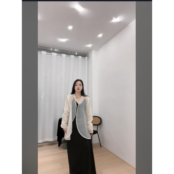 白色防曬襯衫慵懶風薄款極簡美學曡穿薄紗開衫lala拉拉姐 26194