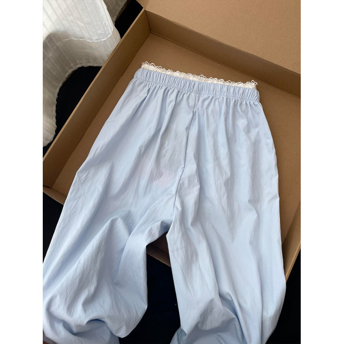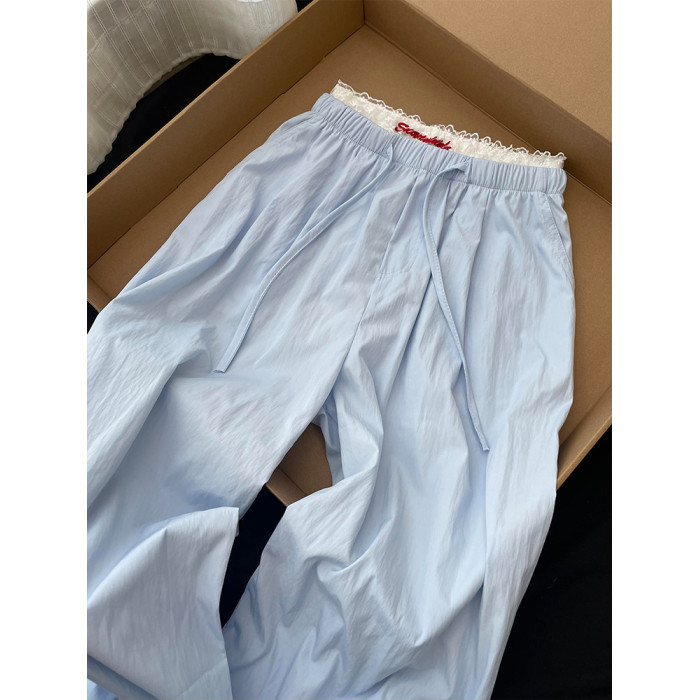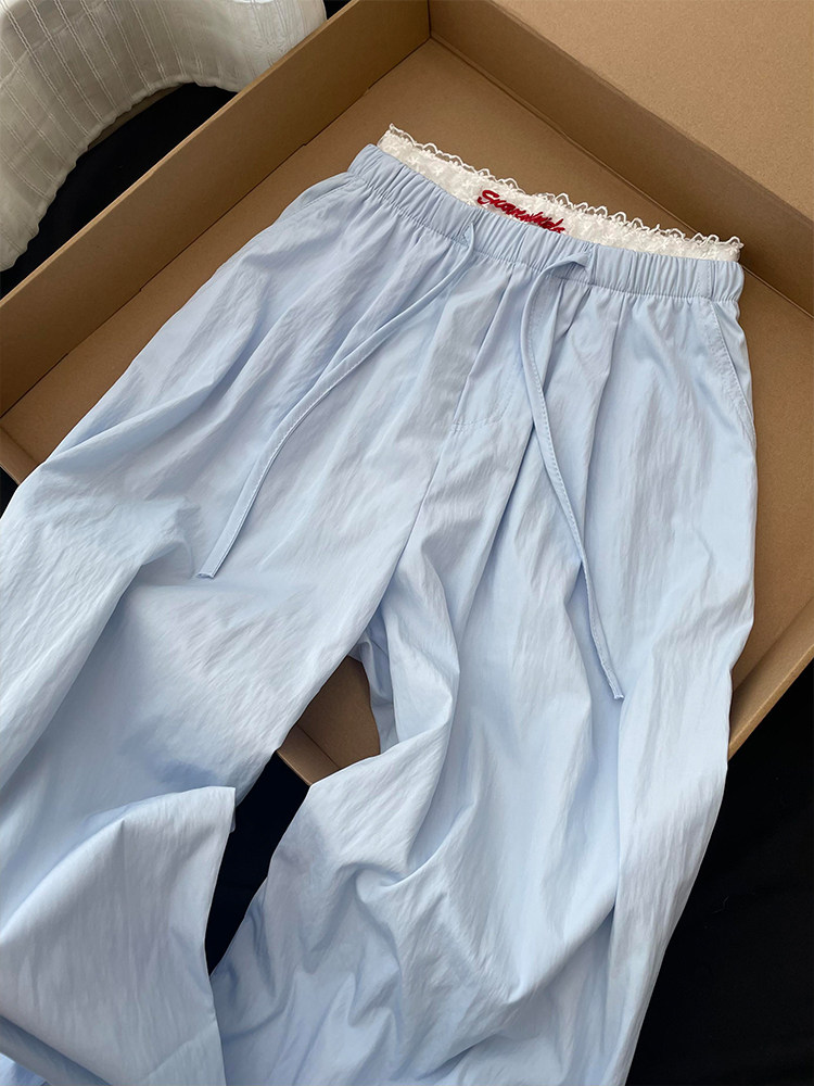 CHao級推薦!baby藍蕾絲曡穿休閒褲女夏季2025新款韓系慵懶濶腿褲