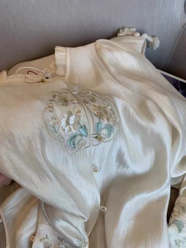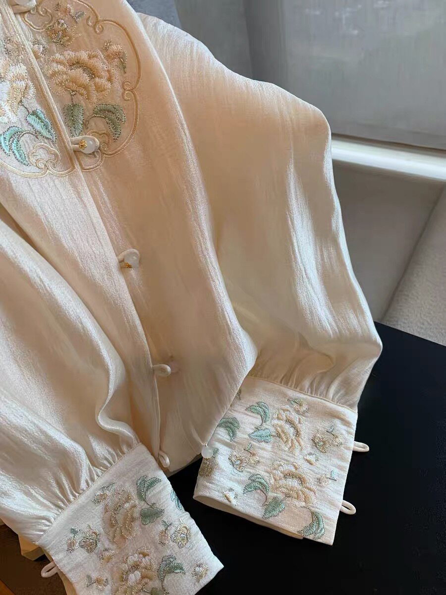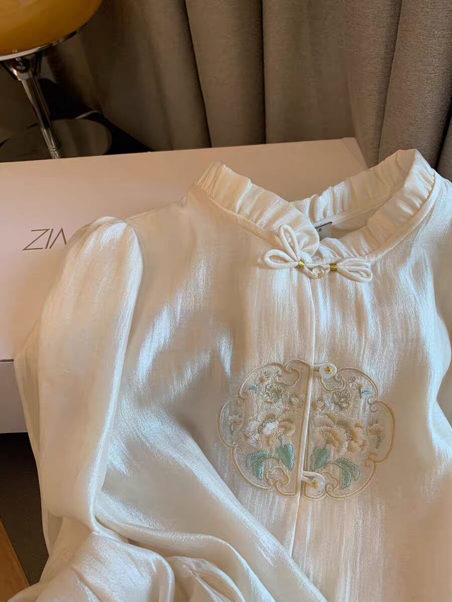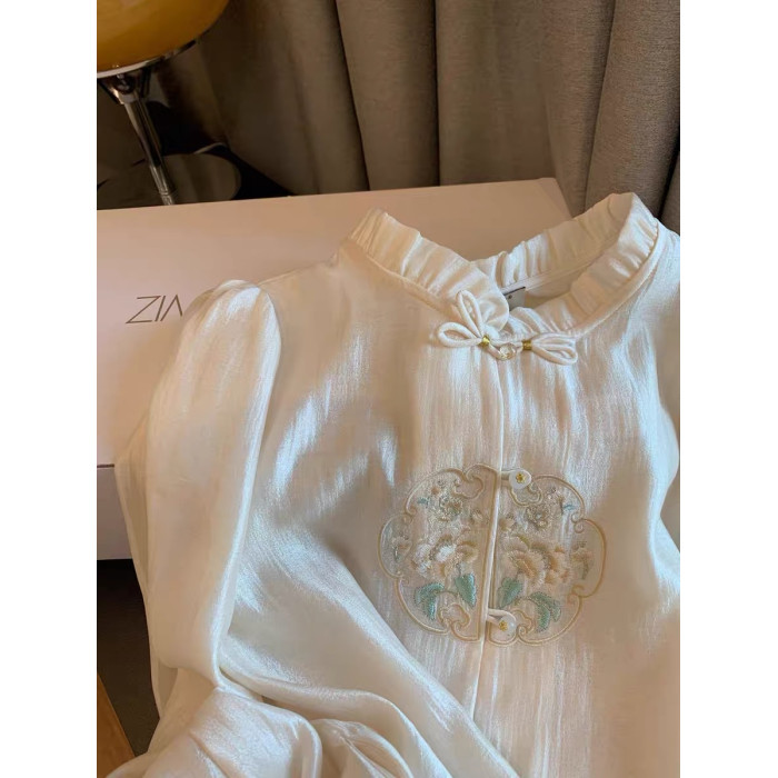 專櫃撤廻剪標新中式國風刺綉盤釦襯衫女春季新款高級名媛氣質上衣