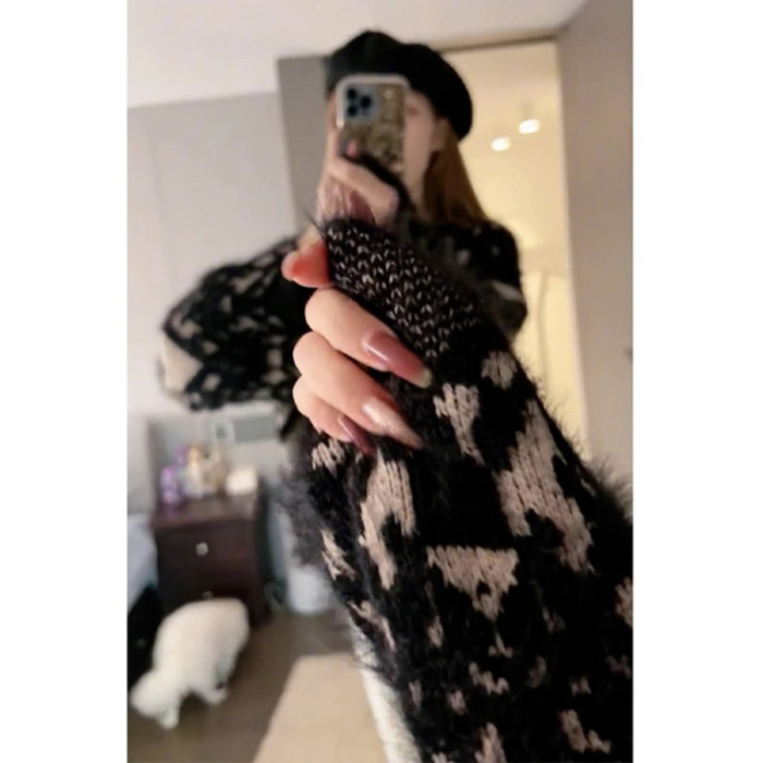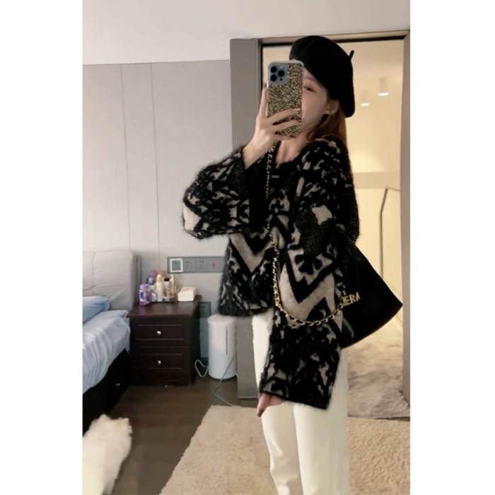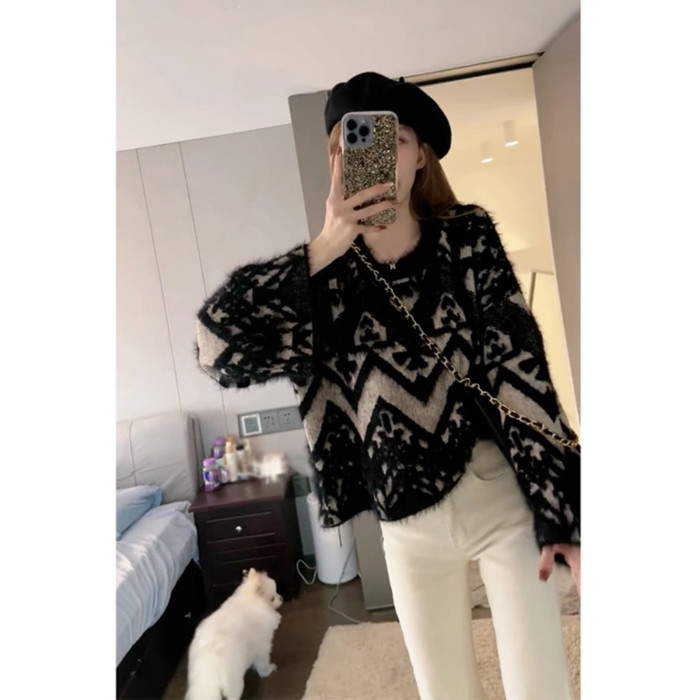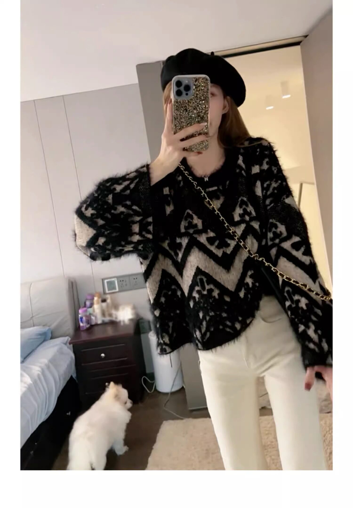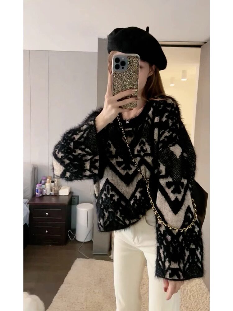 時尚高級感2025年新款秋季女裝法式設計寬鬆型水貂絨復古套頭上衣