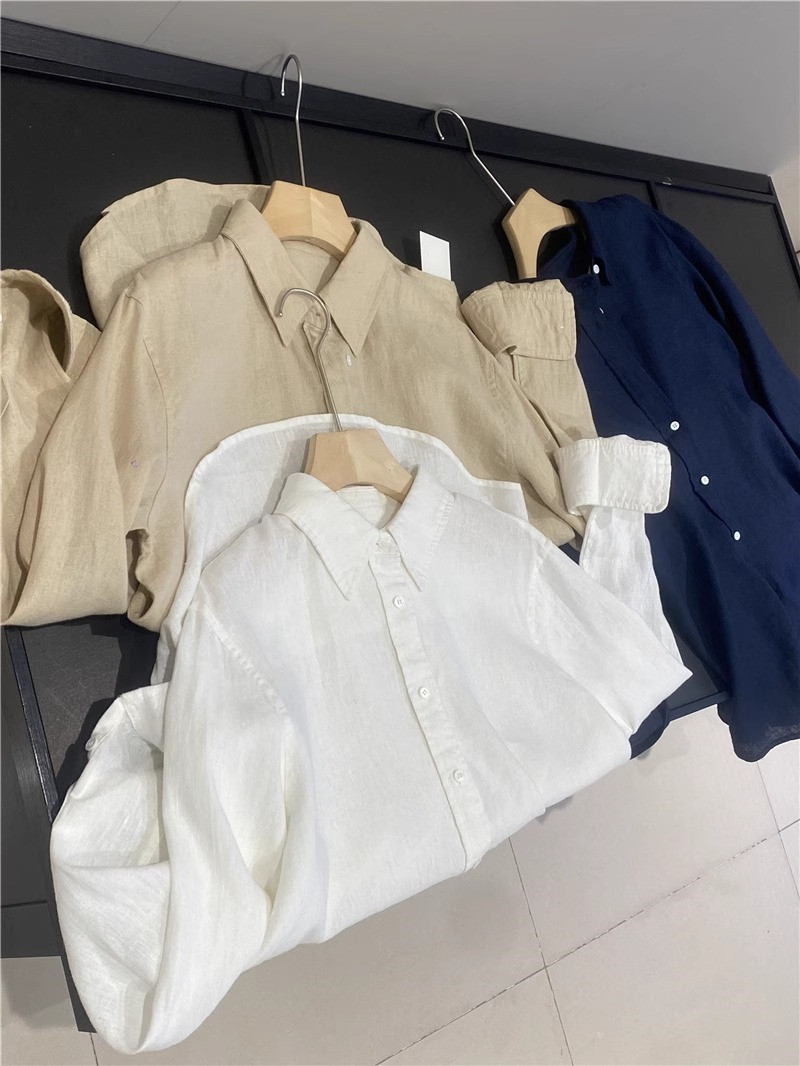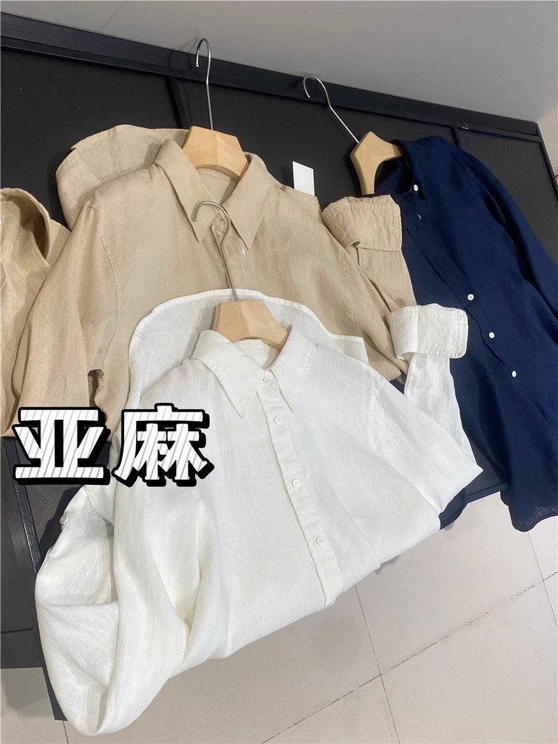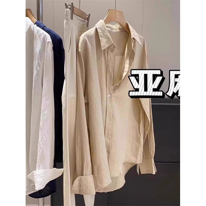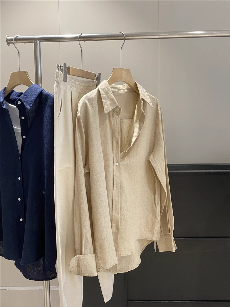 廣州十三行爆款~亞麻純色長袖襯衫女春秋季休閒襯衣chic港風上衣