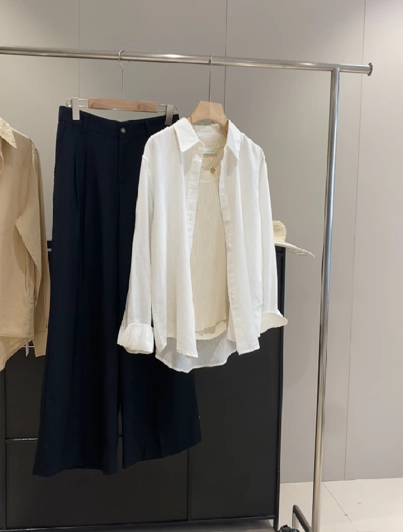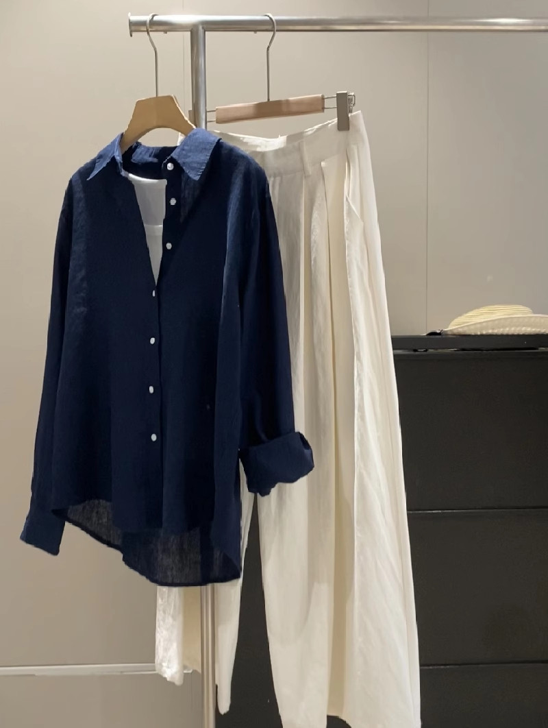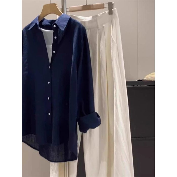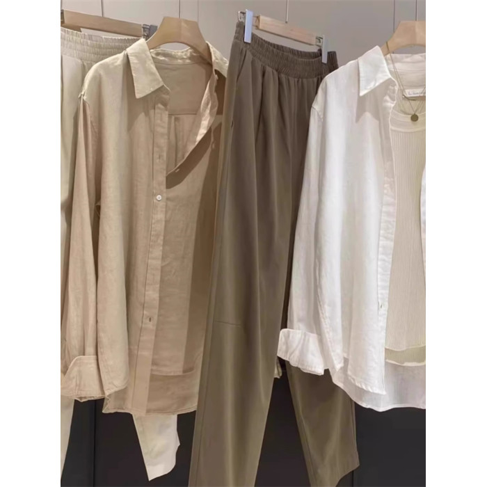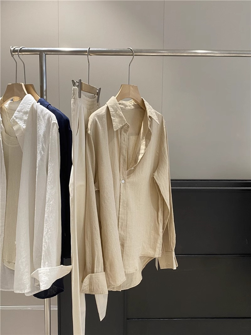 廣州十三行爆款~亞麻純色長袖襯衫女春秋季休閒襯衣chic港風上衣