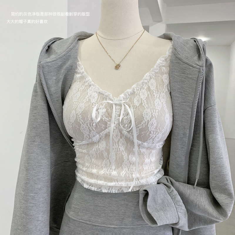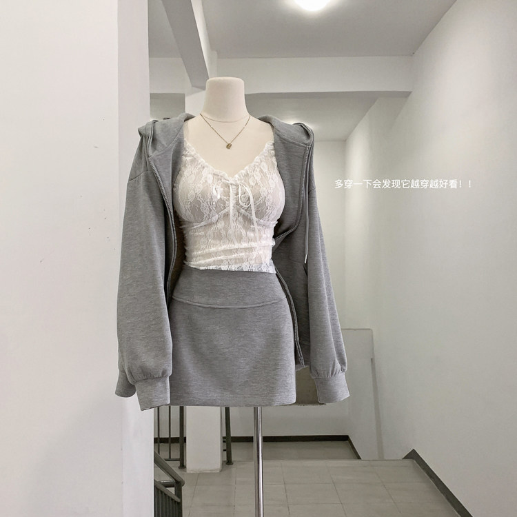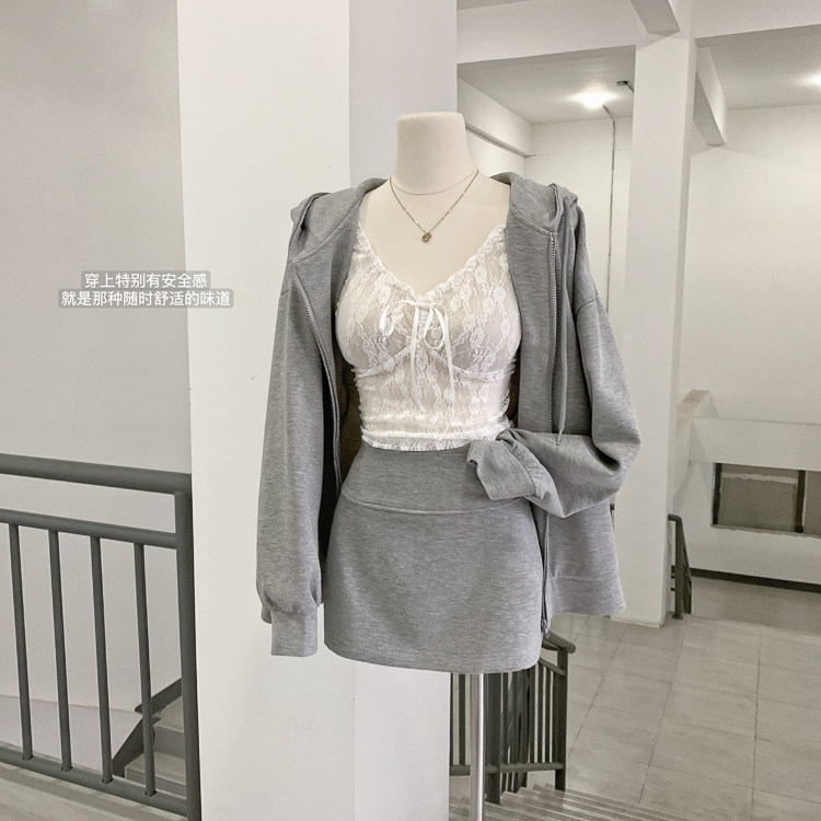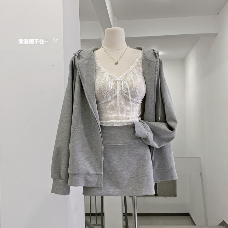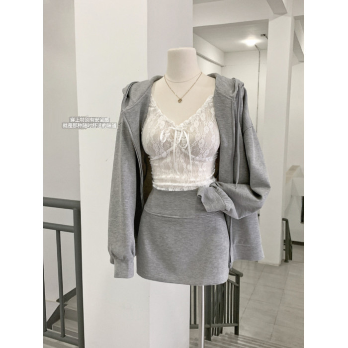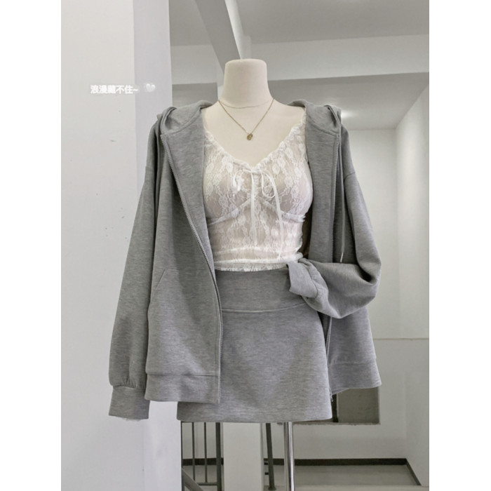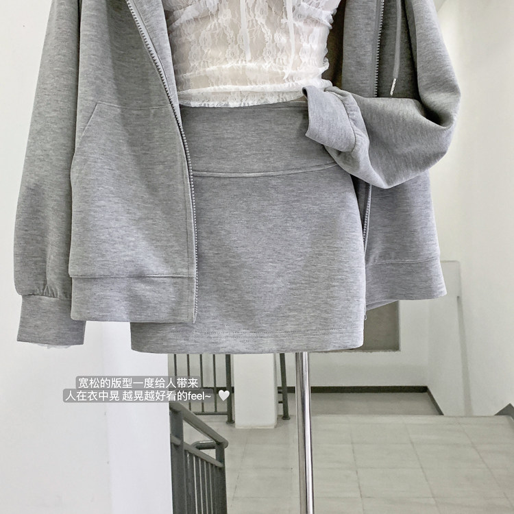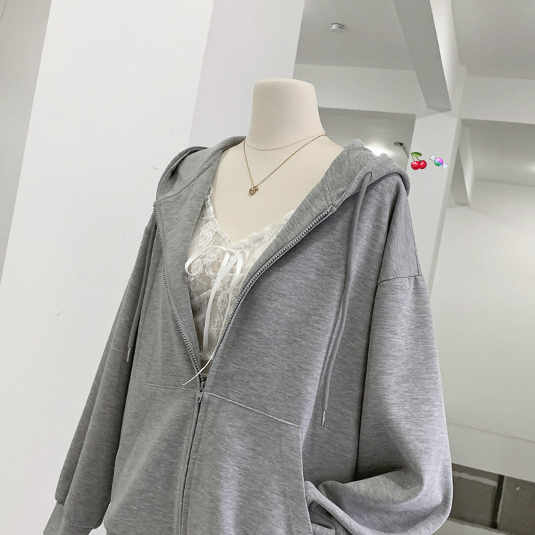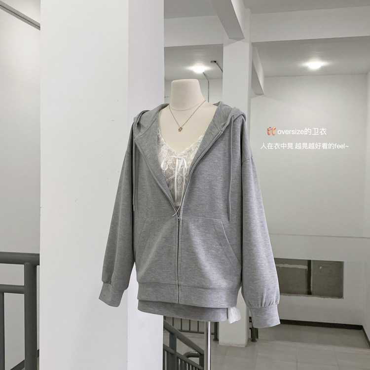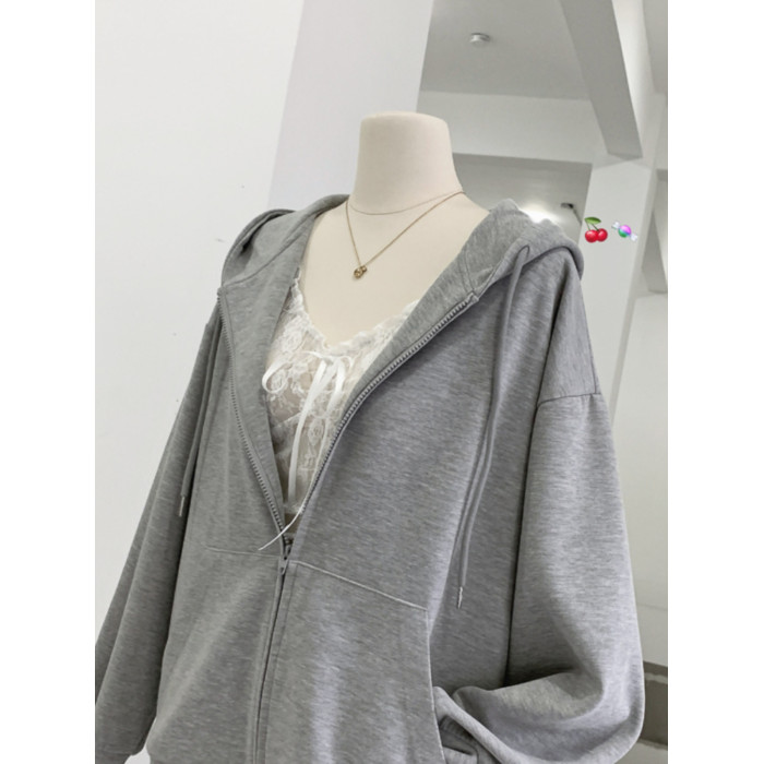 LINAN自製 2024秋季灰色衛衣拉鍊連帽衛衣開衫女寬鬆慵懶休閒外套
