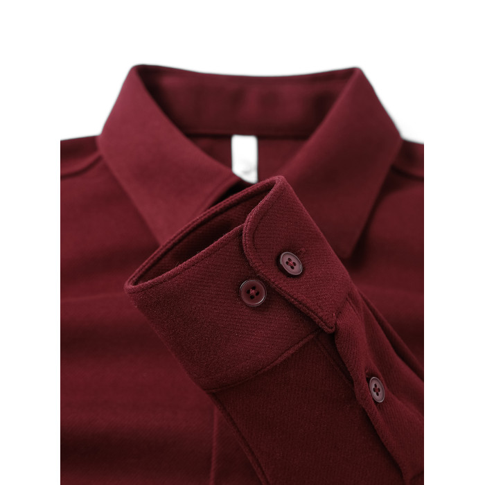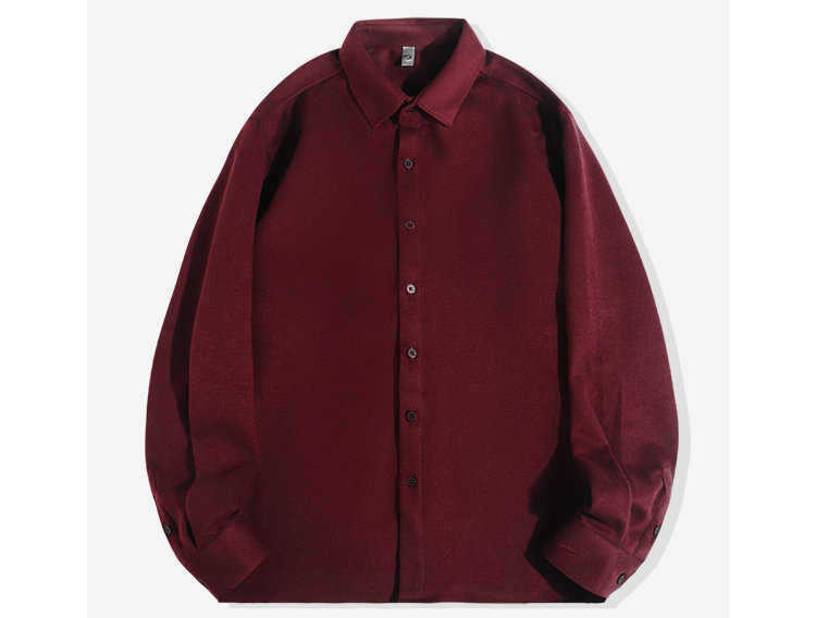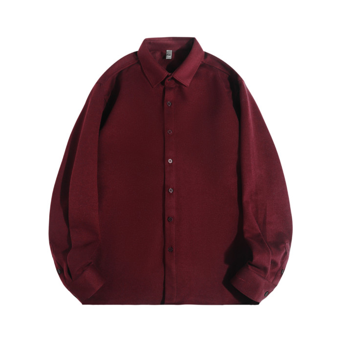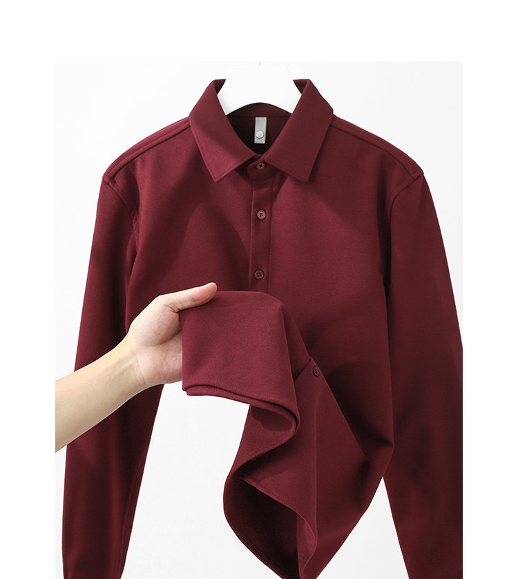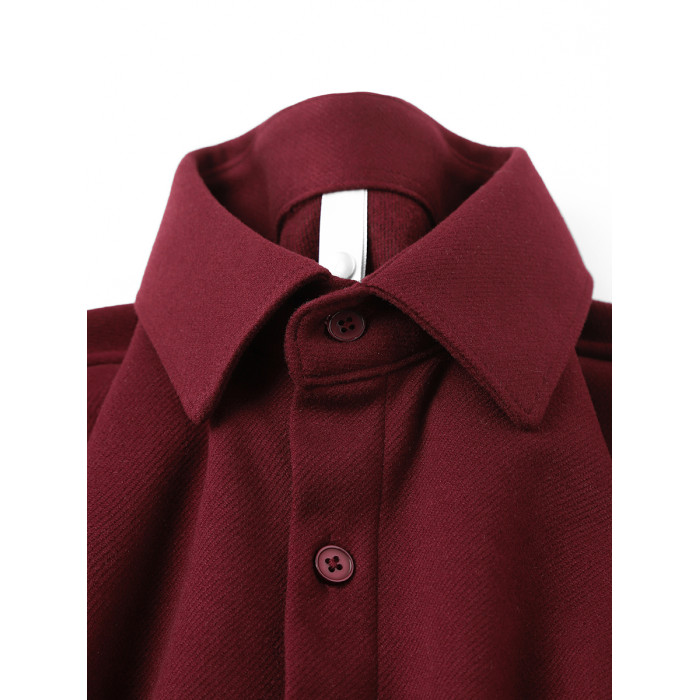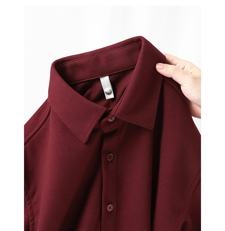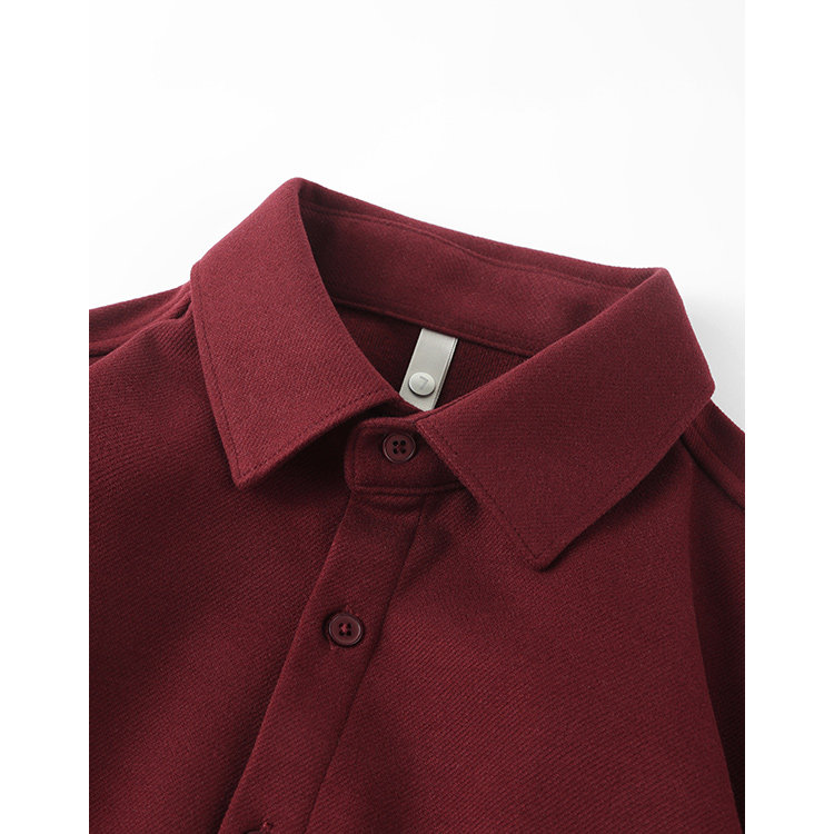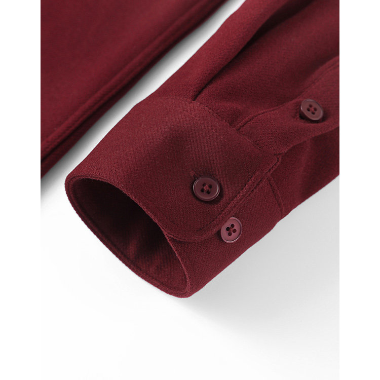 今年流行色!安可拉紅繙領長袖襯衫復古酒紅色高級感毛呢開衫襯衣