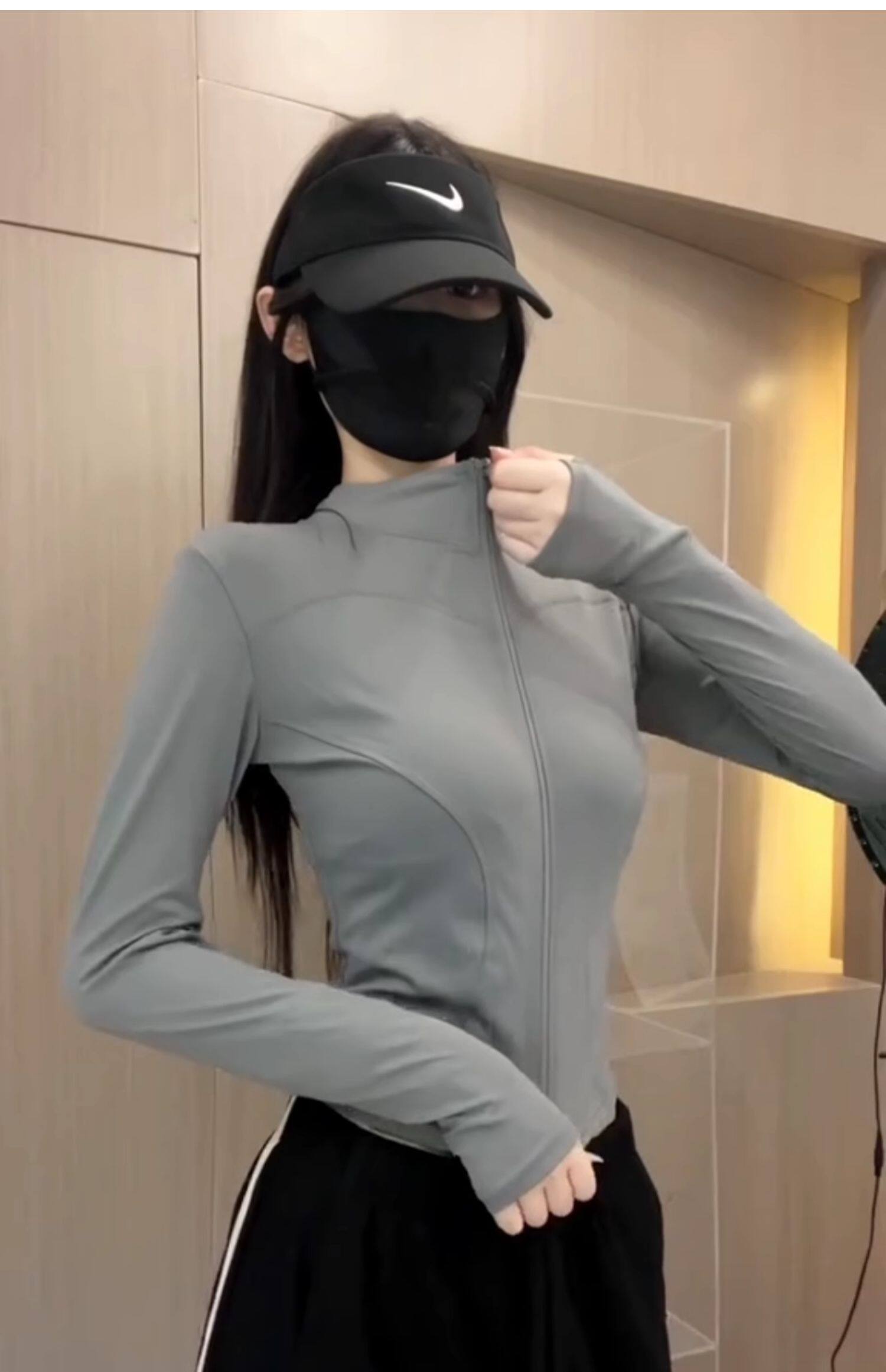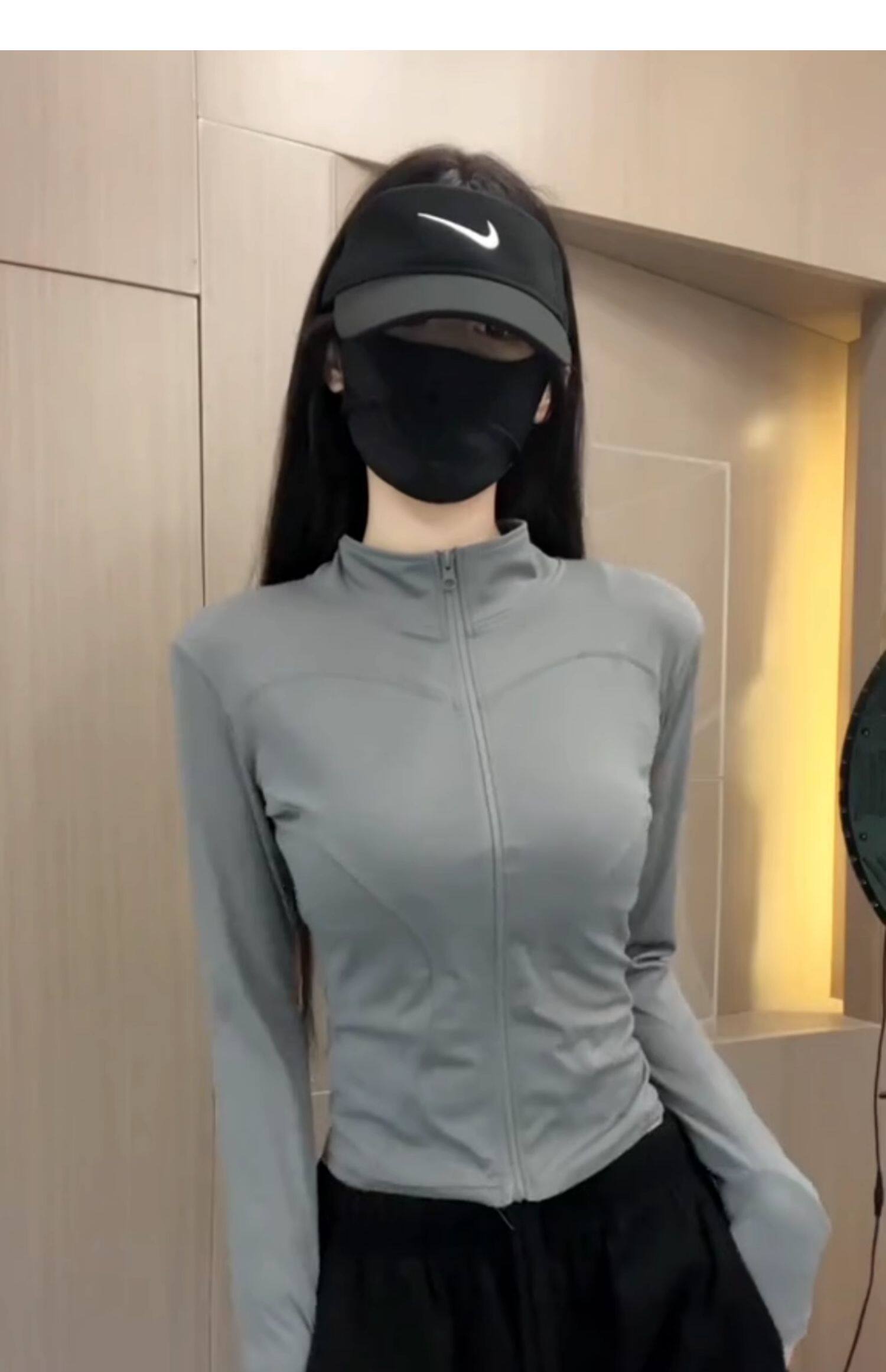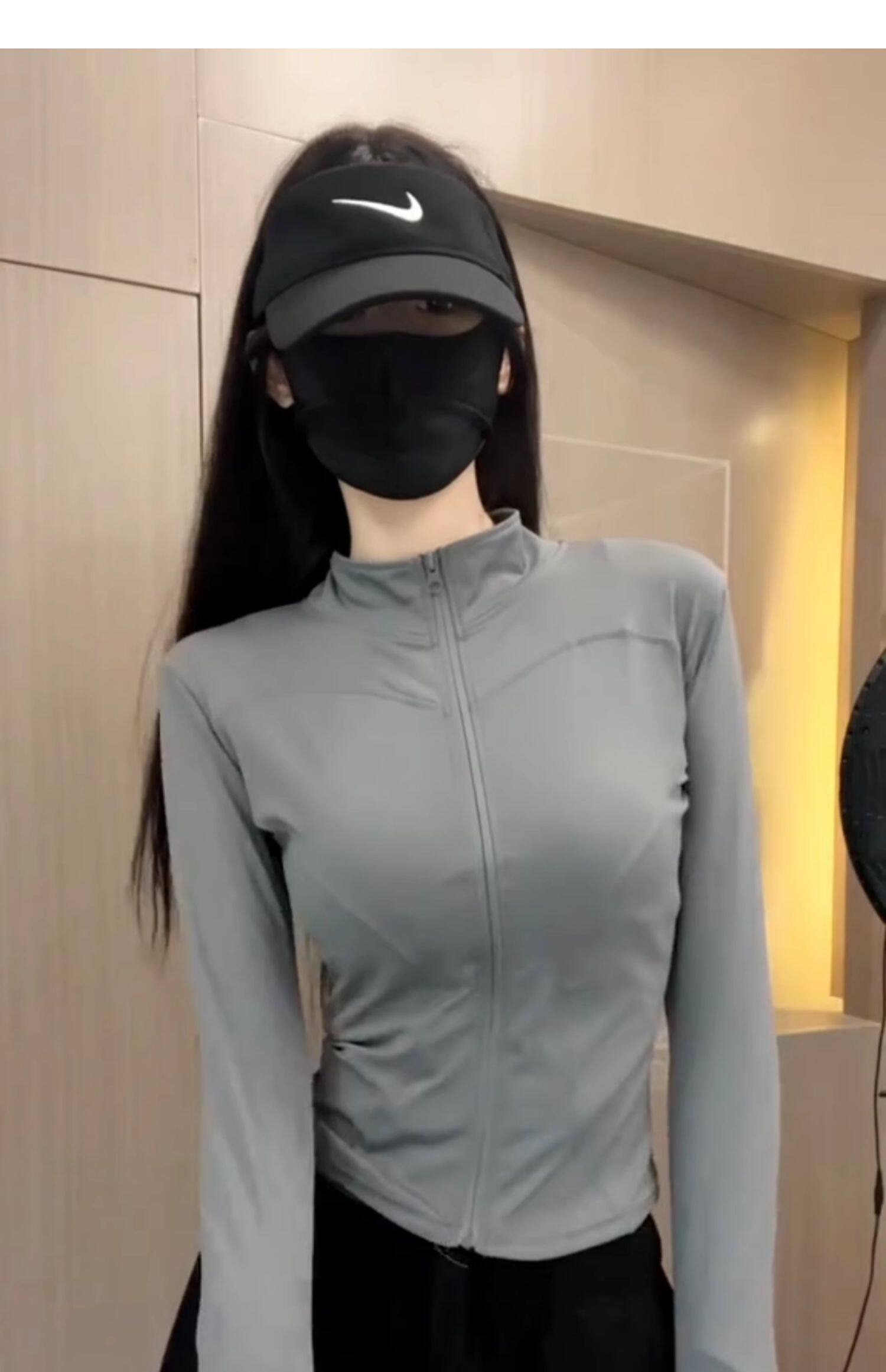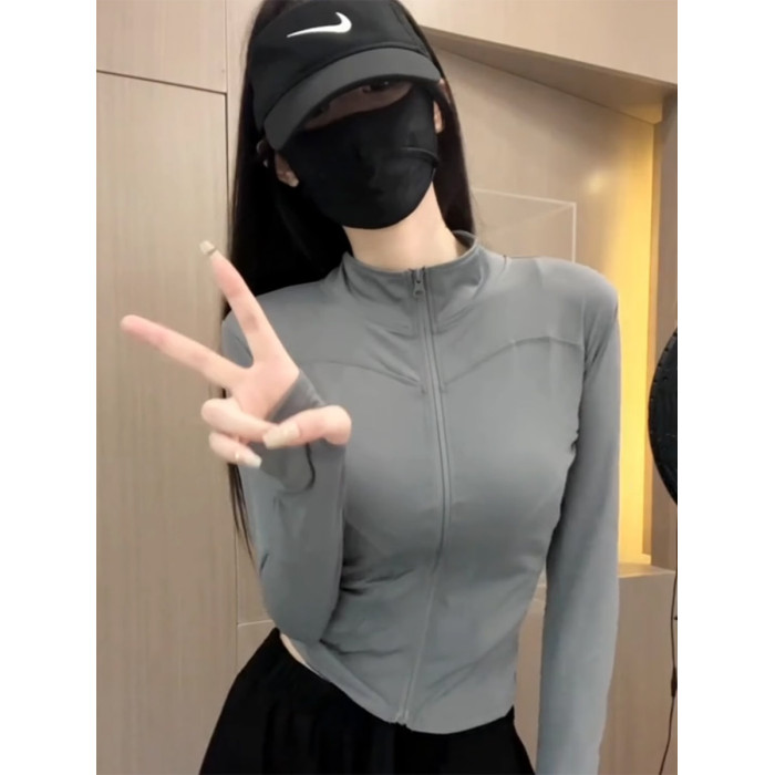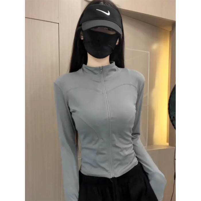 冰絲灰色收腰防曬衣女夏季2025新款薄款修身立領透氣運動瑜珈外套