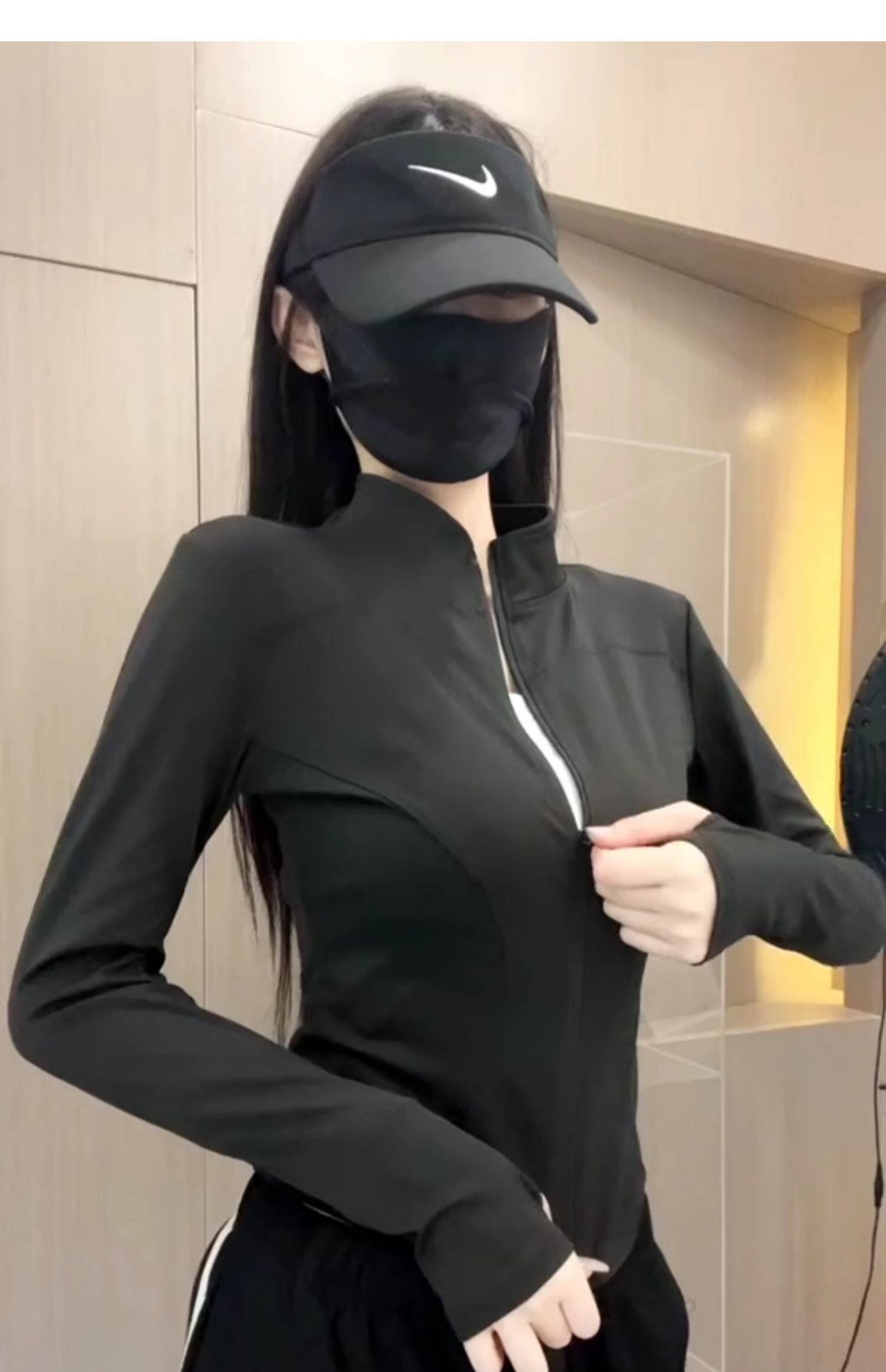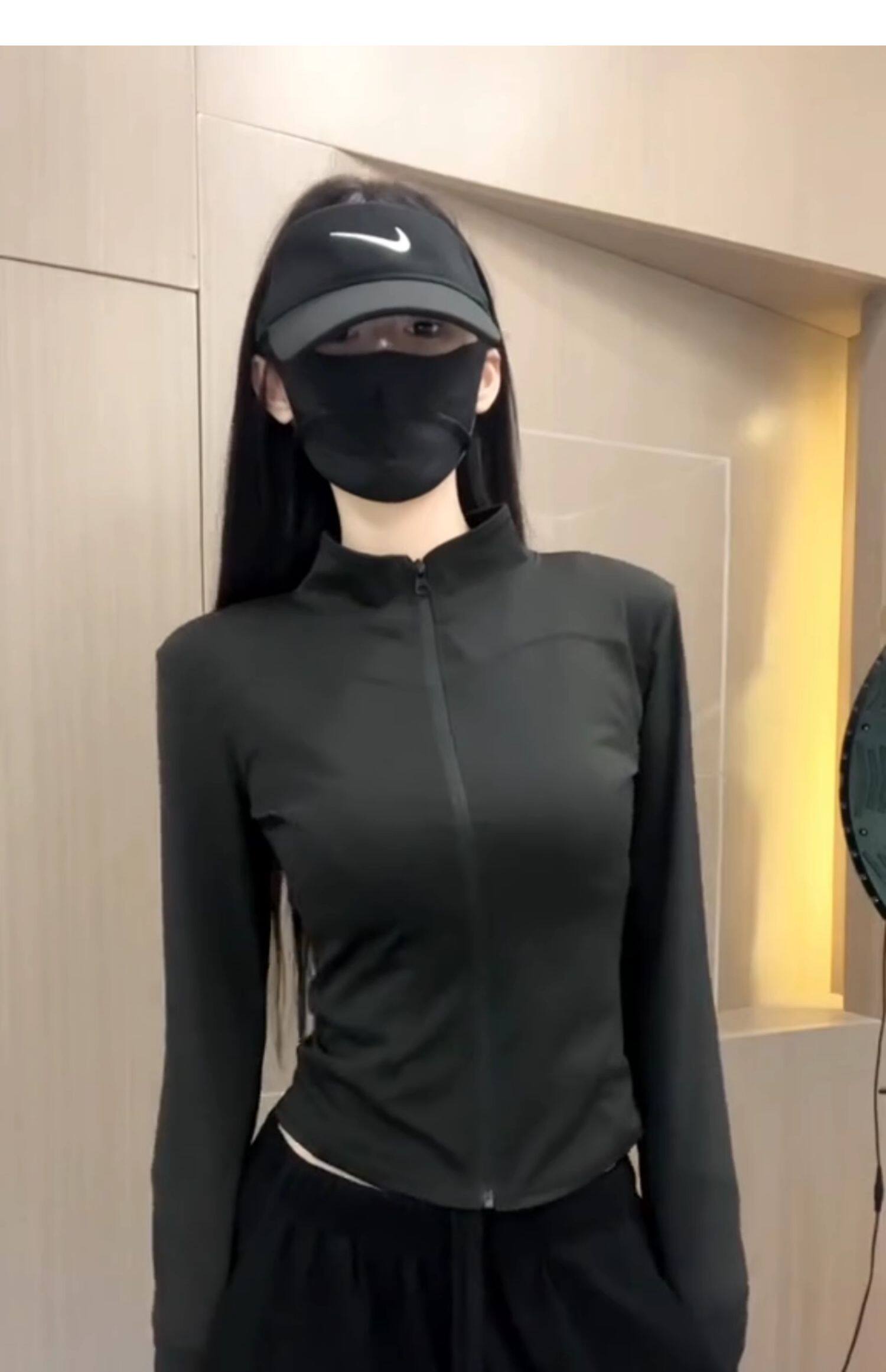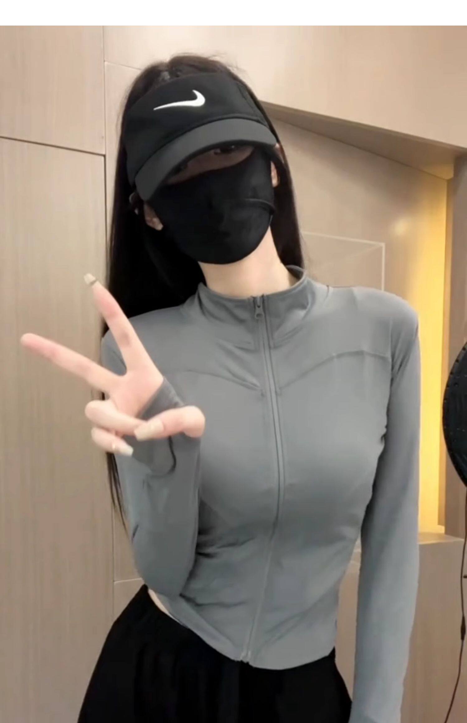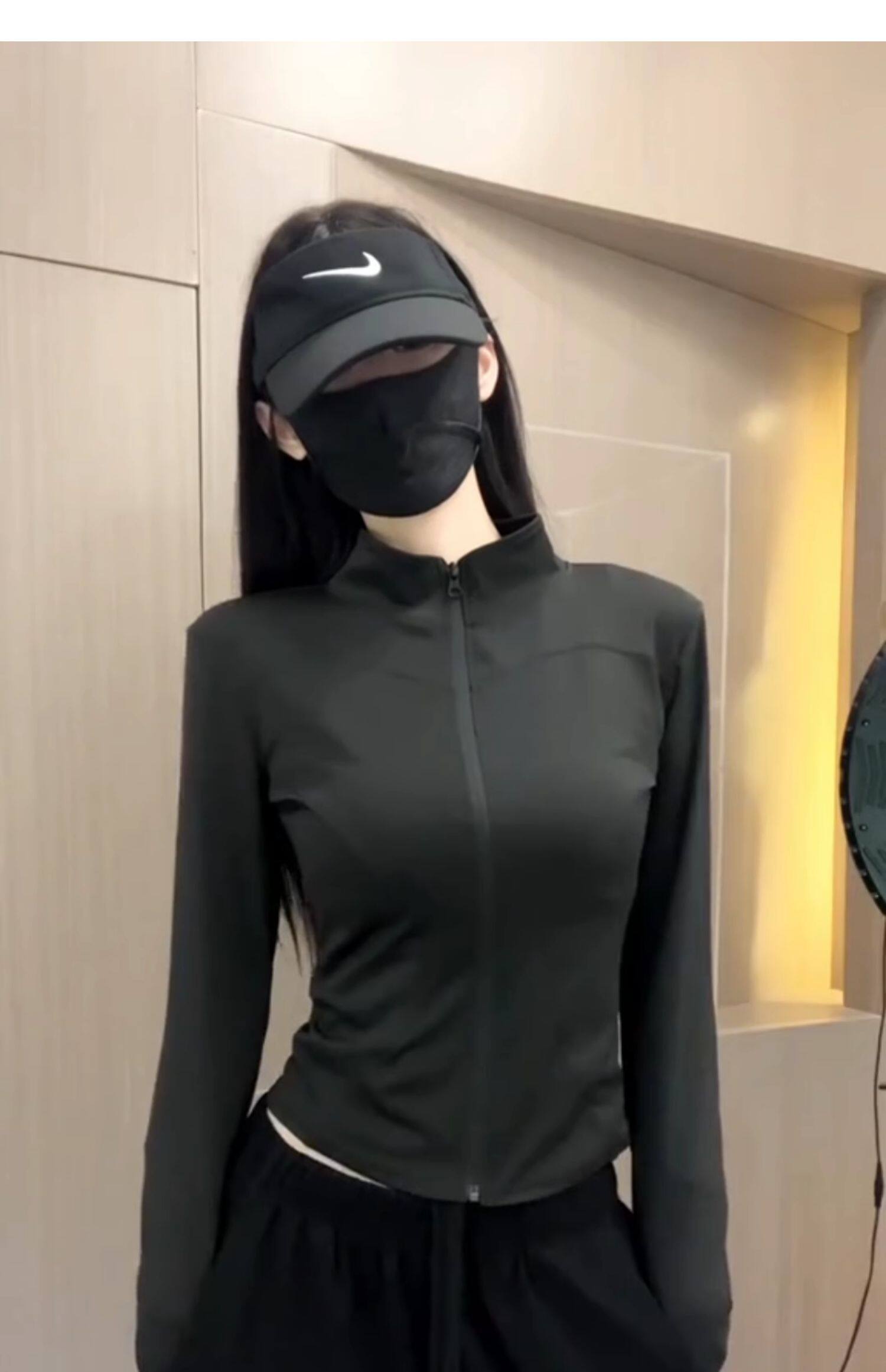 冰絲灰色收腰防曬衣女夏季2025新款薄款修身立領透氣運動瑜珈外套
