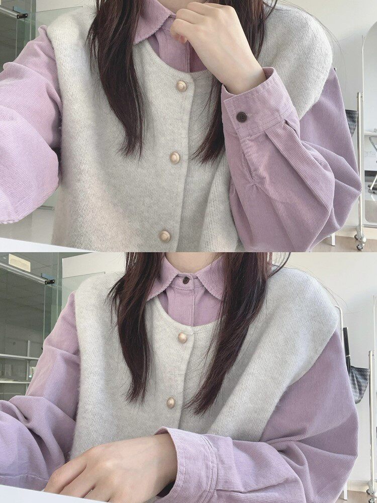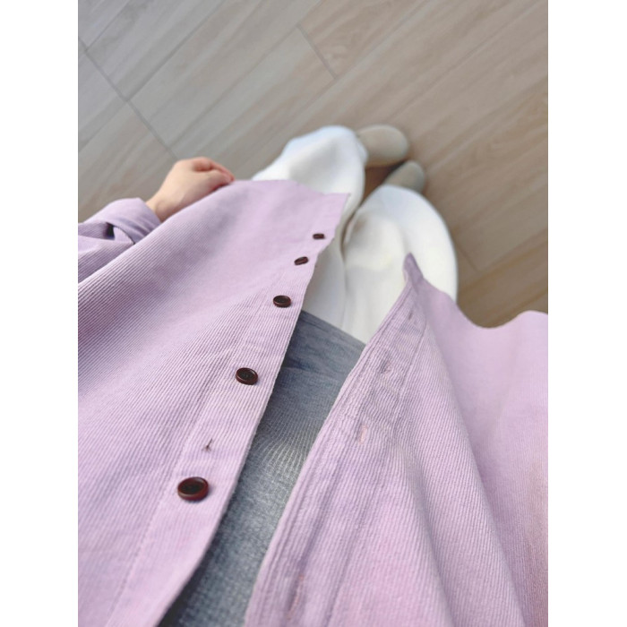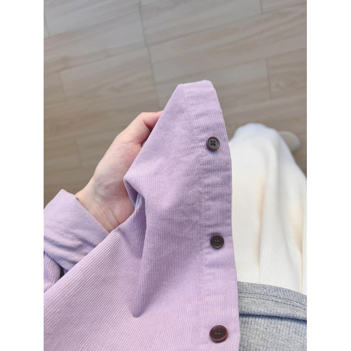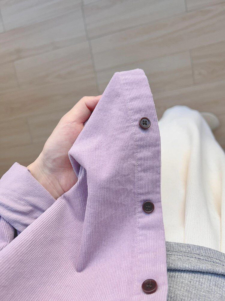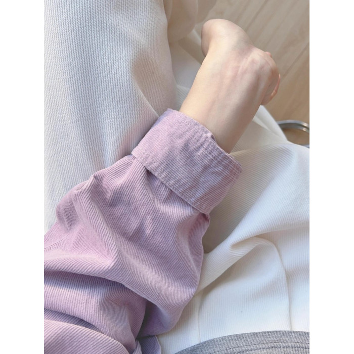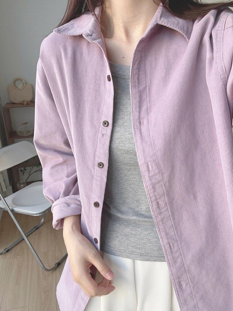 復古巨顯白芋泥紫燈芯絨襯衫女春秋冬寬鬆百搭休閒慵懶感襯衣外套