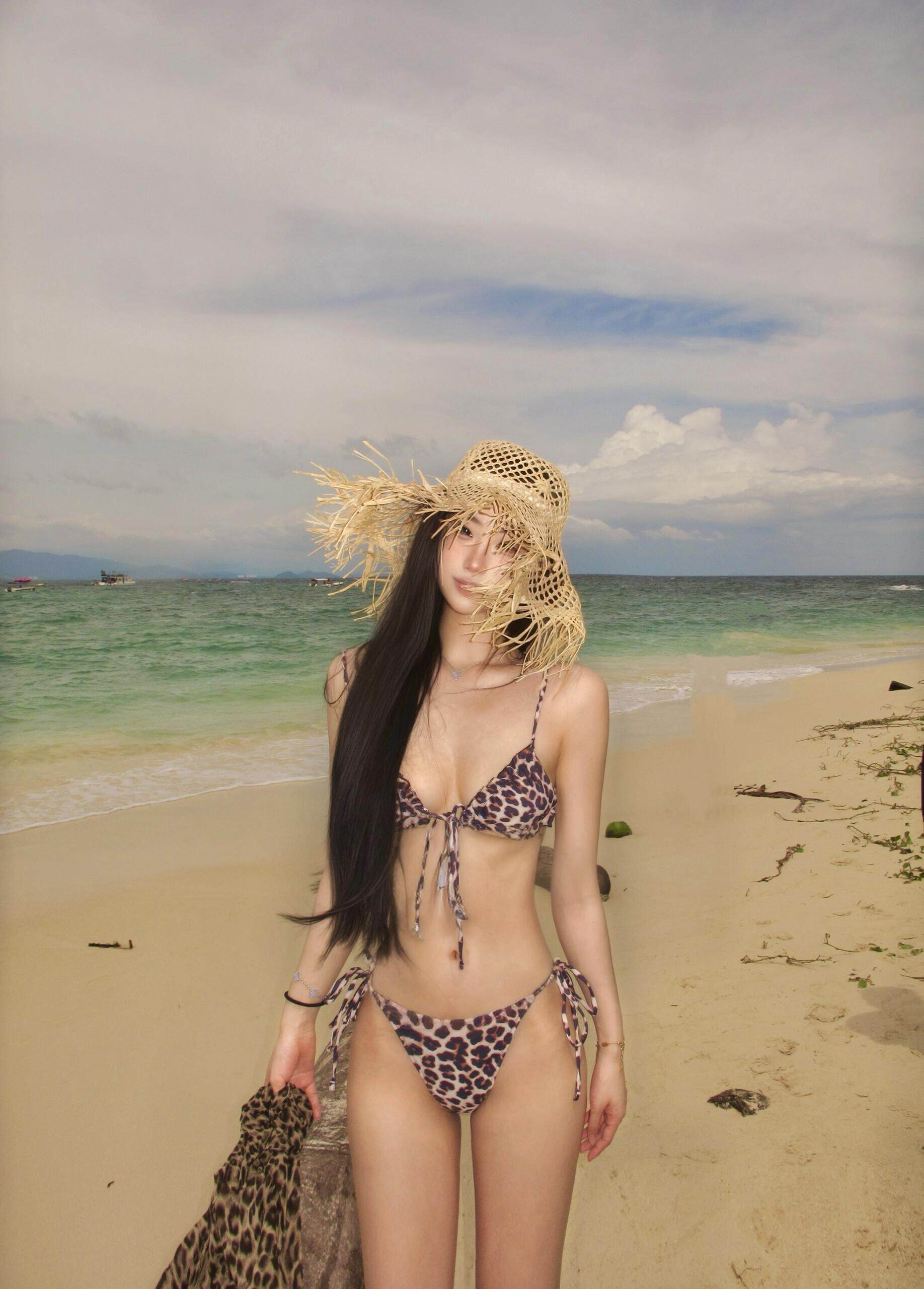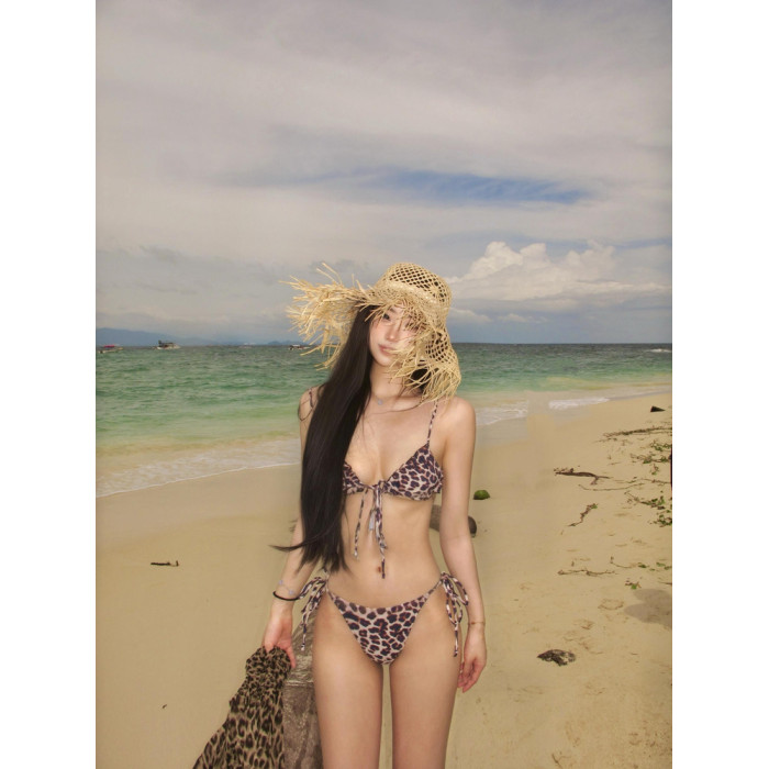 OUTFlT STUDIO 歐美辣妹風套裝女性感海邊度假豹紋比基尼兩件套