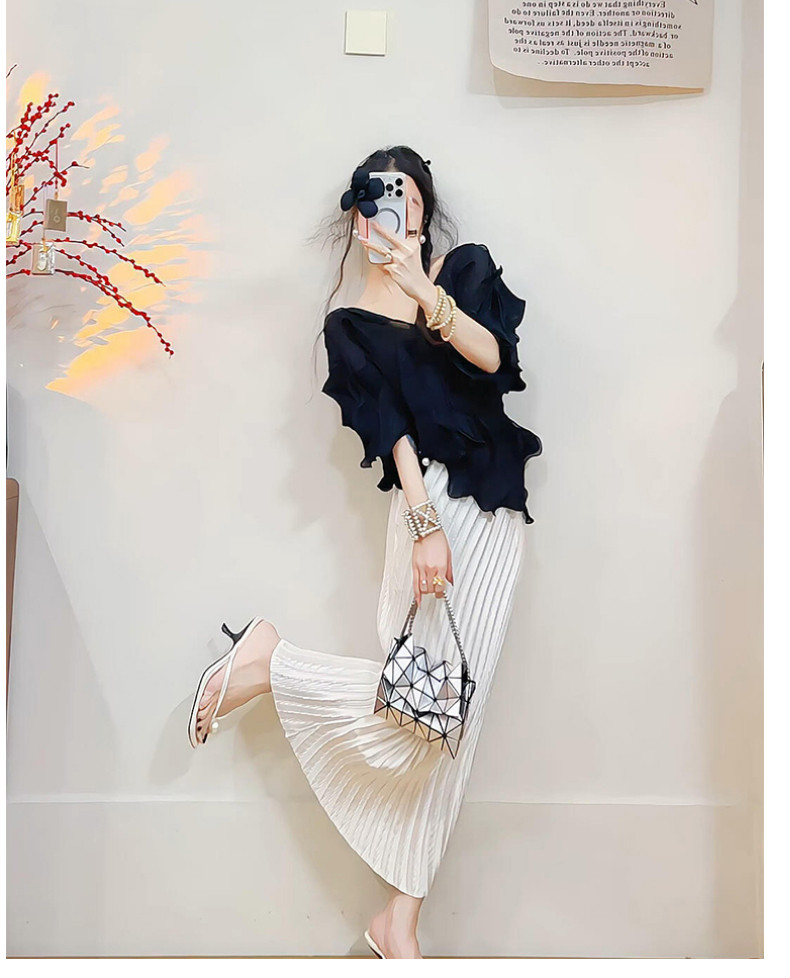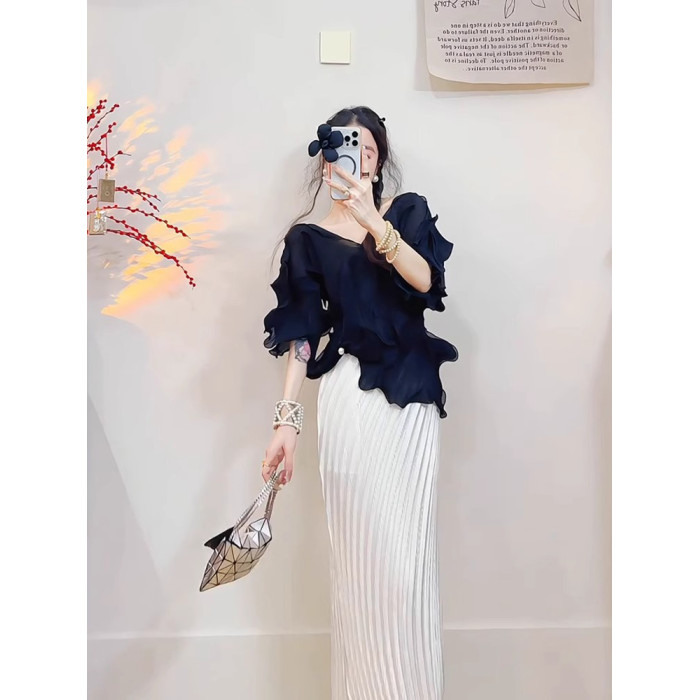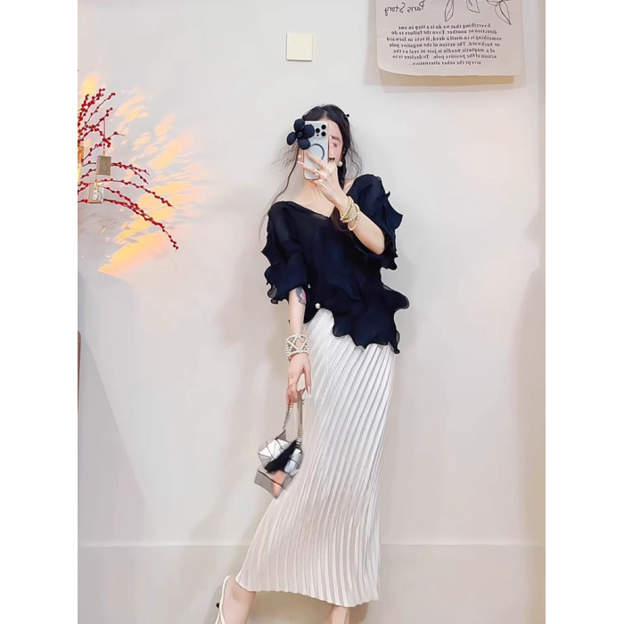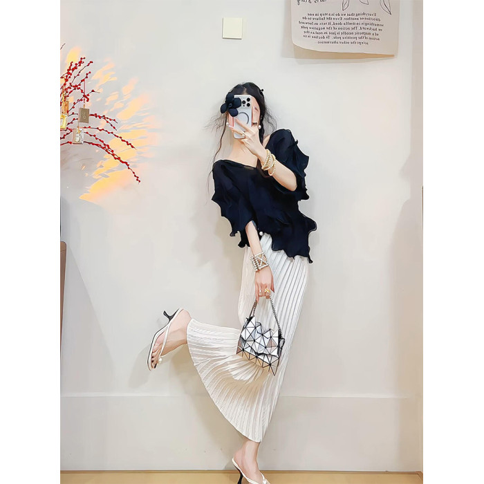 宅家2025夏季新款套裝時尚百搭氣質純色上衣修身顯瘦褶皺半身裙