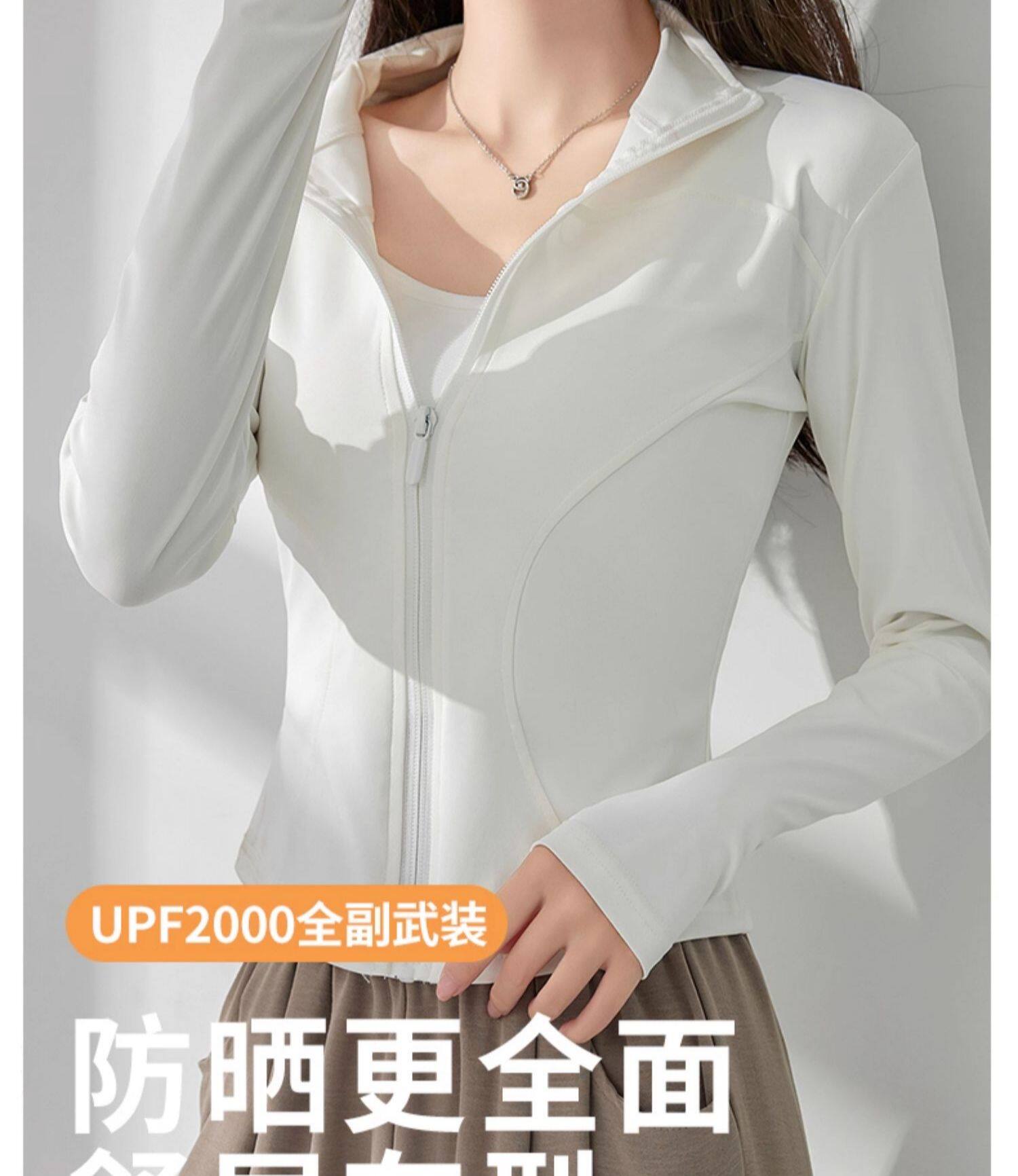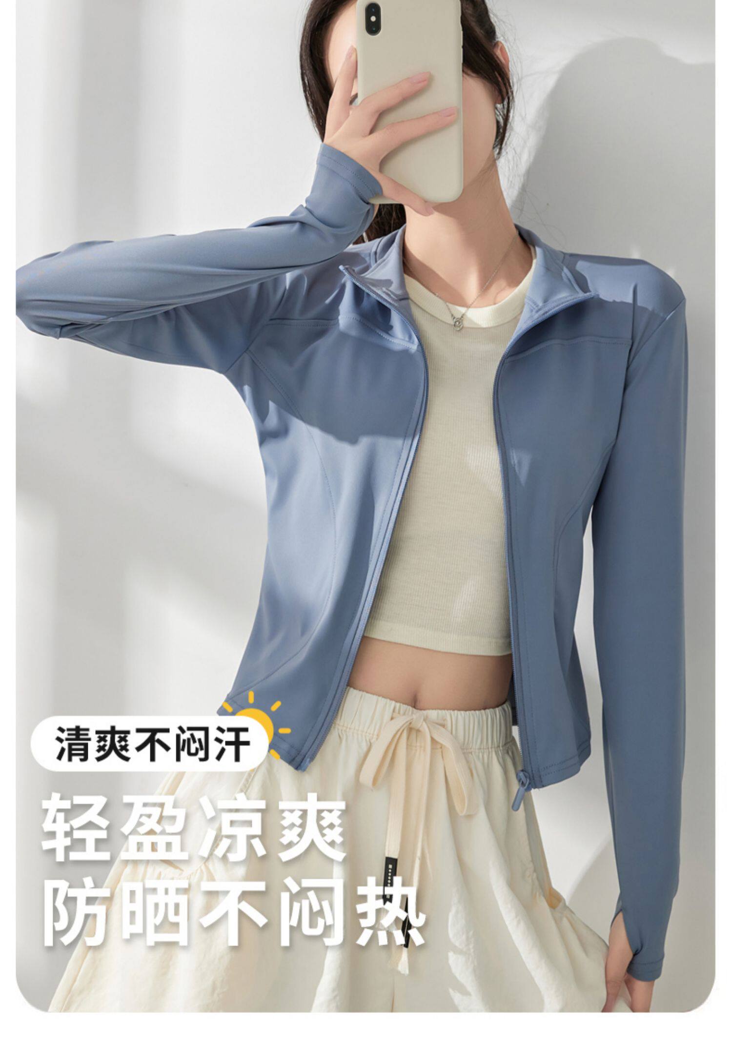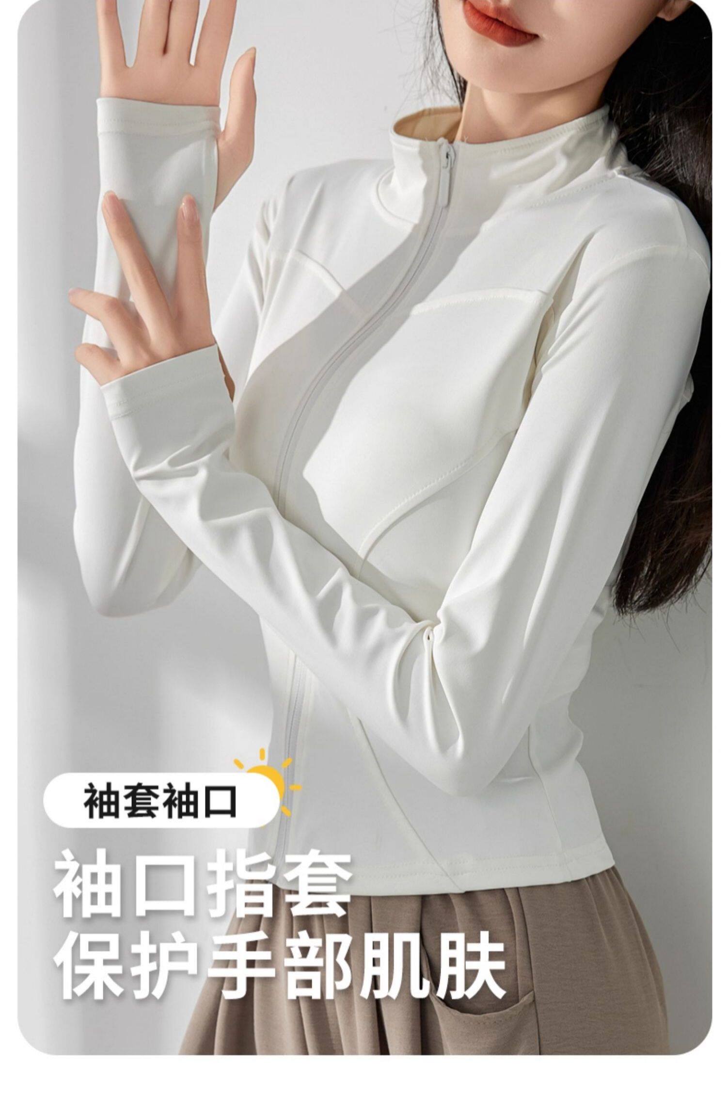 lulu白色冰絲立領防曬衣女2026夏季薄防紫外線修身開衫外套瑜珈服