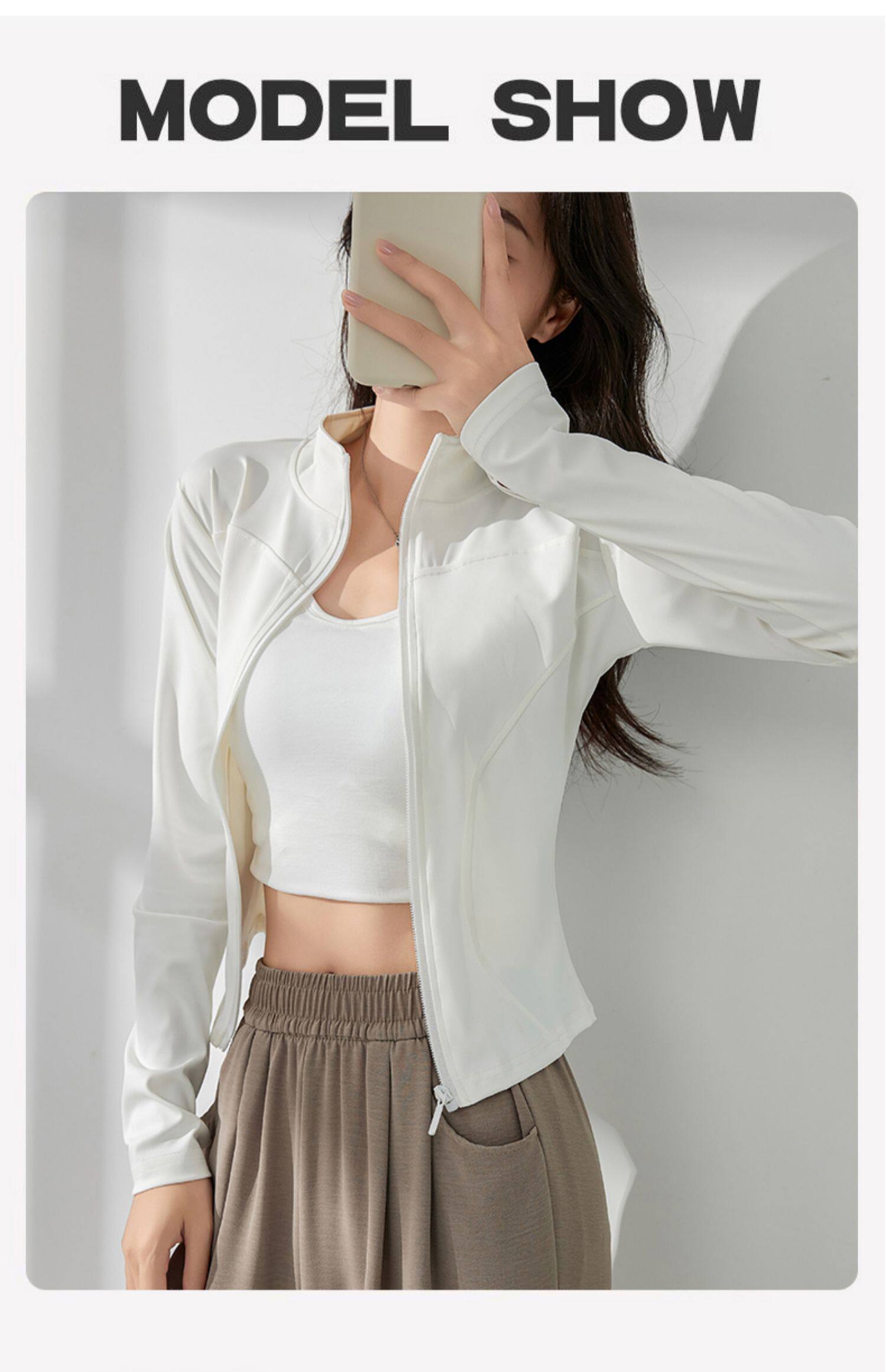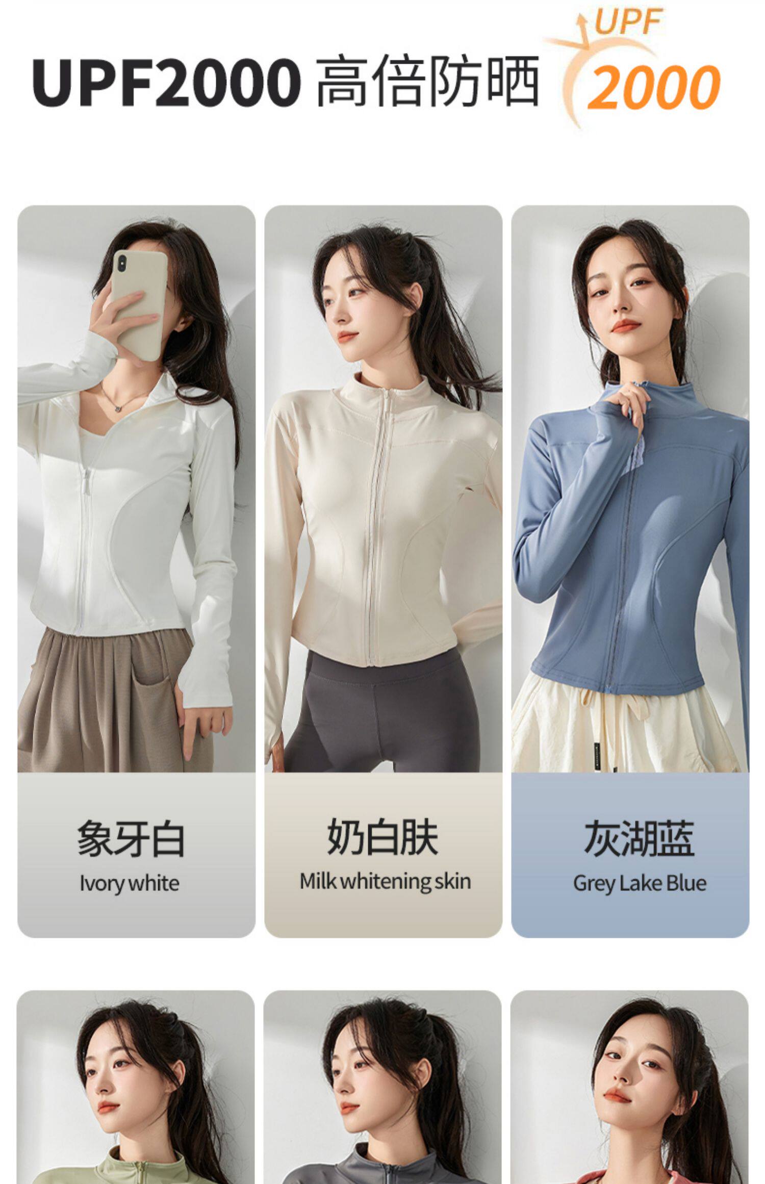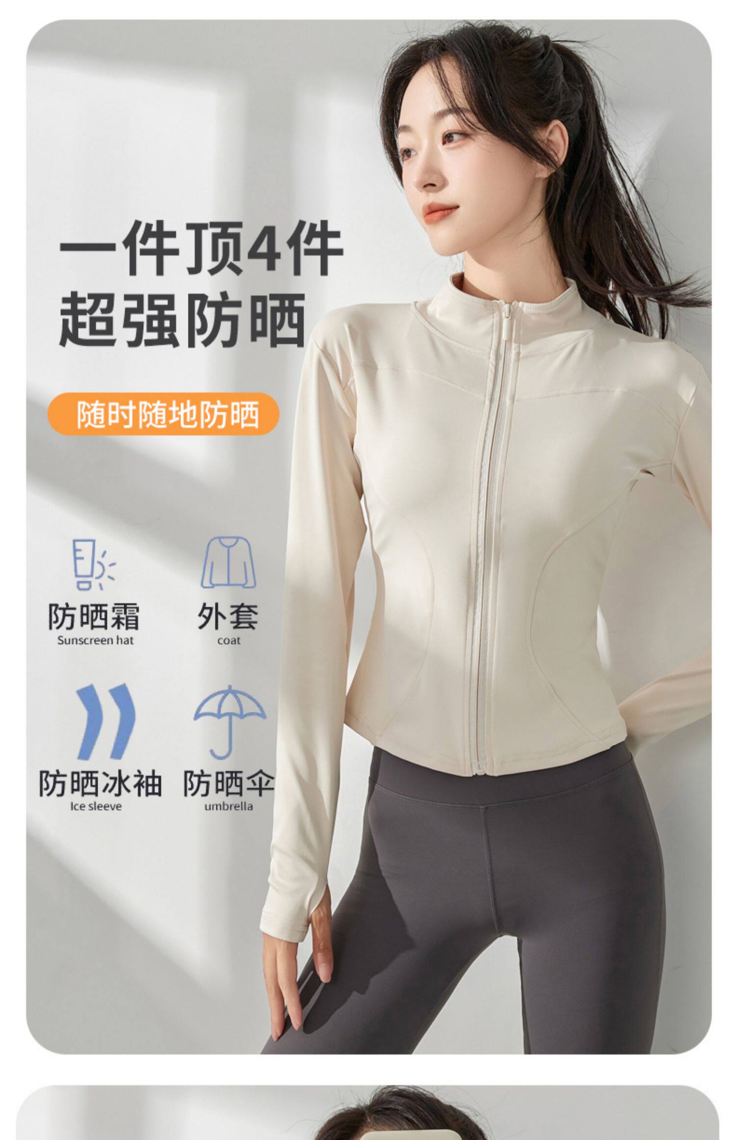 lulu白色冰絲立領防曬衣女2026夏季薄防紫外線修身開衫外套瑜珈服