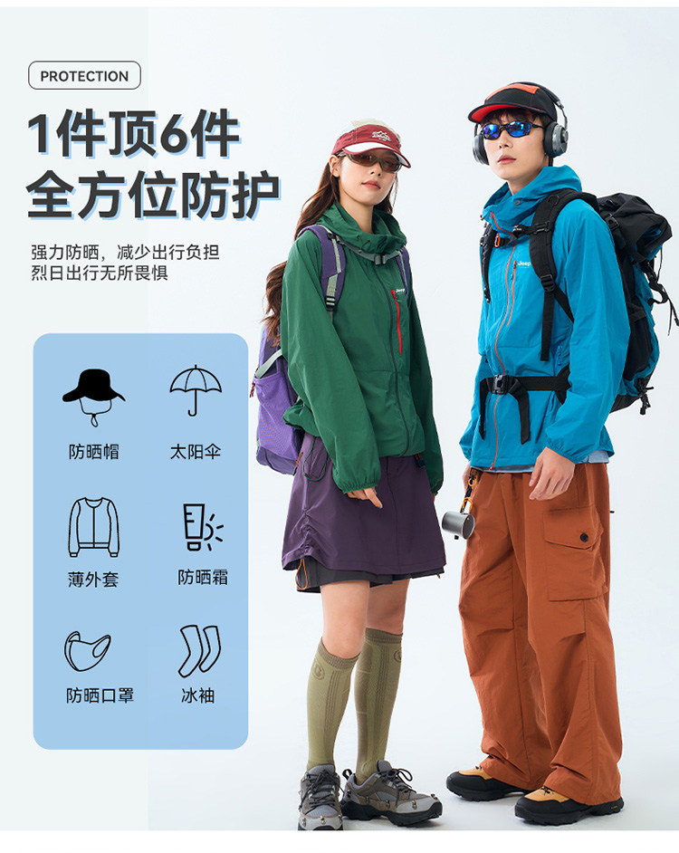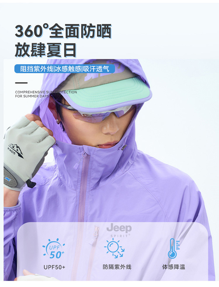 JEEP冰絲防曬衣女夏季2025新款戶外防紫外線輕薄外套UPF50+防曬服