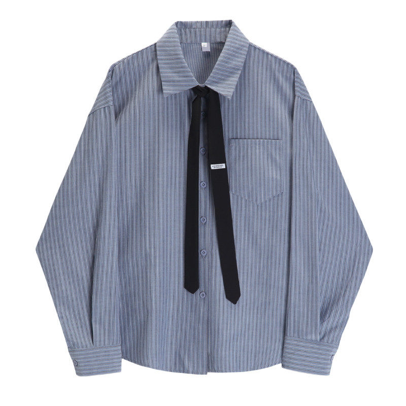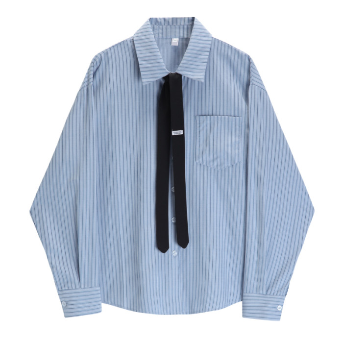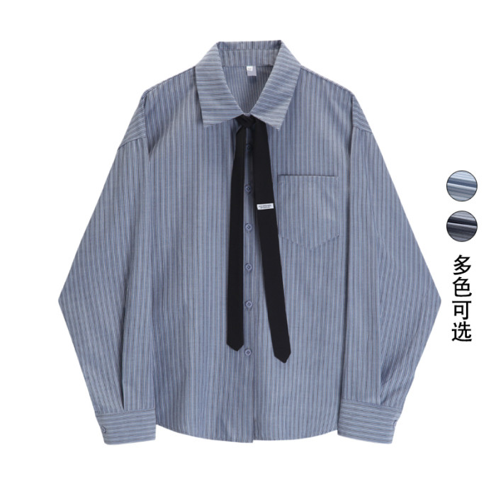 條紋襯衫女2025春秋新款設計感小衆寬鬆百搭港風曡穿內搭chic襯衣