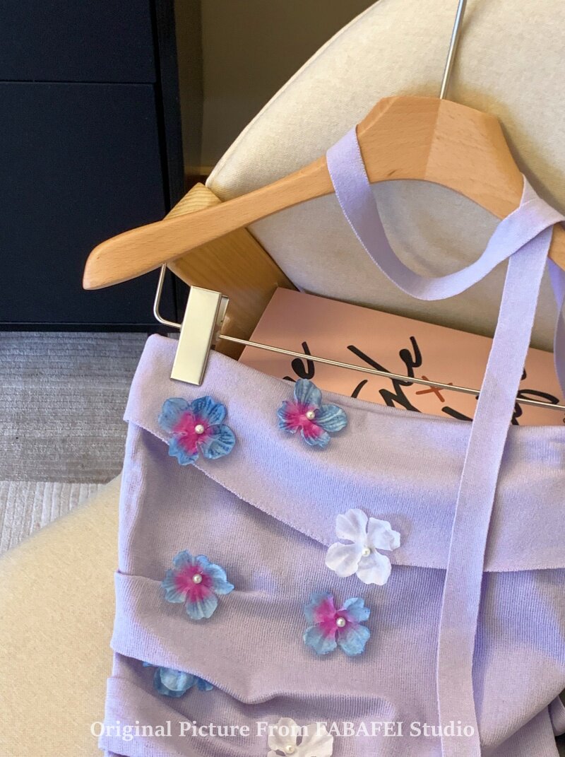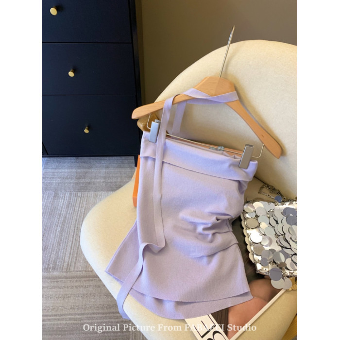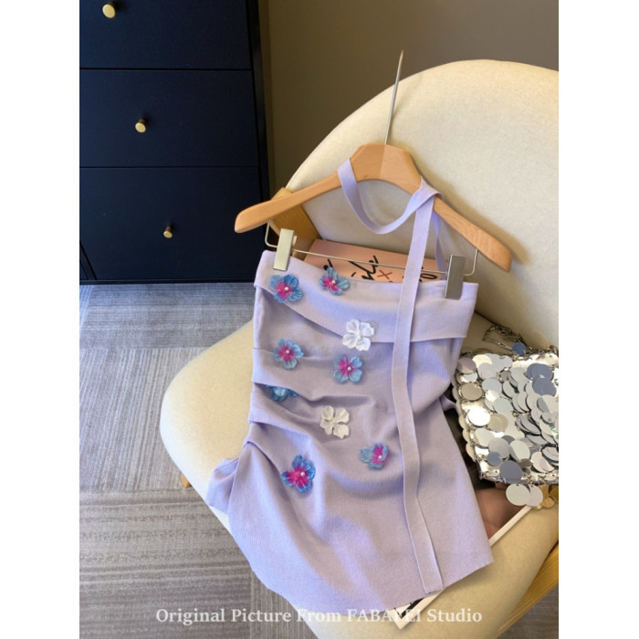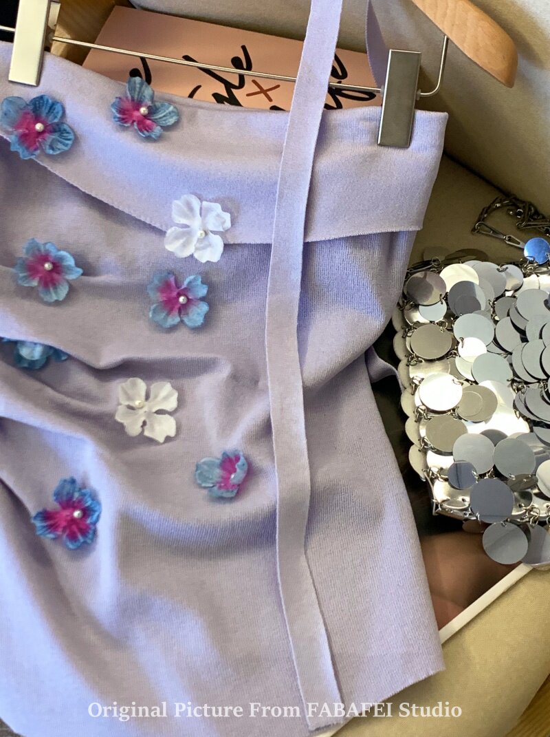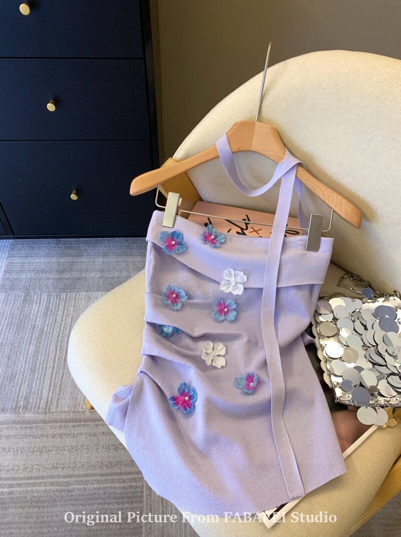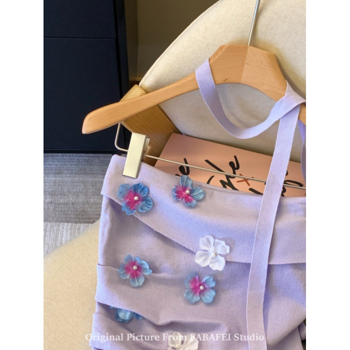 自畱爆款推薦~紫色立體花朵飄帶抹胸女夏2026辣妹無肩帶背心上衣