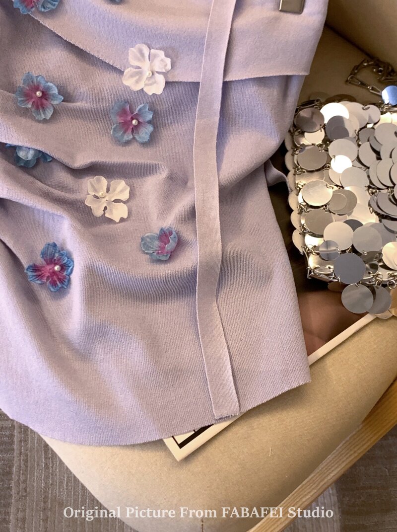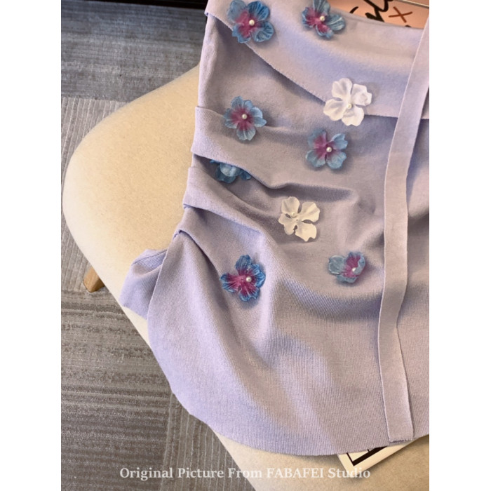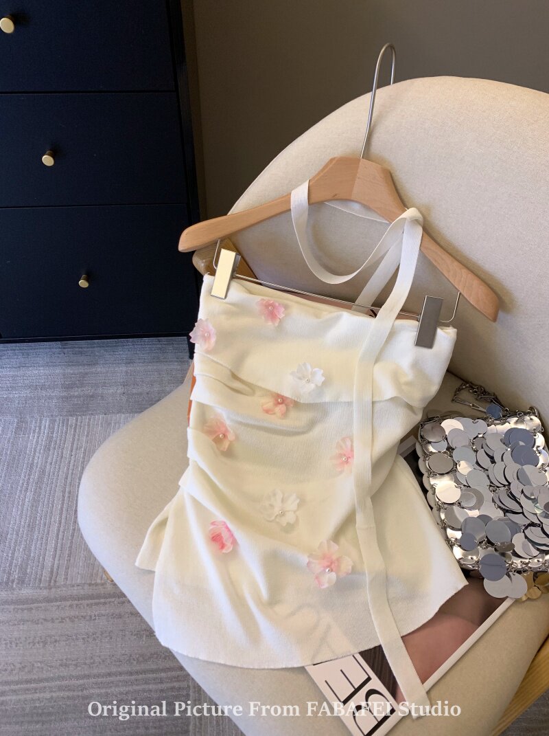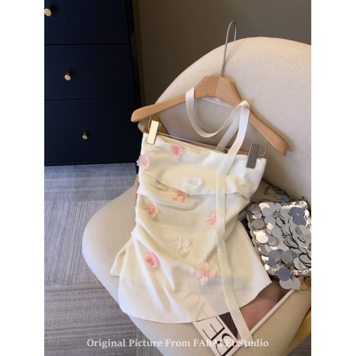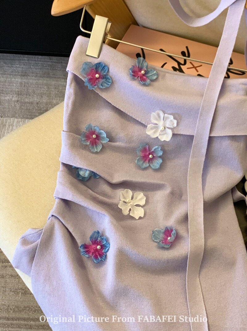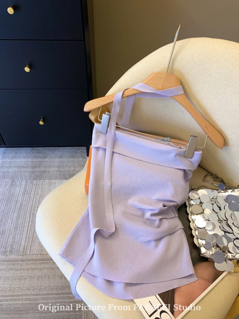 自畱爆款推薦~紫色立體花朵飄帶抹胸女夏2026辣妹無肩帶背心上衣