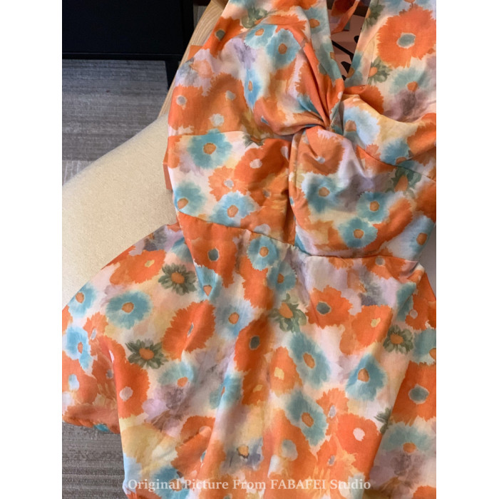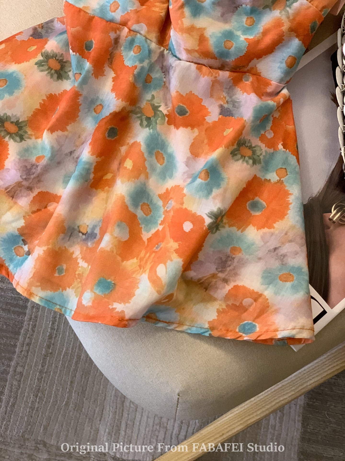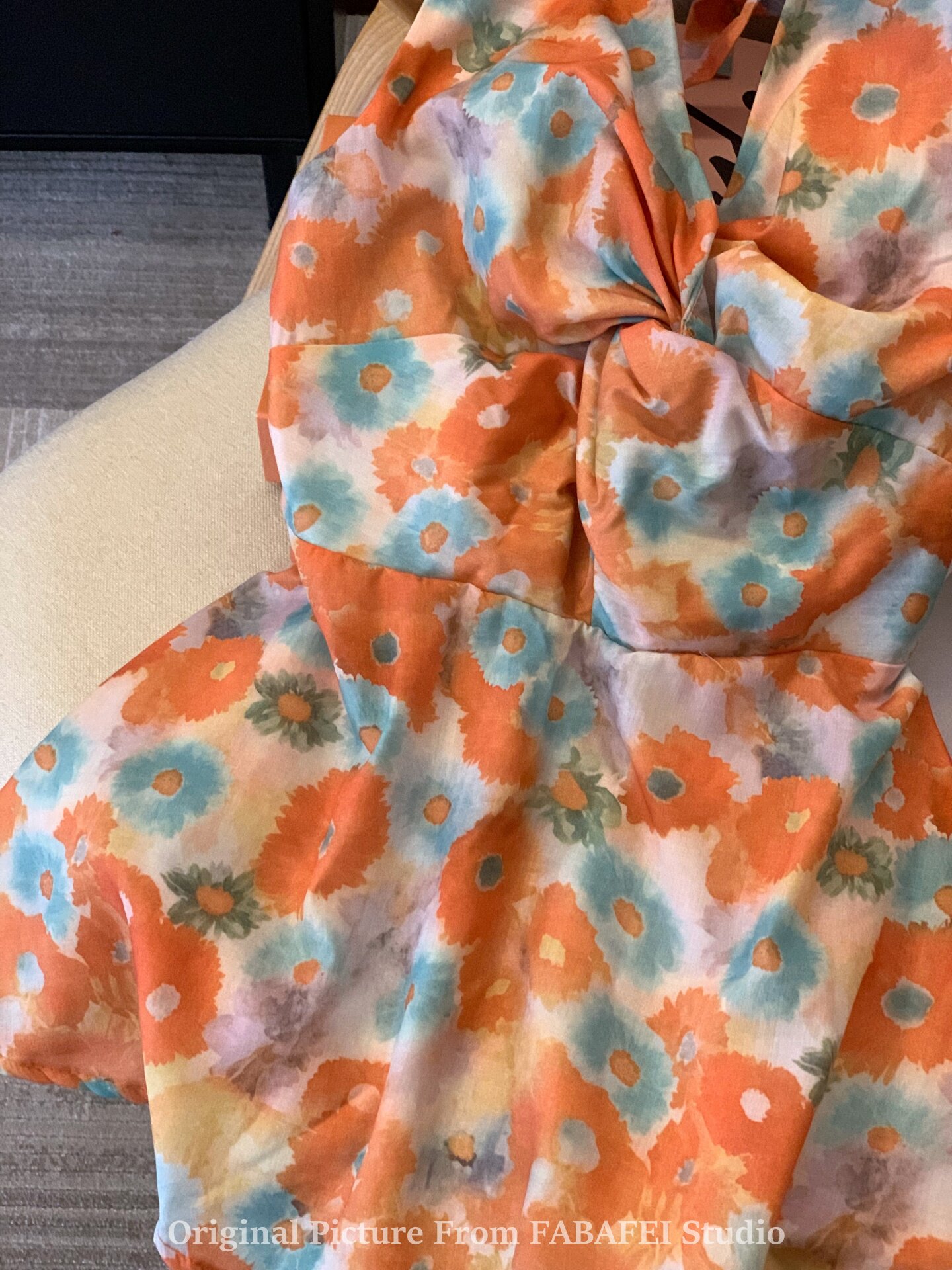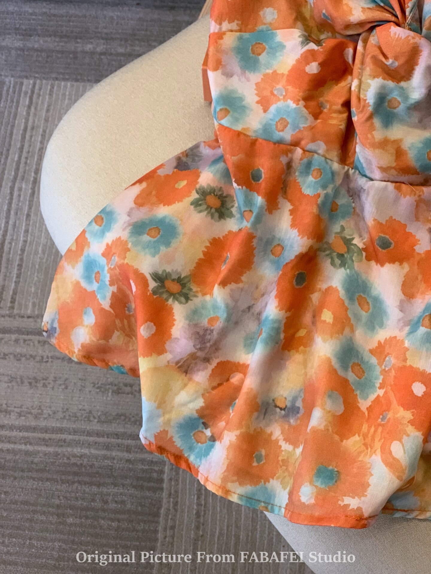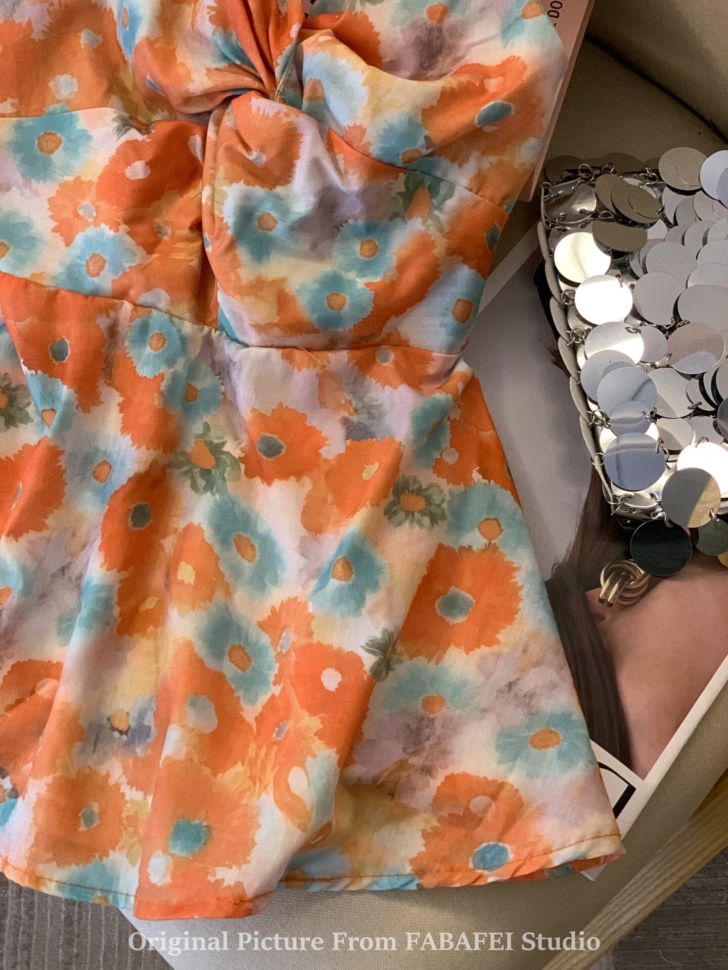 專櫃撤廻剪標音樂節多巴胺碎花背心襯衫女夏季設計感扭結掛脖上衣