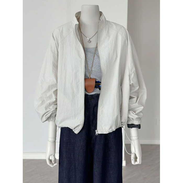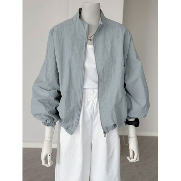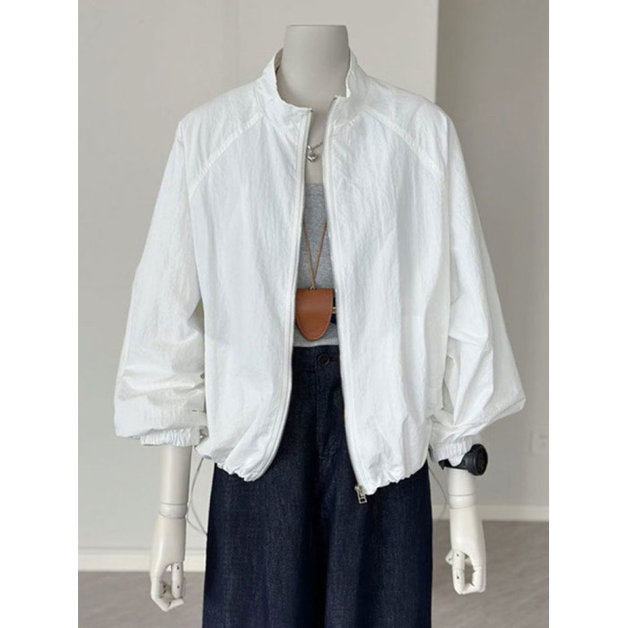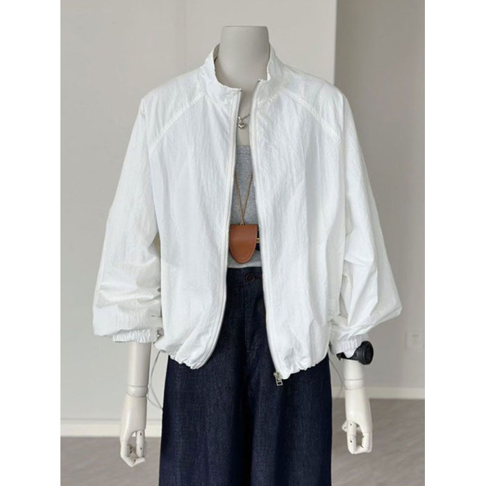 2025夏季新款時尚百搭防曬衣女寬鬆顯瘦短款外套薄款運動立領上衣