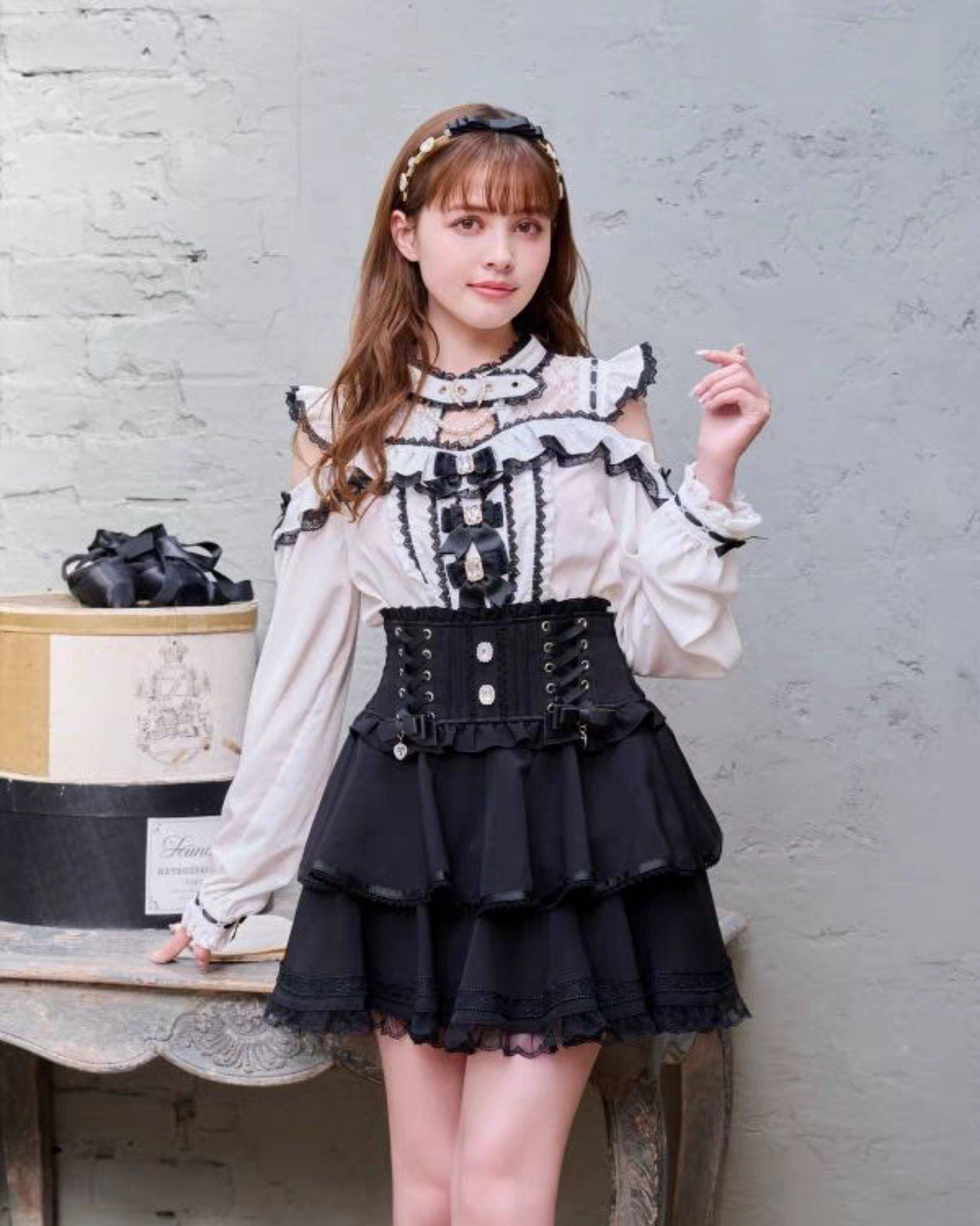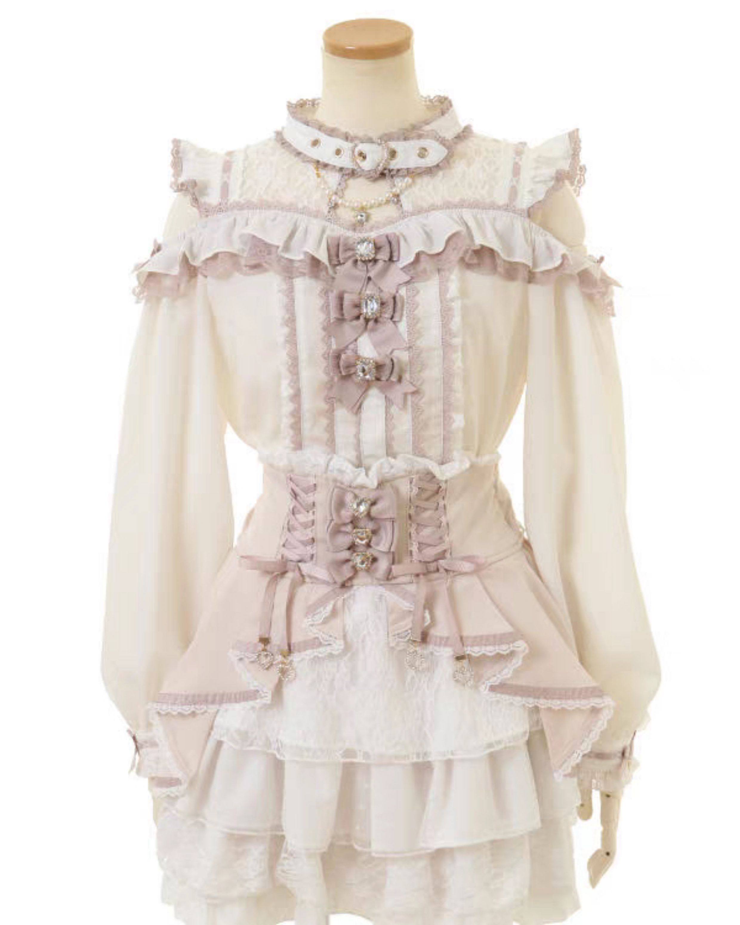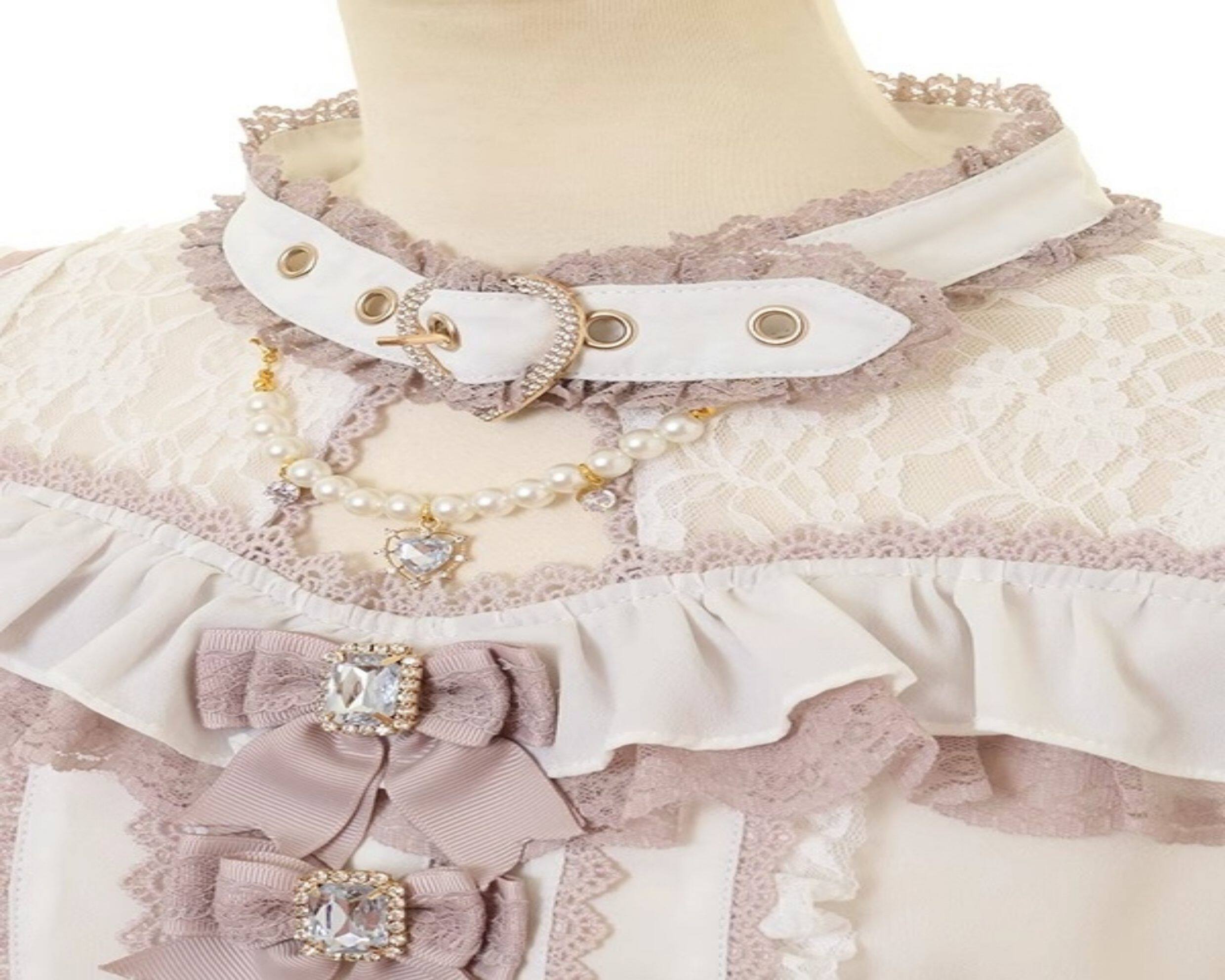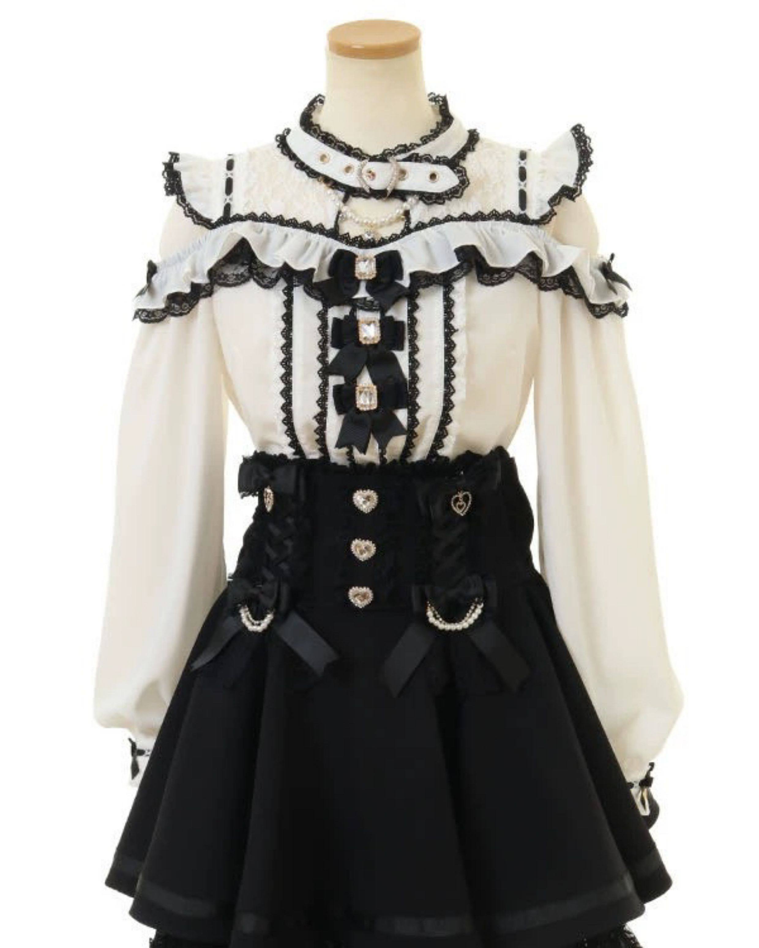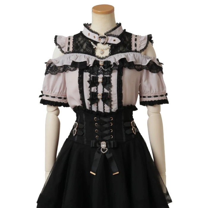 日系量産型顯高顯瘦顯白項圈領露肩蕾絲甜美蝴蝶結重工學院風襯衫