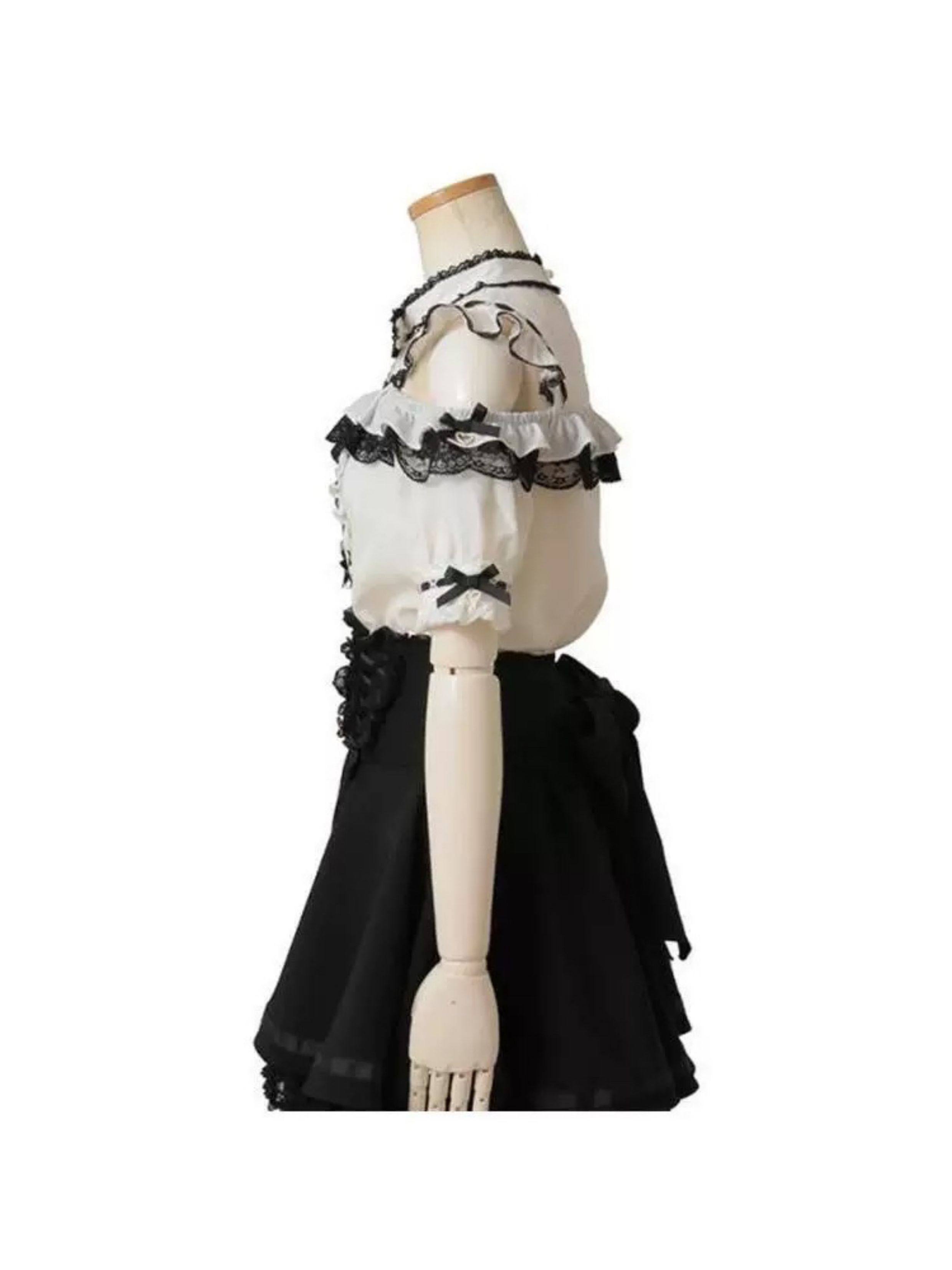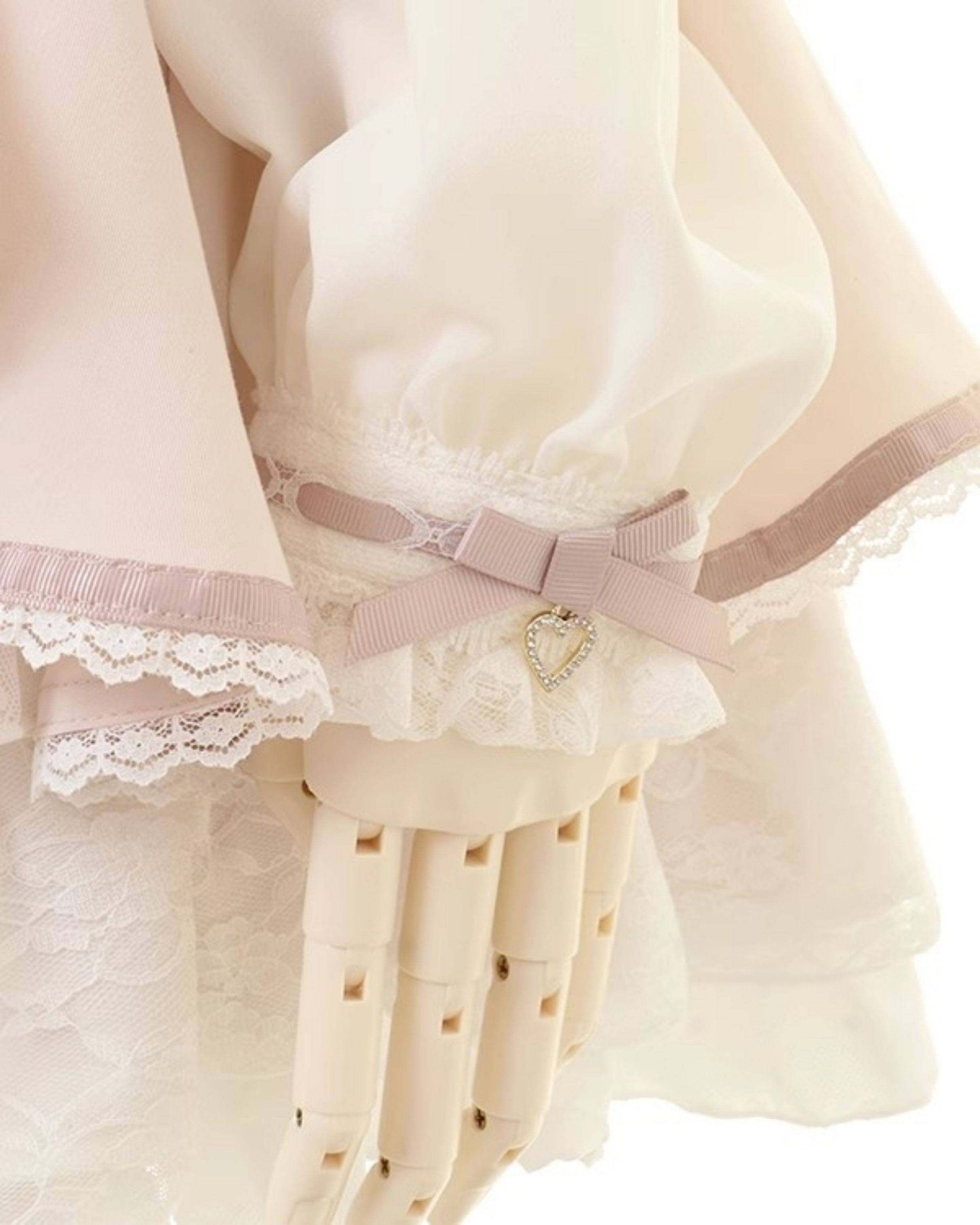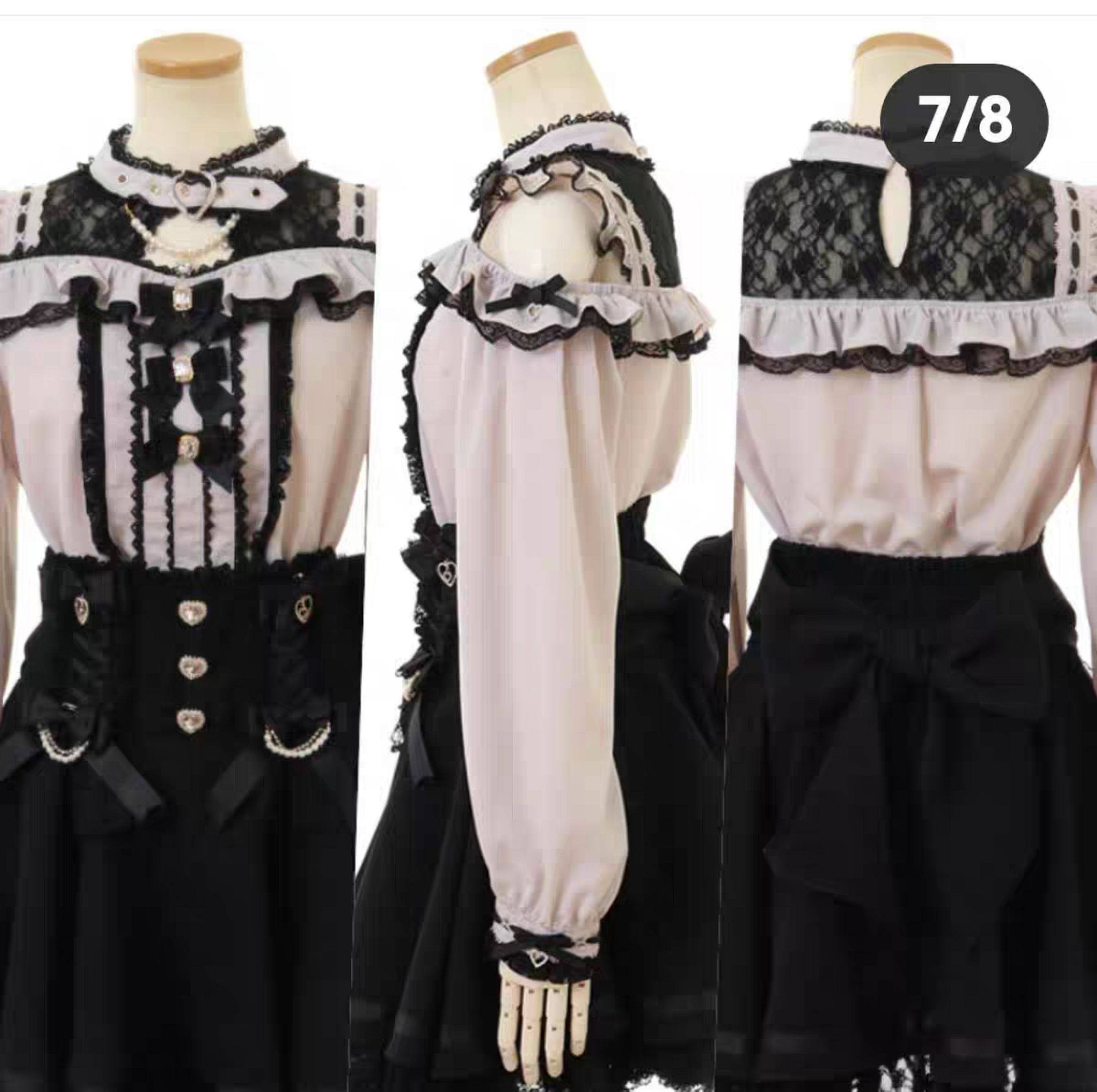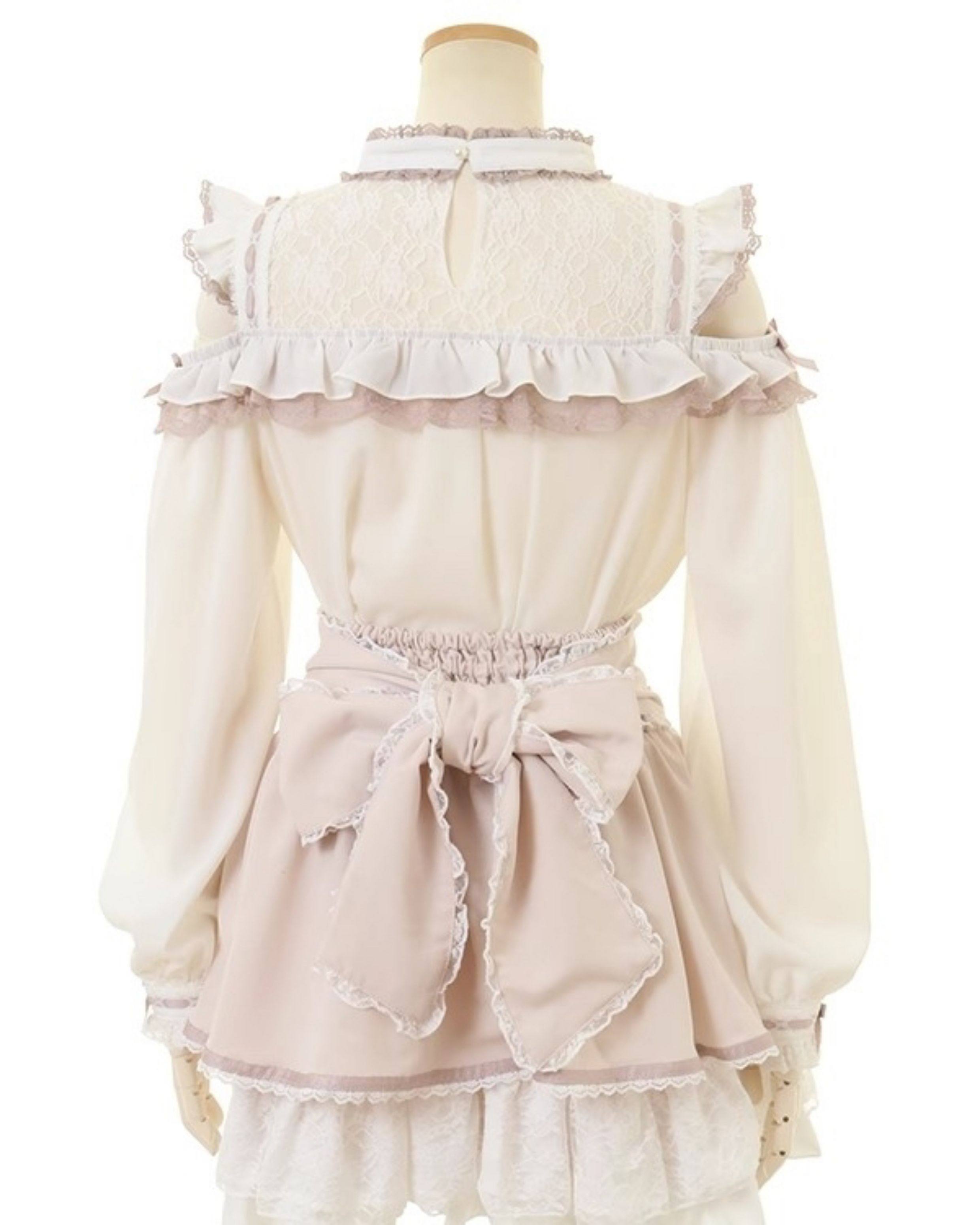 日系量産型顯高顯瘦顯白項圈領露肩蕾絲甜美蝴蝶結重工學院風襯衫