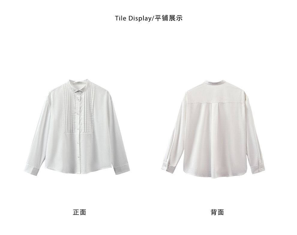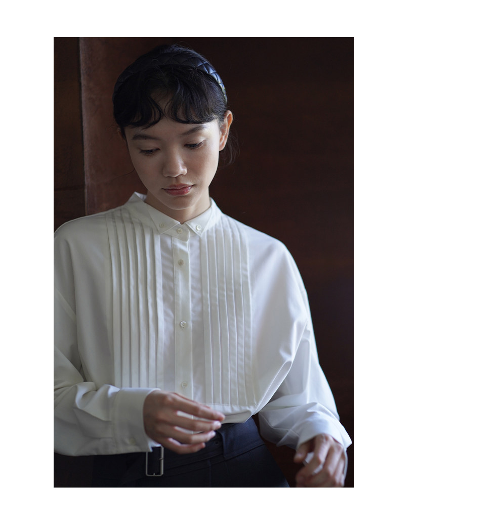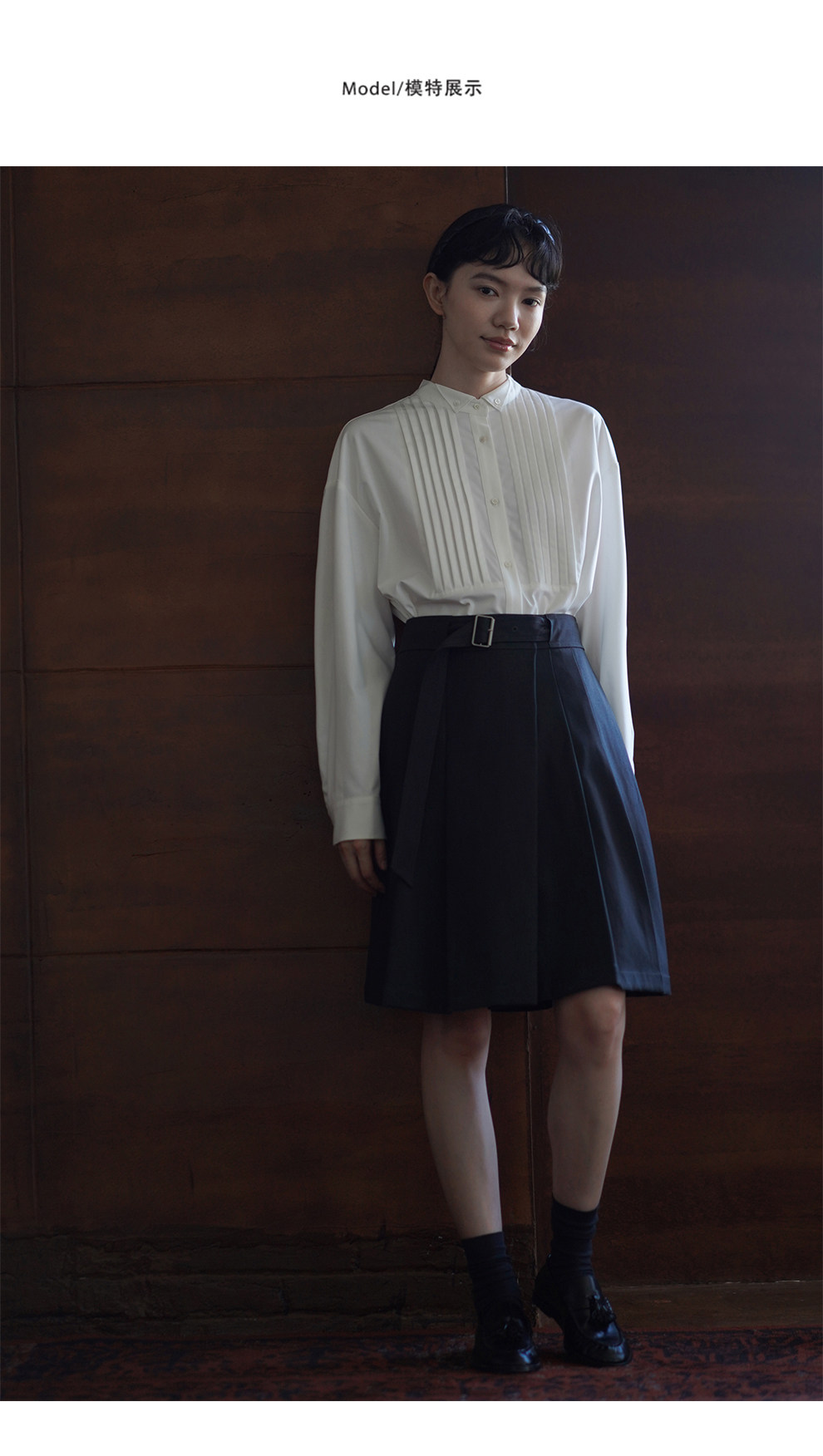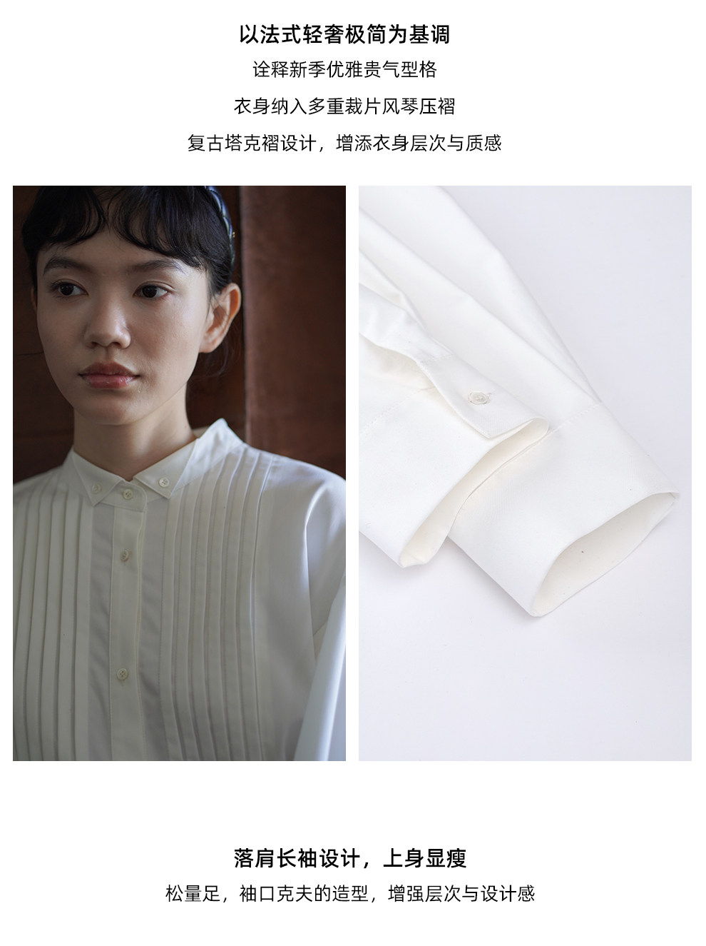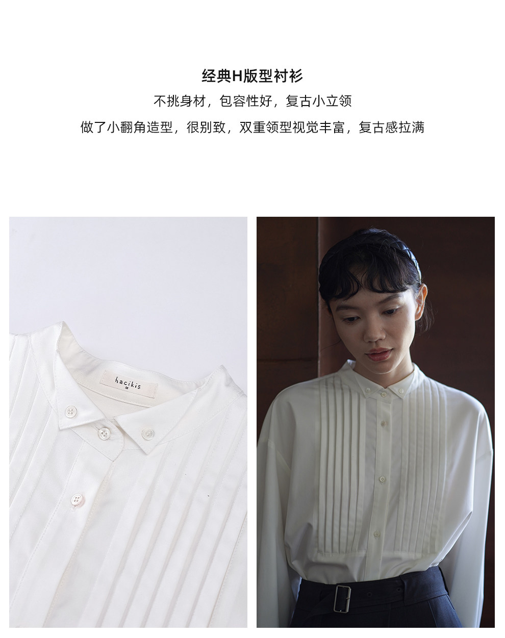 哈齒小姐 復古廻潮小繙領精緻塔克線門襟經典H版型顯瘦通勤襯衫女
