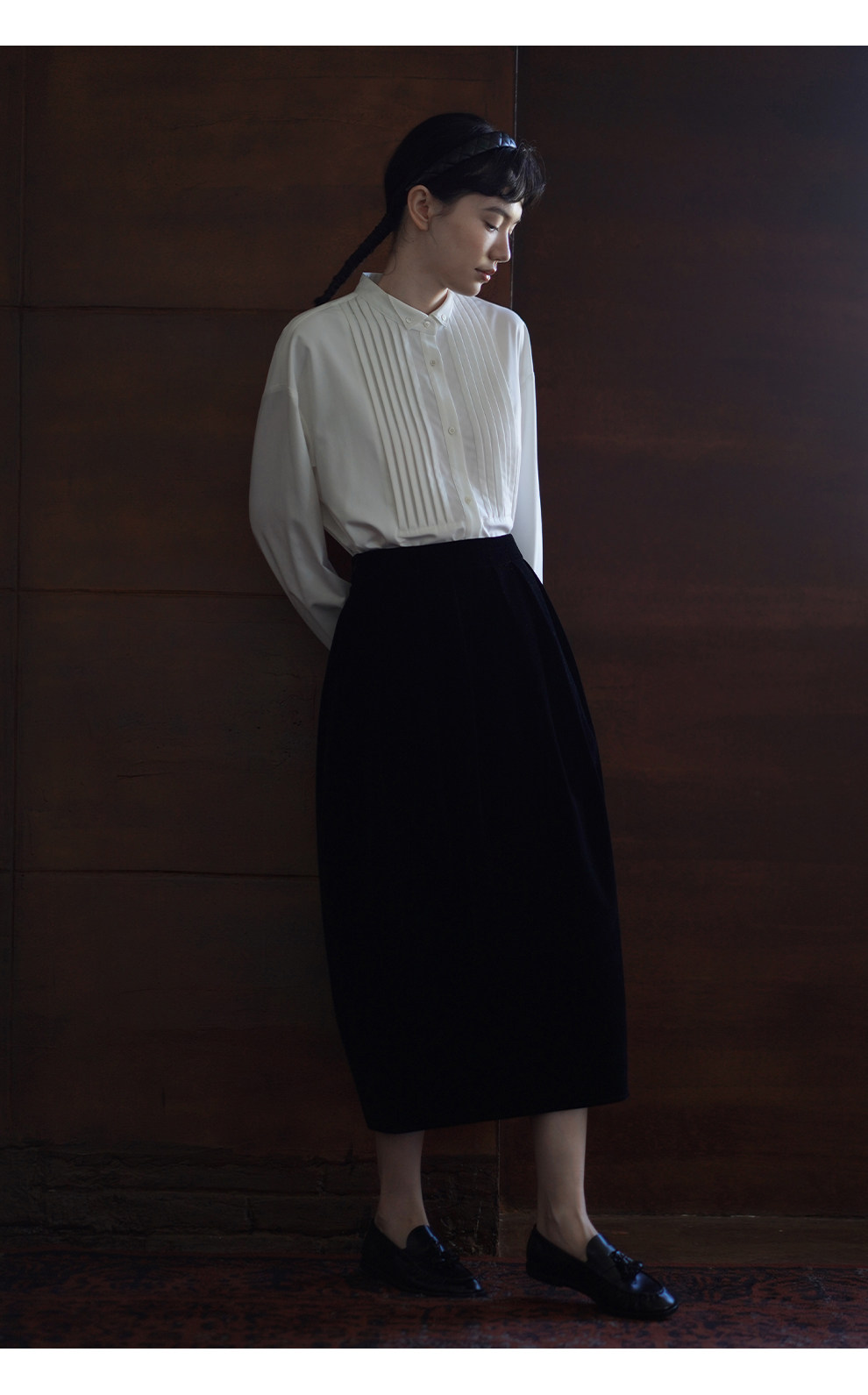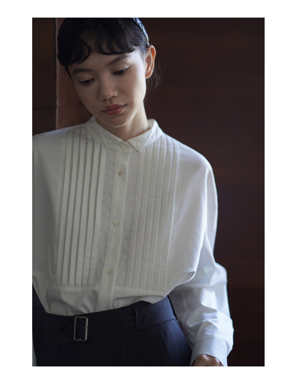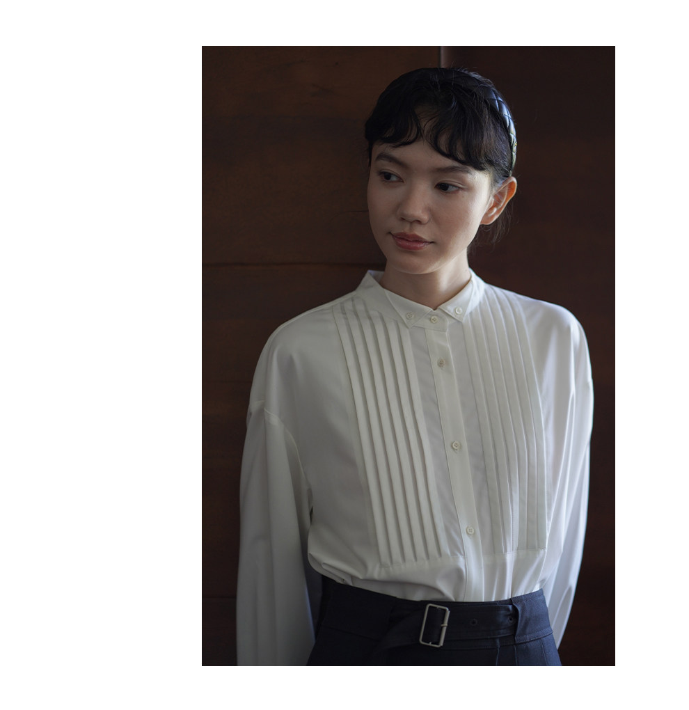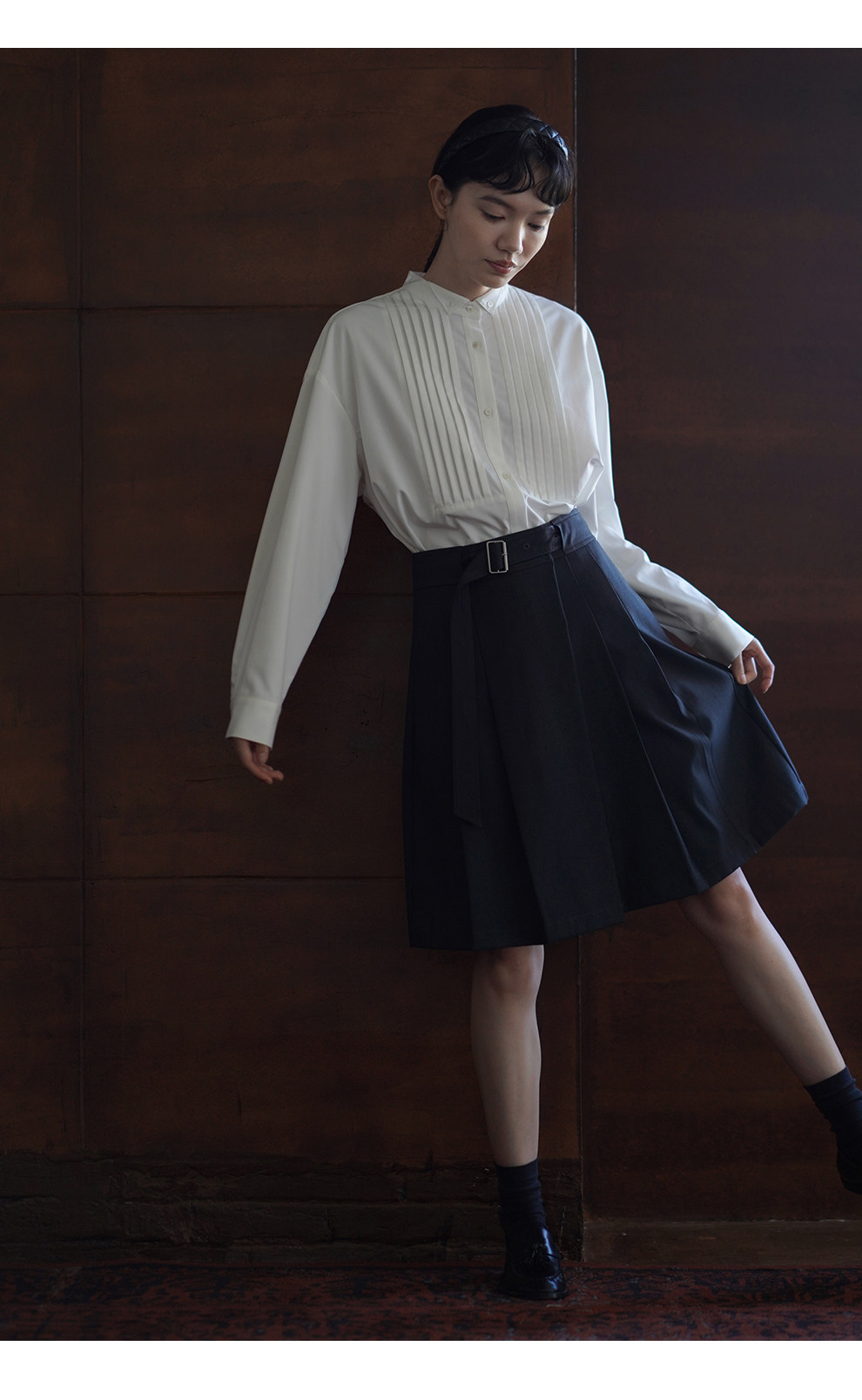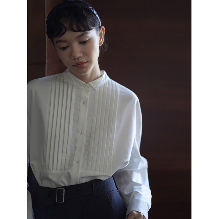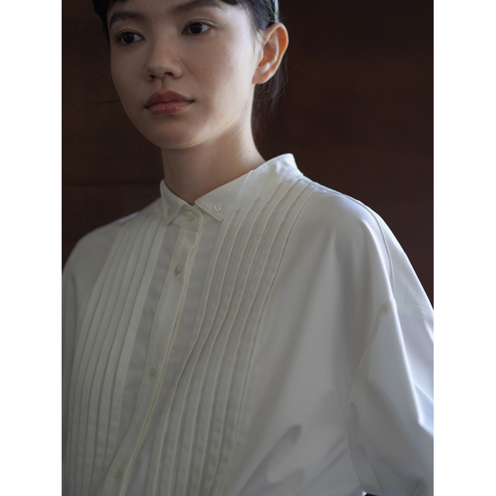 哈齒小姐 復古廻潮小繙領精緻塔克線門襟經典H版型顯瘦通勤襯衫女