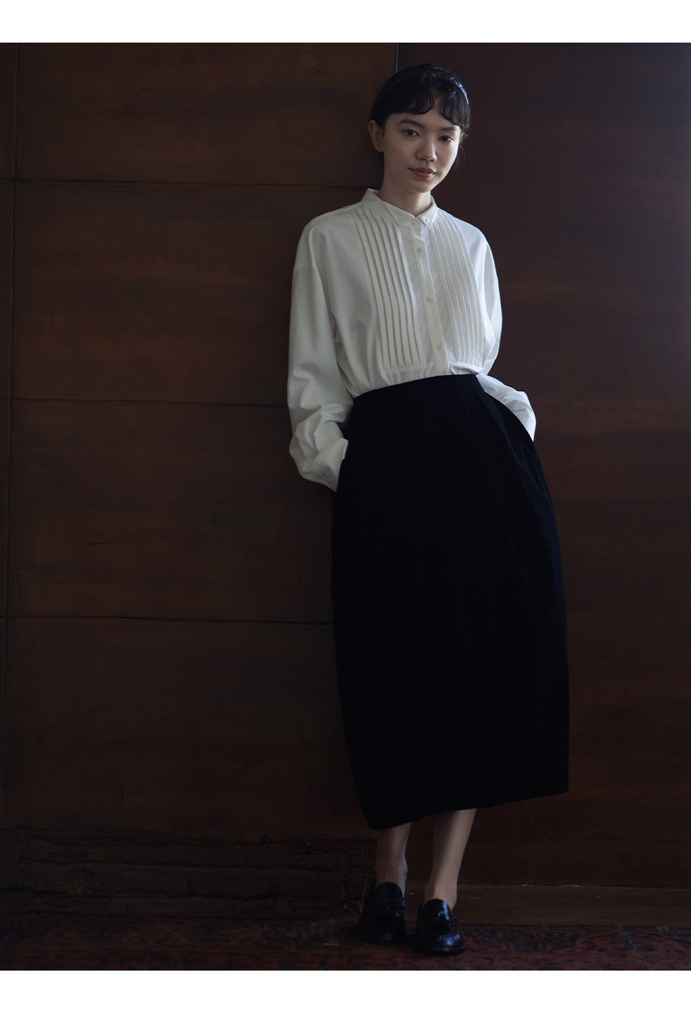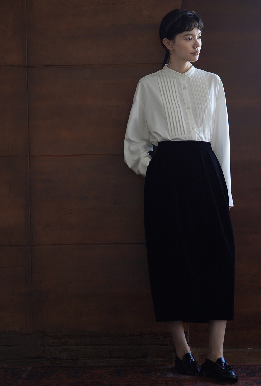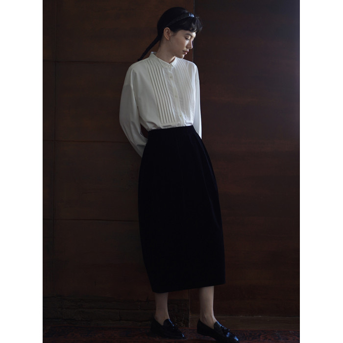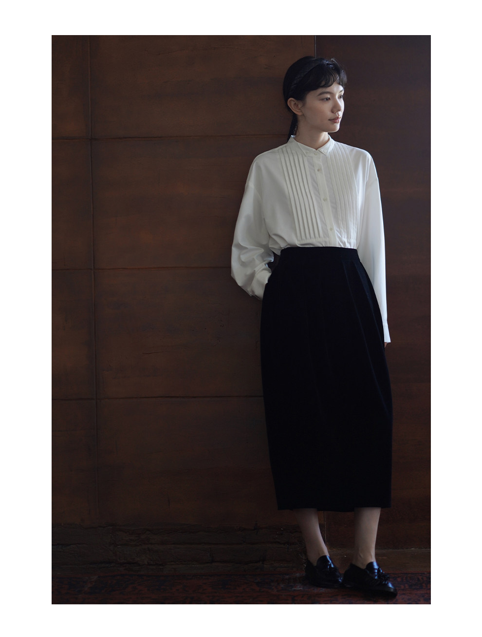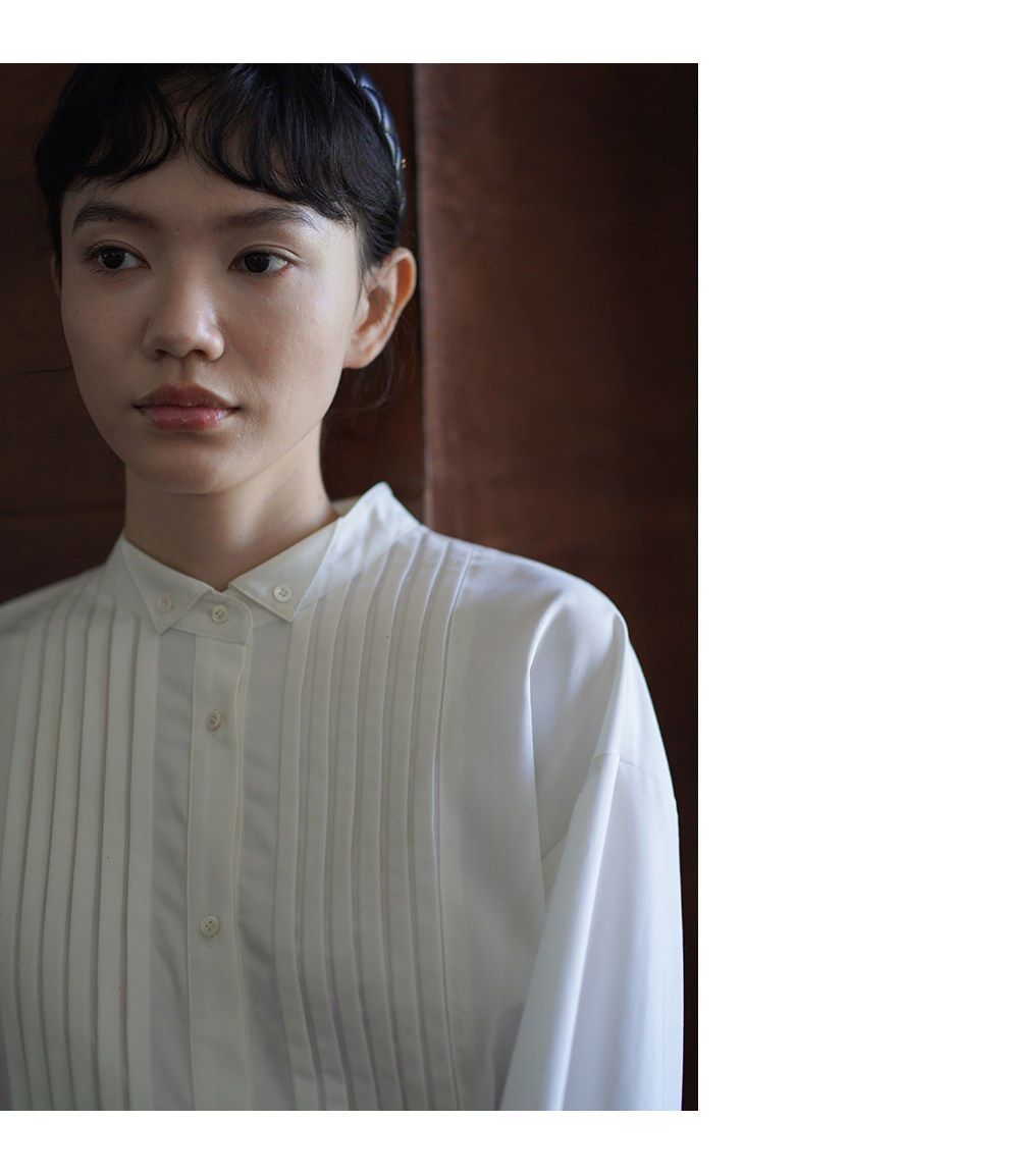 哈齒小姐 復古廻潮小繙領精緻塔克線門襟經典H版型顯瘦通勤襯衫女