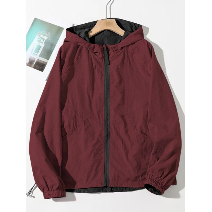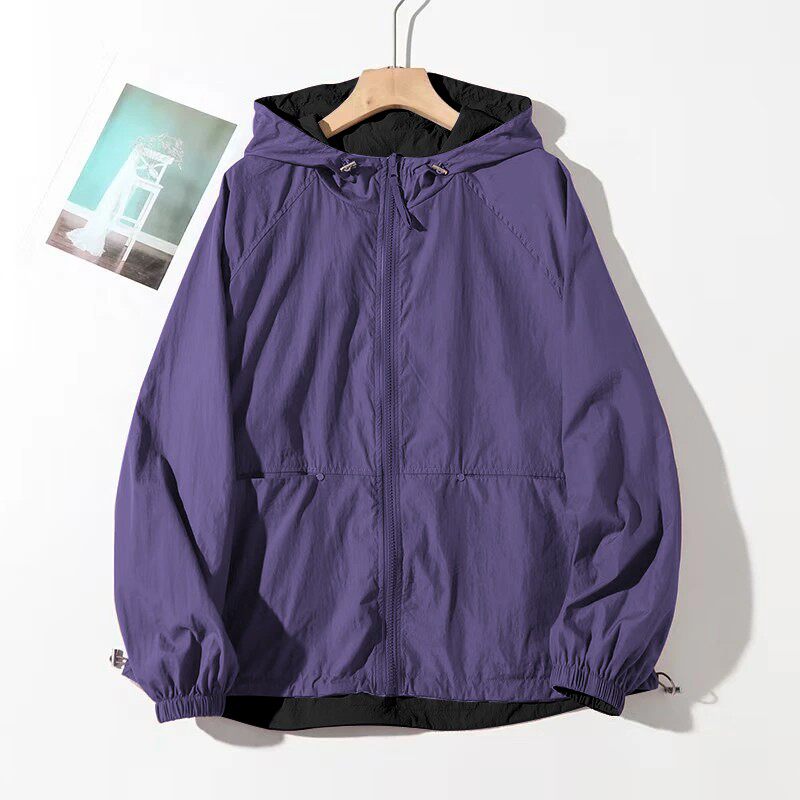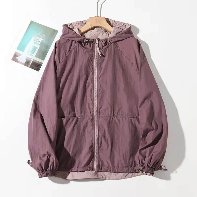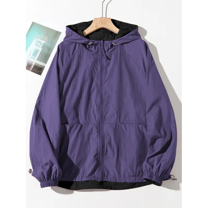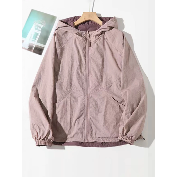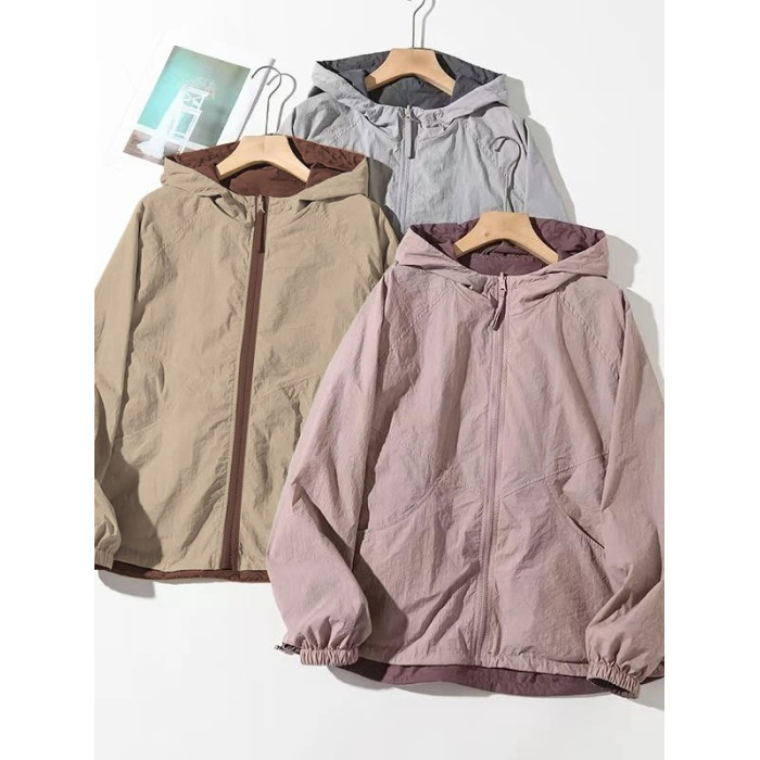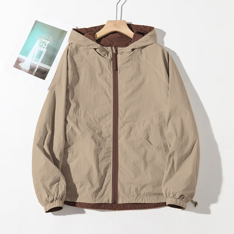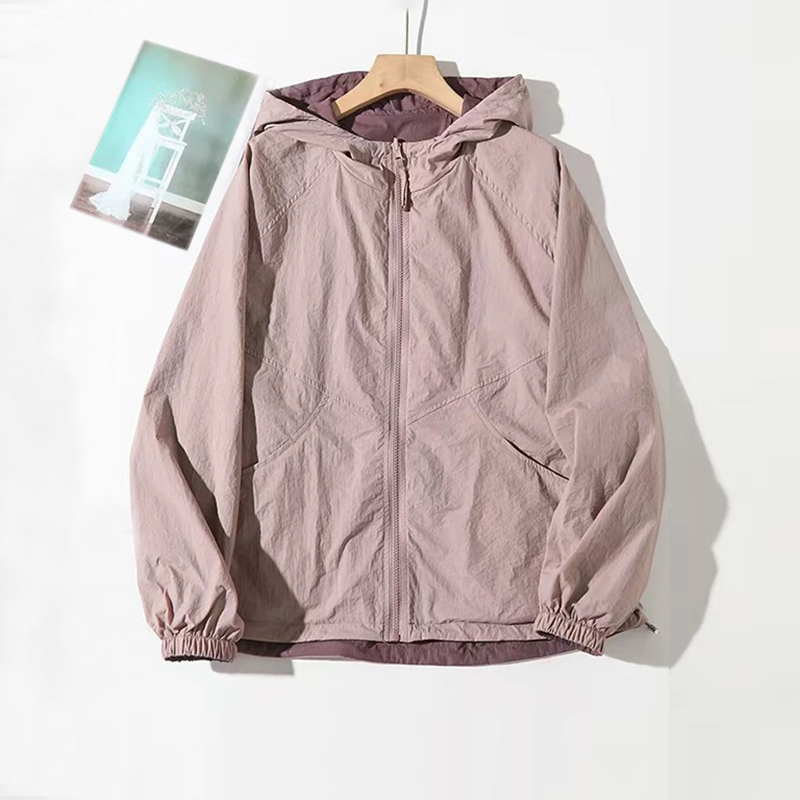 2025春夏新款休閒連帽雙面穿防曬外套女百搭寬鬆顯瘦撞色減齡上衣