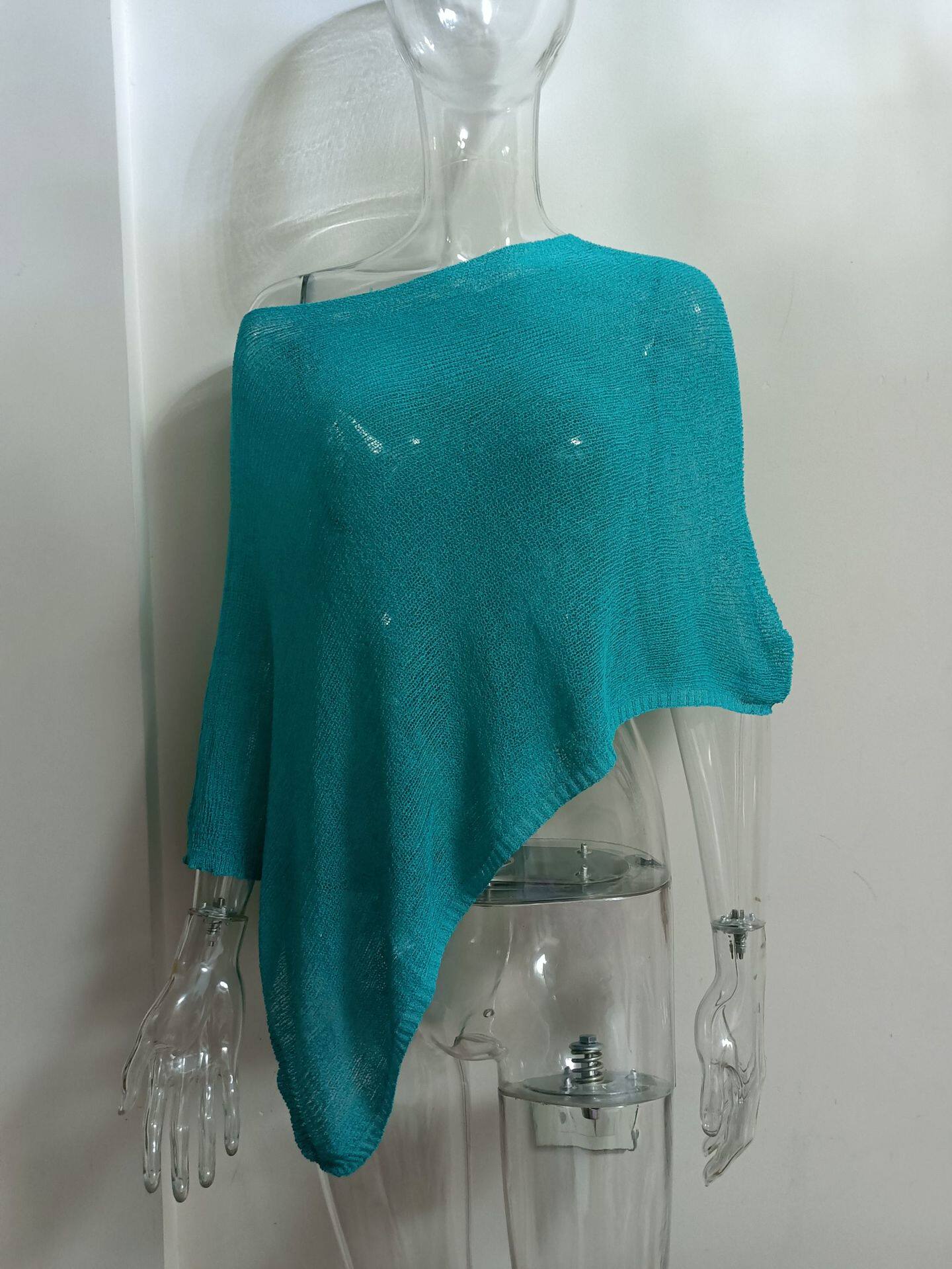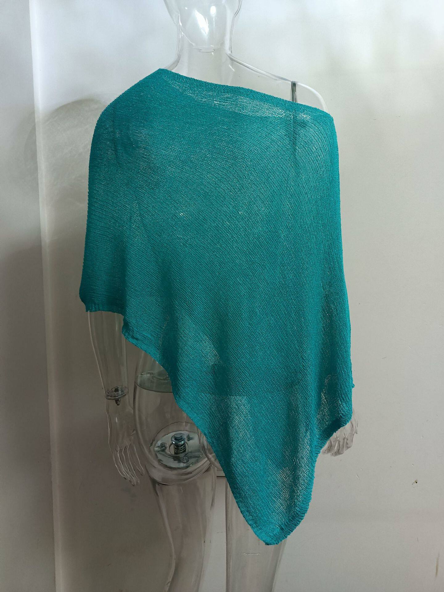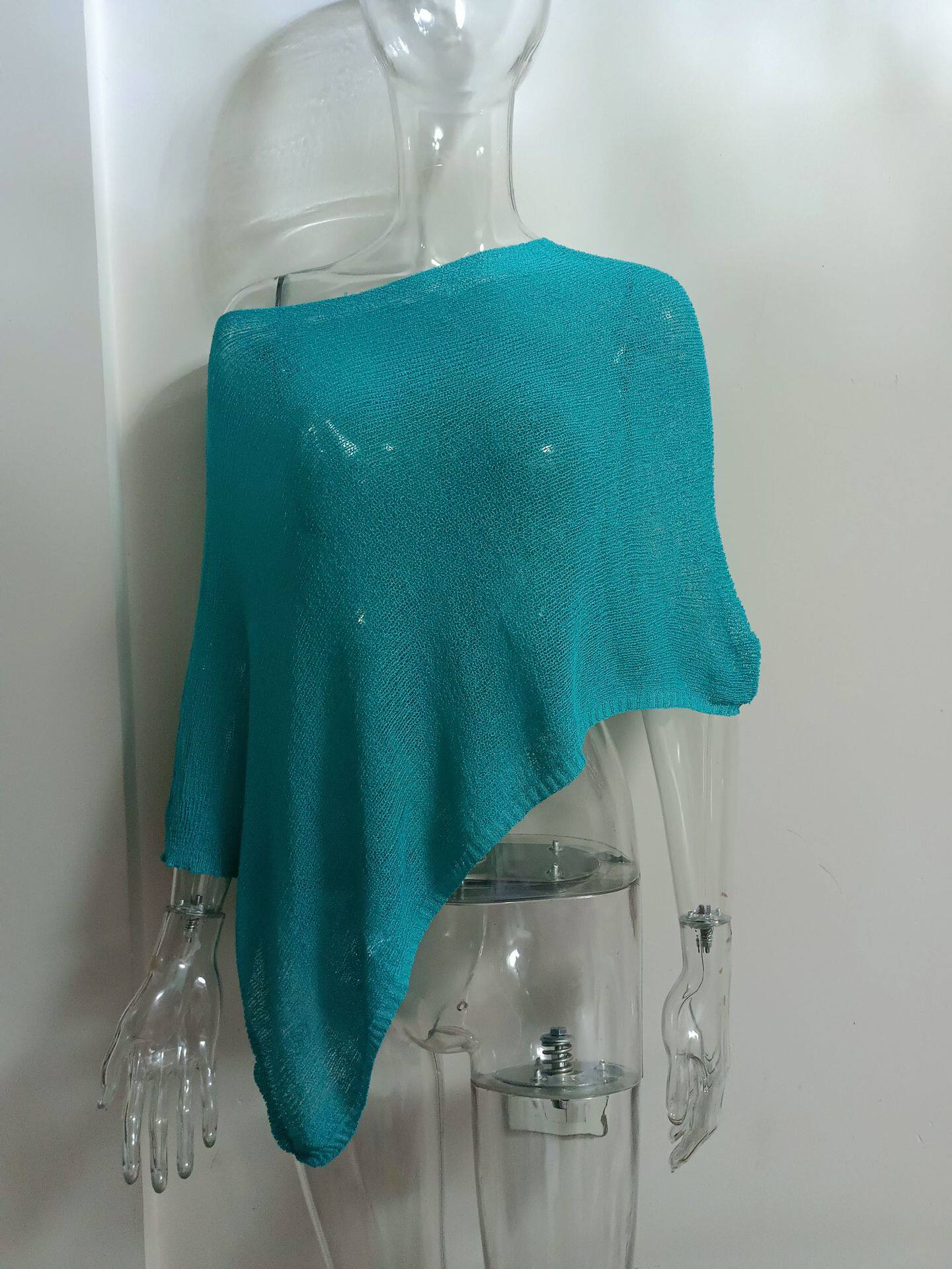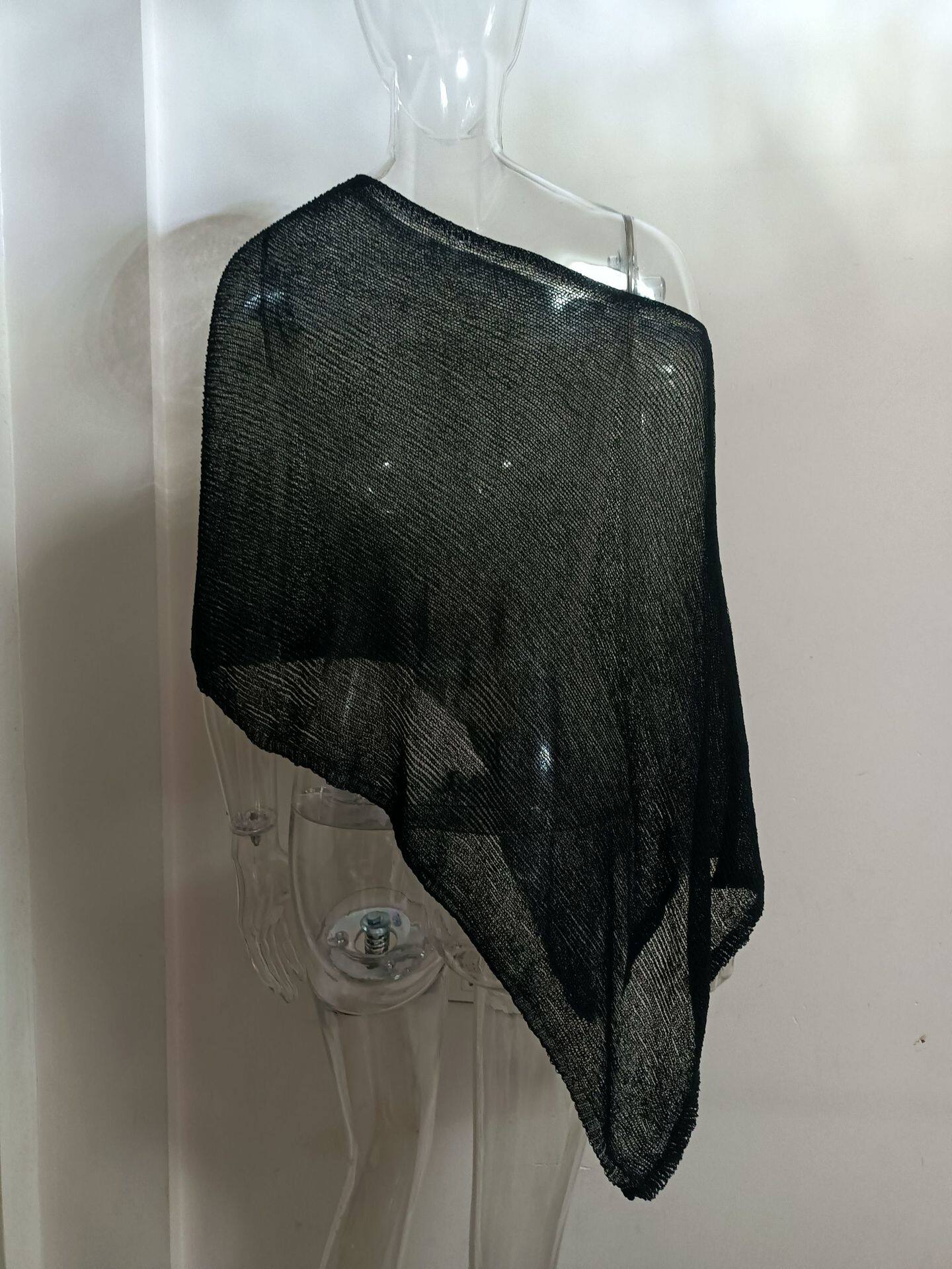 歐美女式設計感不規則鬥篷網紗披肩防曬衫寬鬆慵懶薄款冰絲針織衫