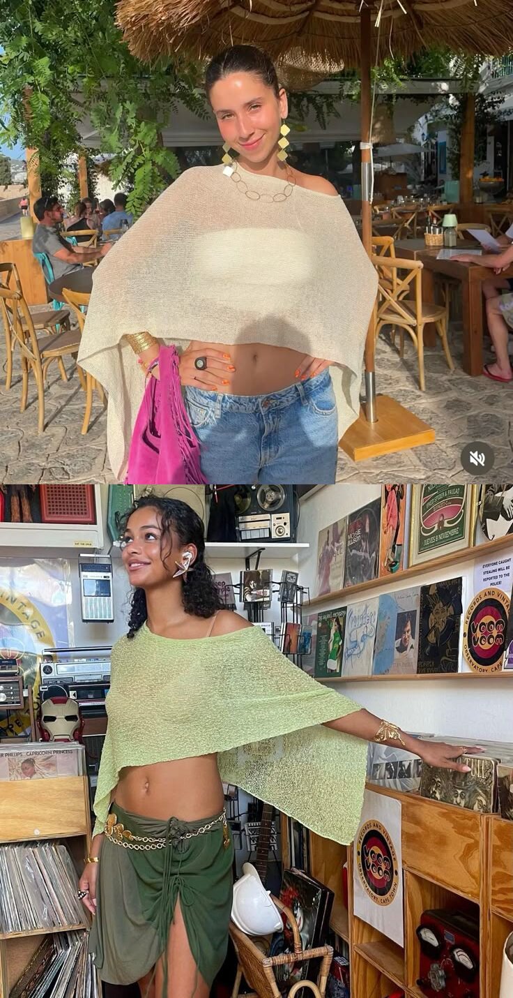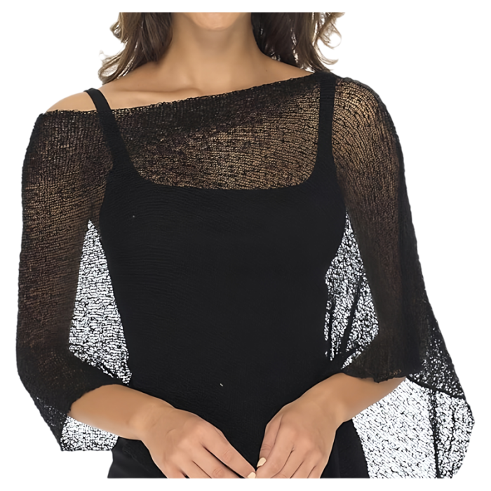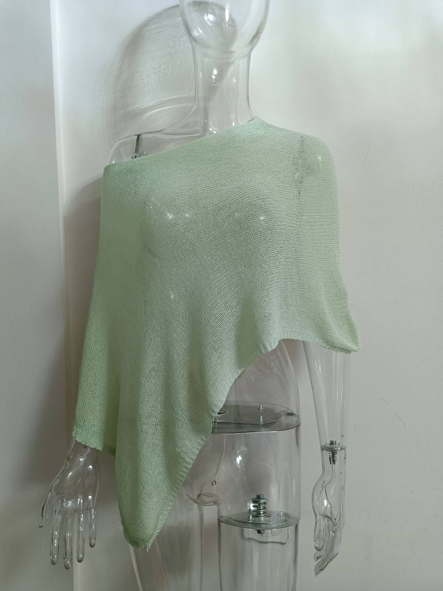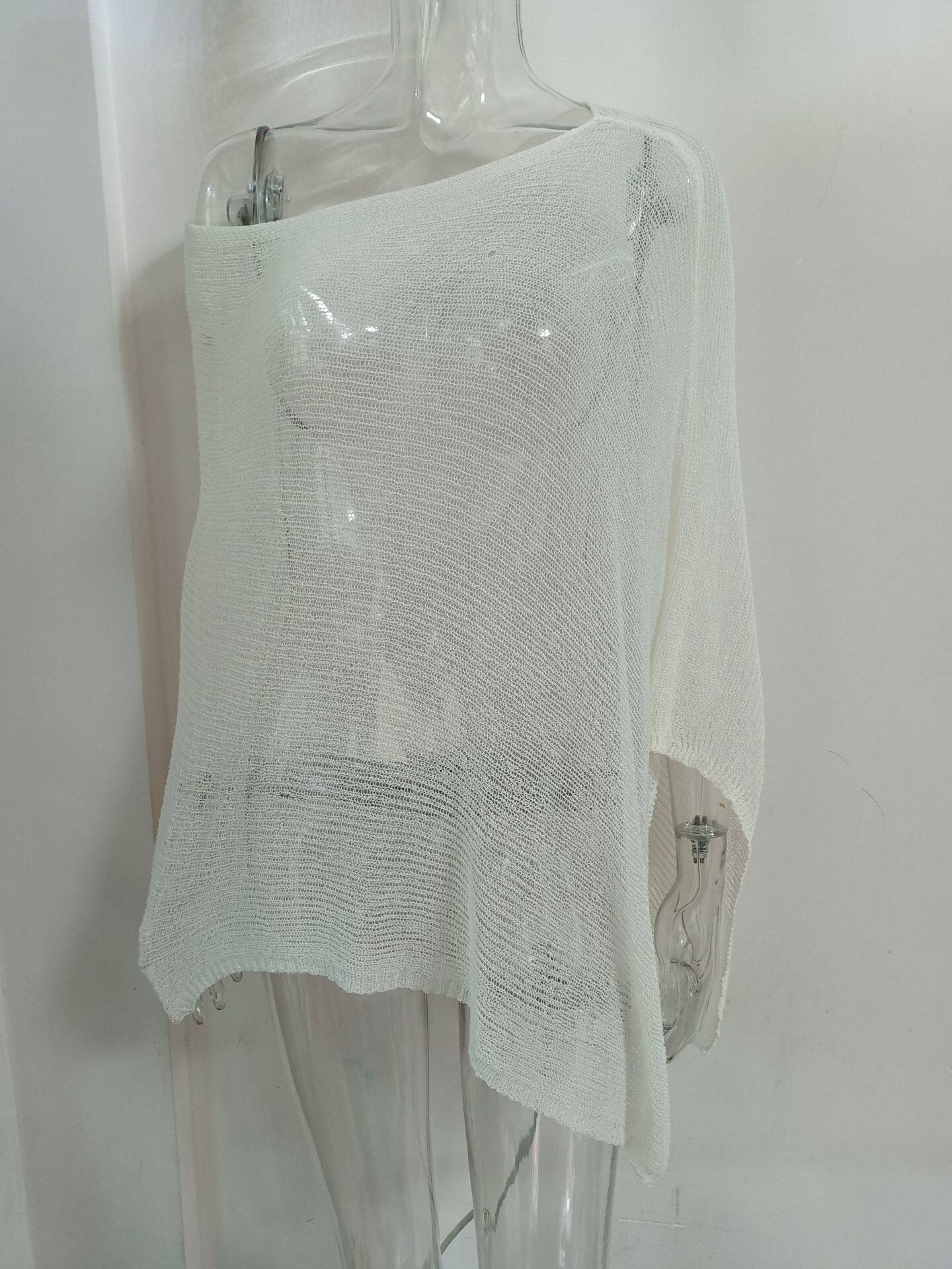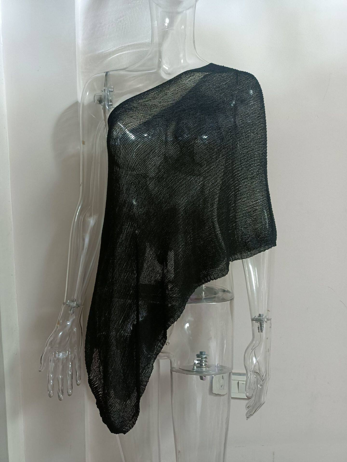 歐美女式設計感不規則鬥篷網紗披肩防曬衫寬鬆慵懶薄款冰絲針織衫