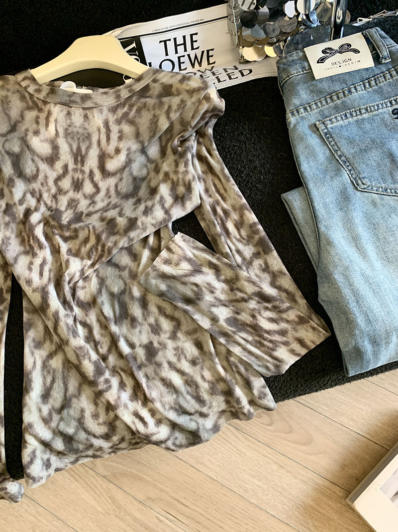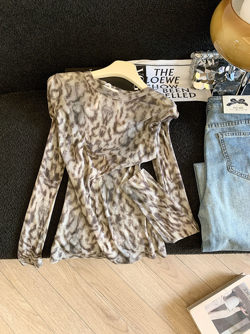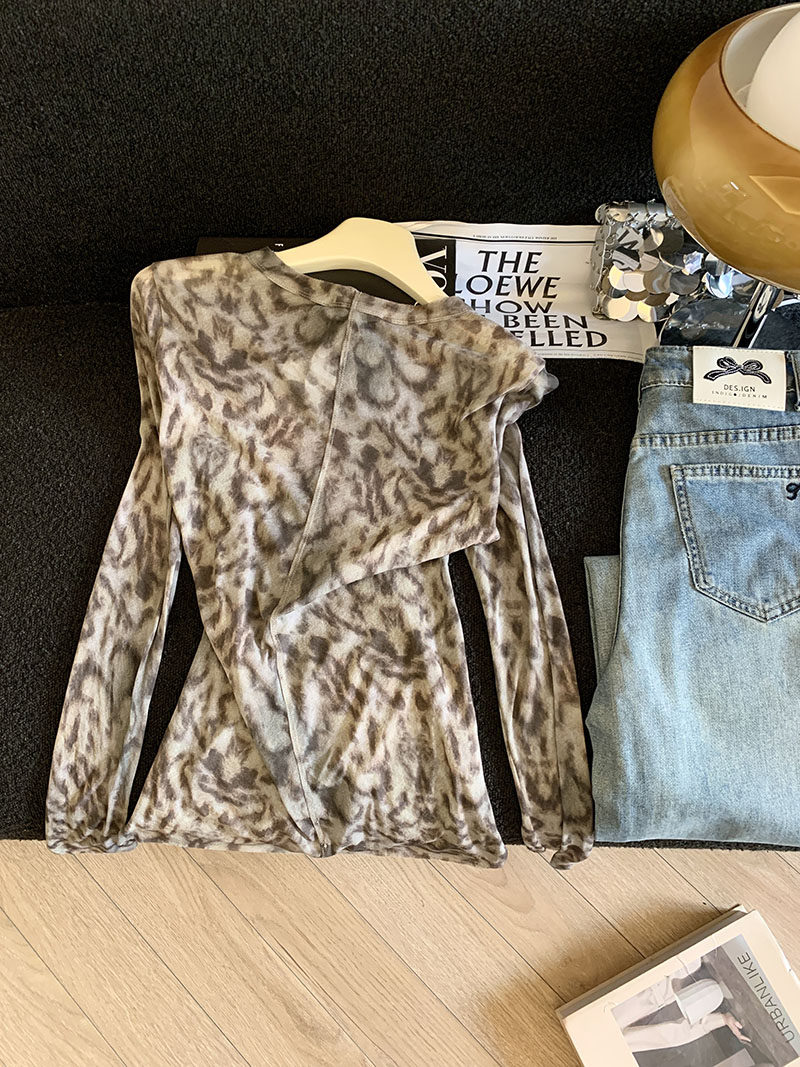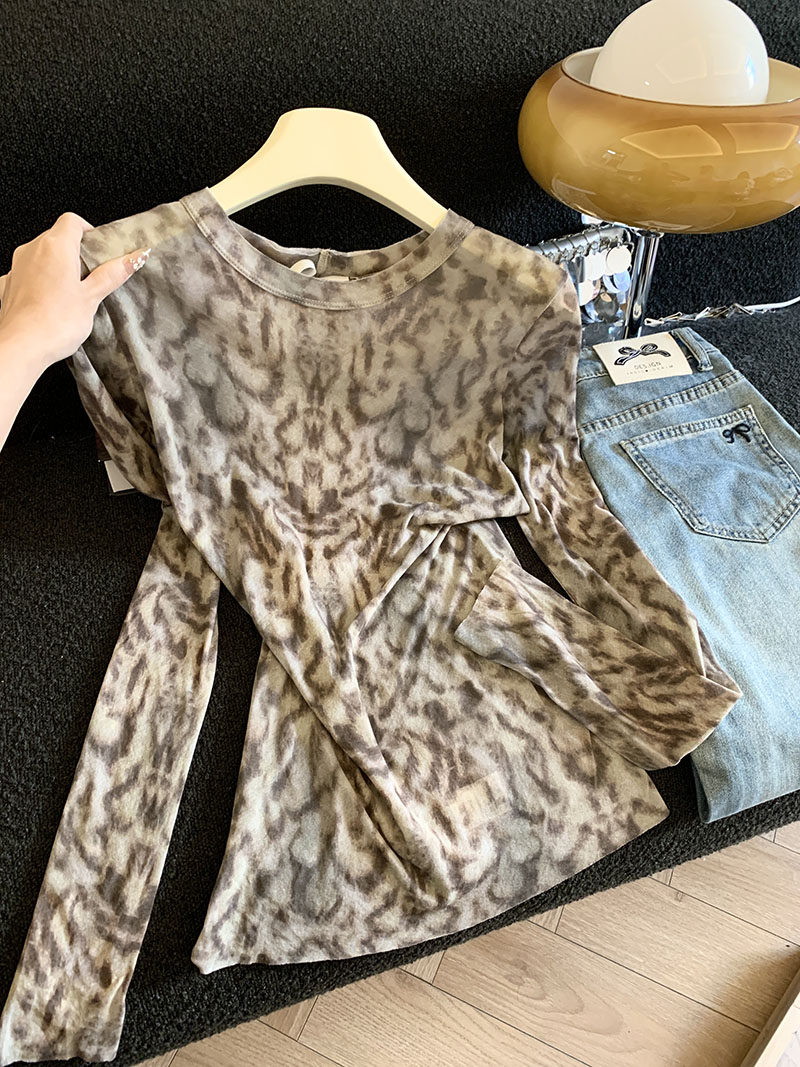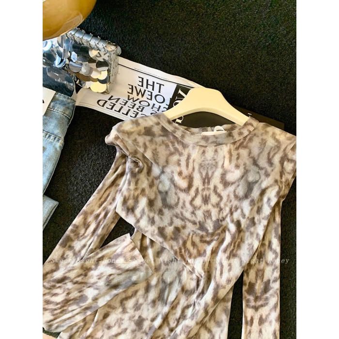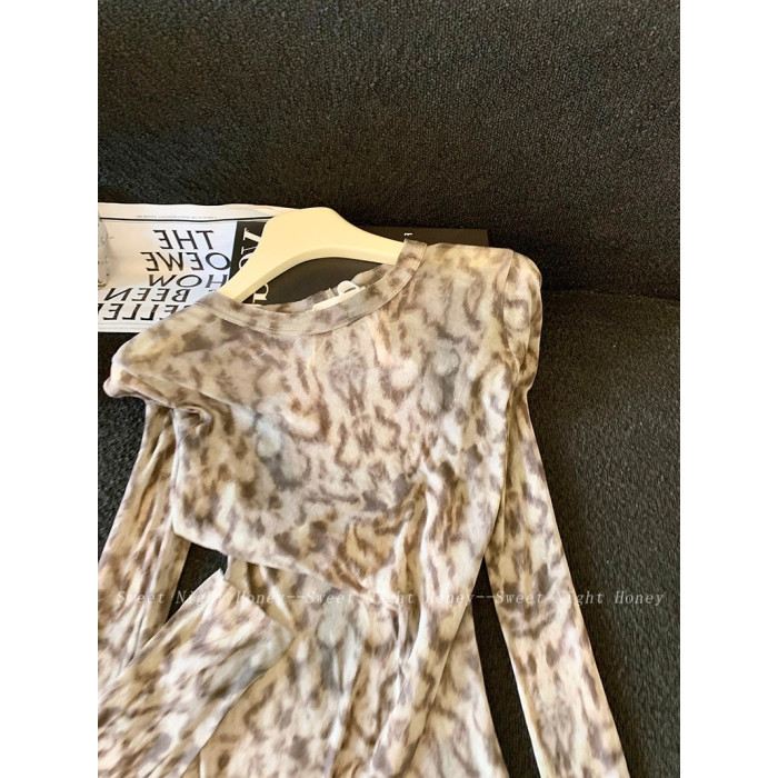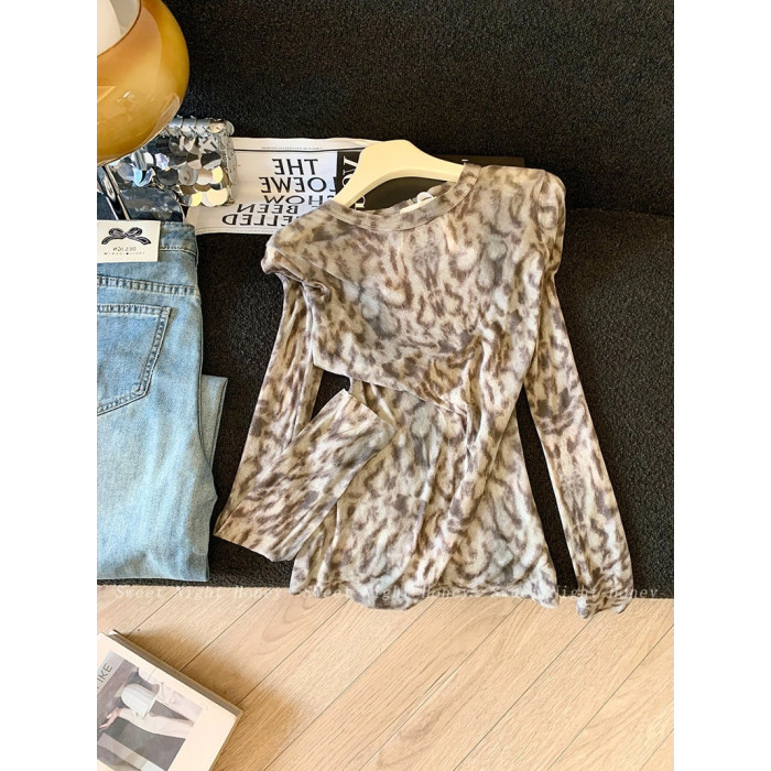 2026春季美拉德風豹紋防曬服女長袖薄款顯瘦打底上衣輕薄防曬T恤