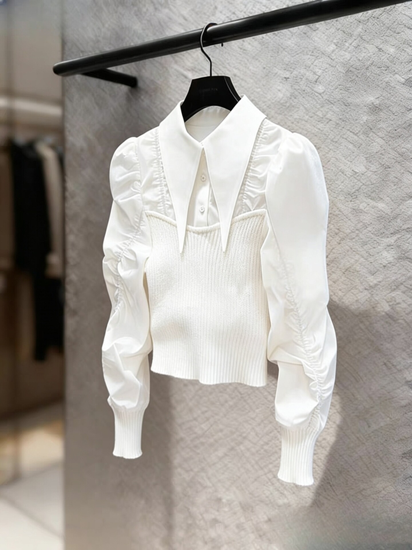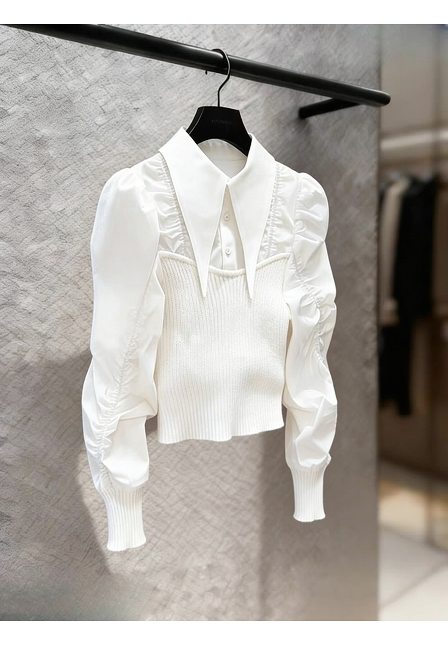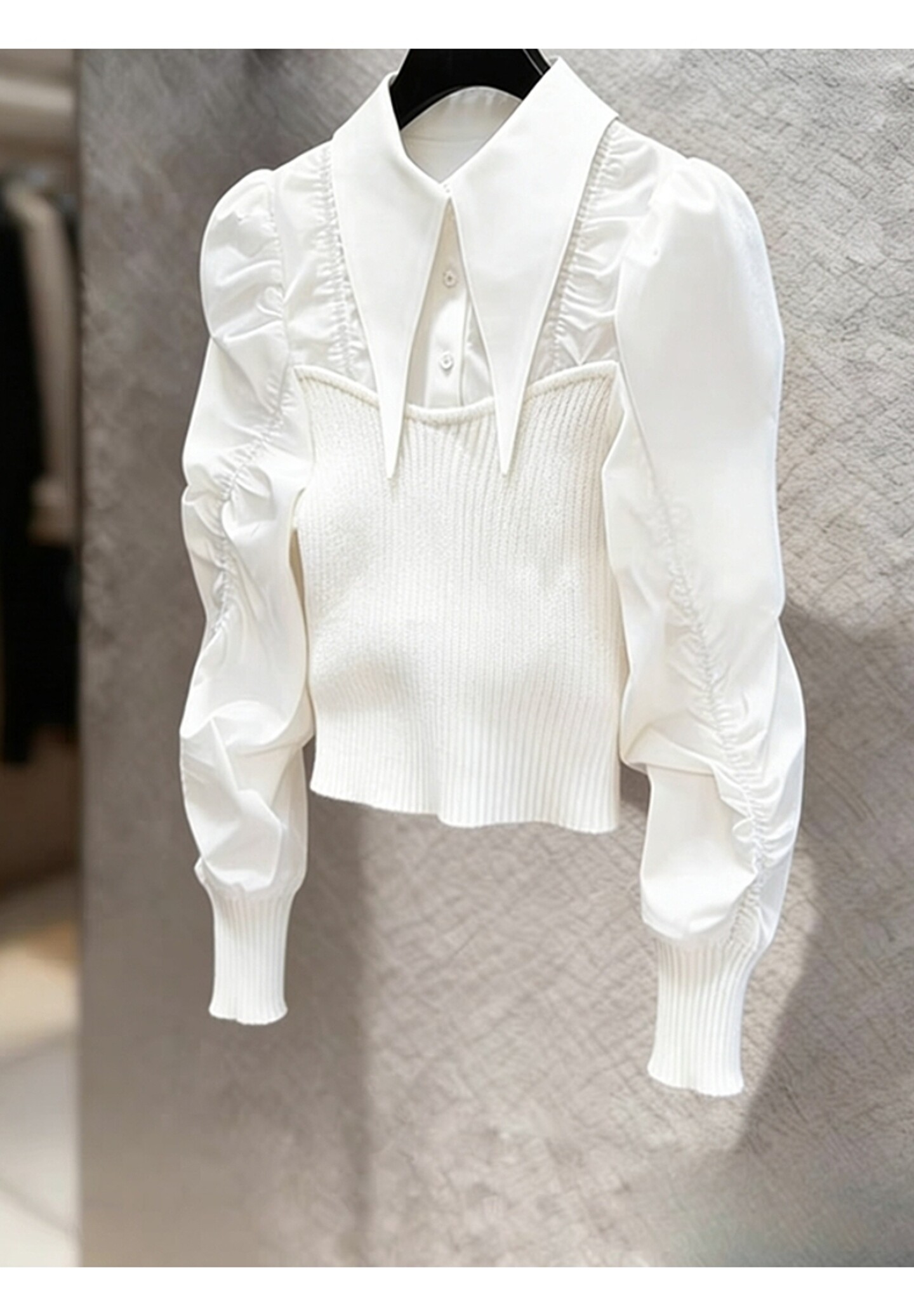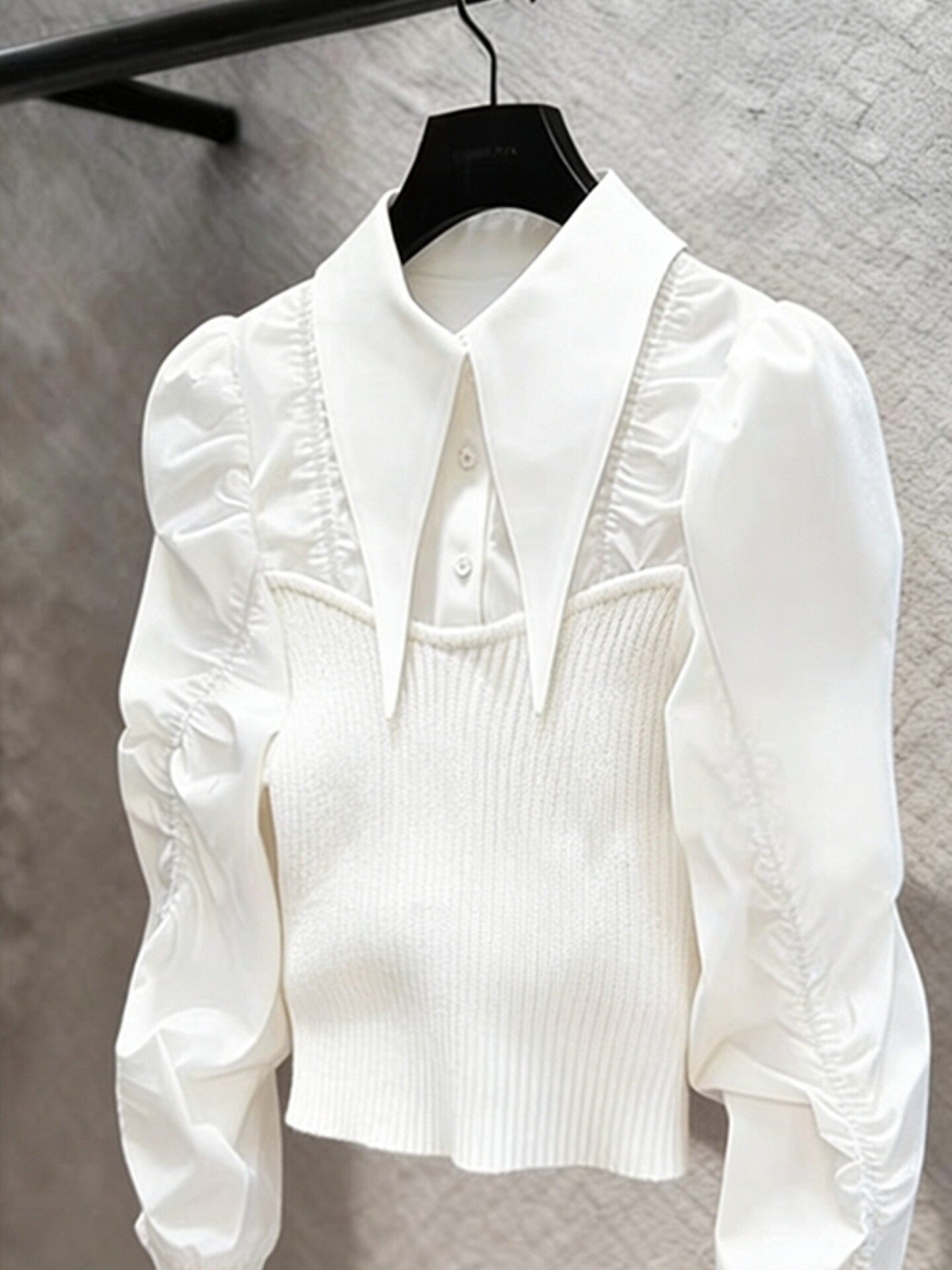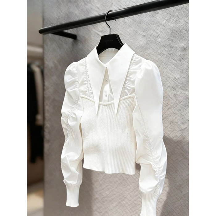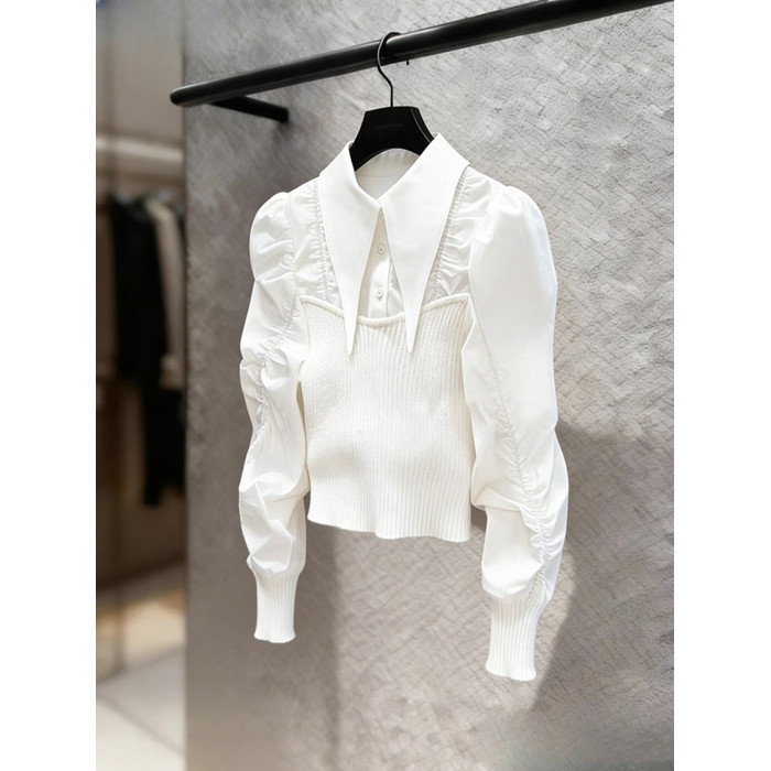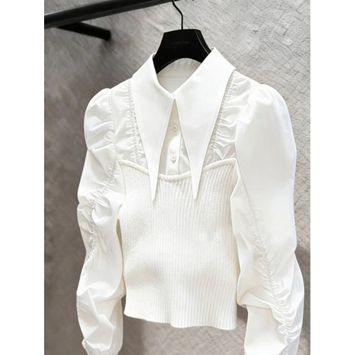 法式輕熟獨特超好看上衣輕奢高級感重要場合白色針織拼接襯衫女春